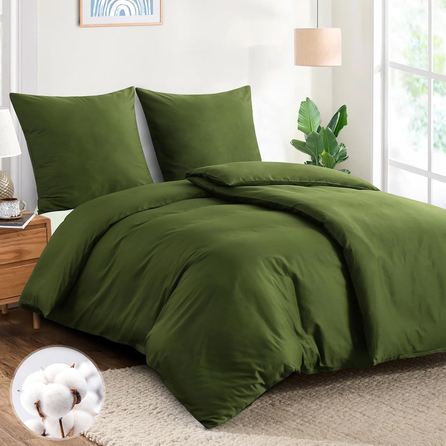Спално бельо Aisbo 155 x 220 см памук маслинено зелено - Комплекти спално бельо Плик за завивка 155 x 220 см с калъфка за възглавница 80 x 80 см, Комплект спално бельо от памук, Oeko-Tex спално бельо зелено с цип