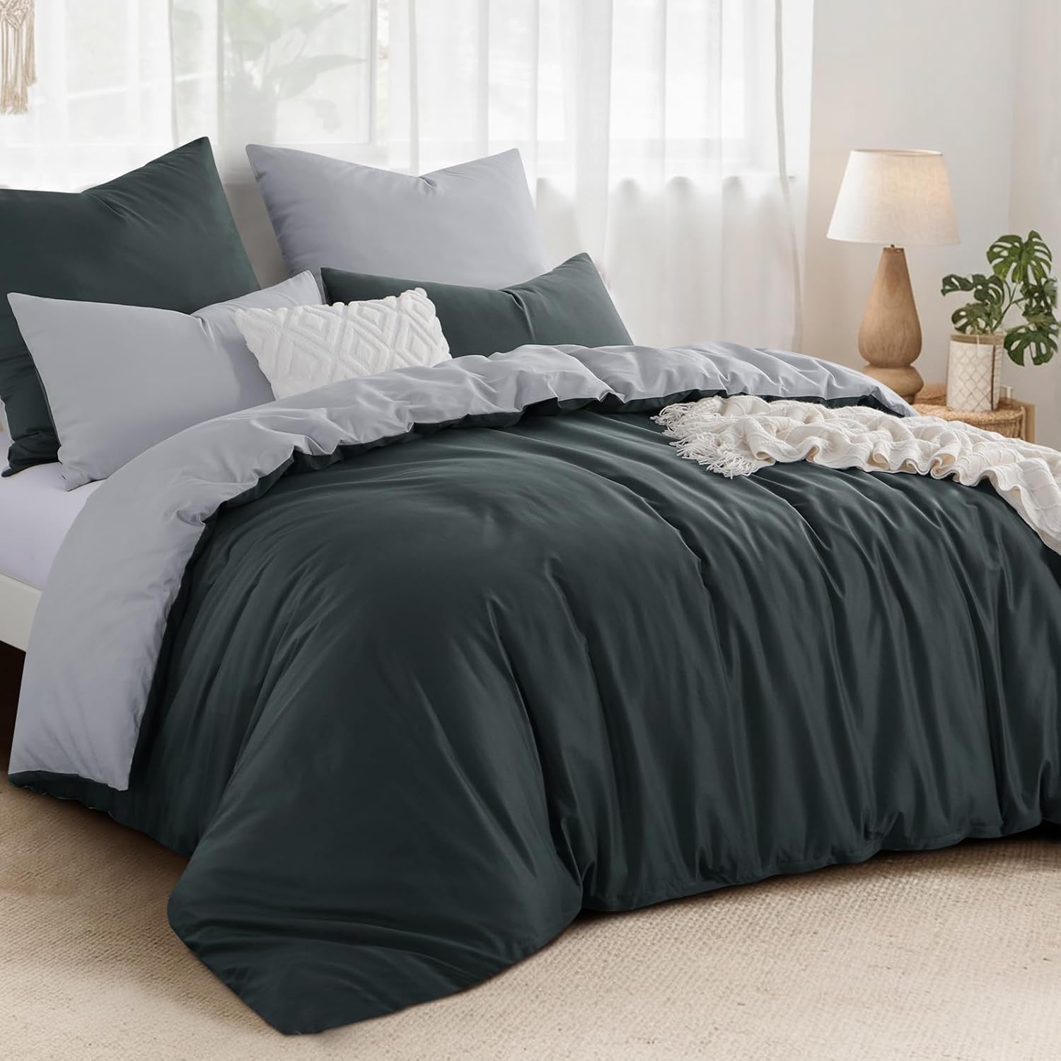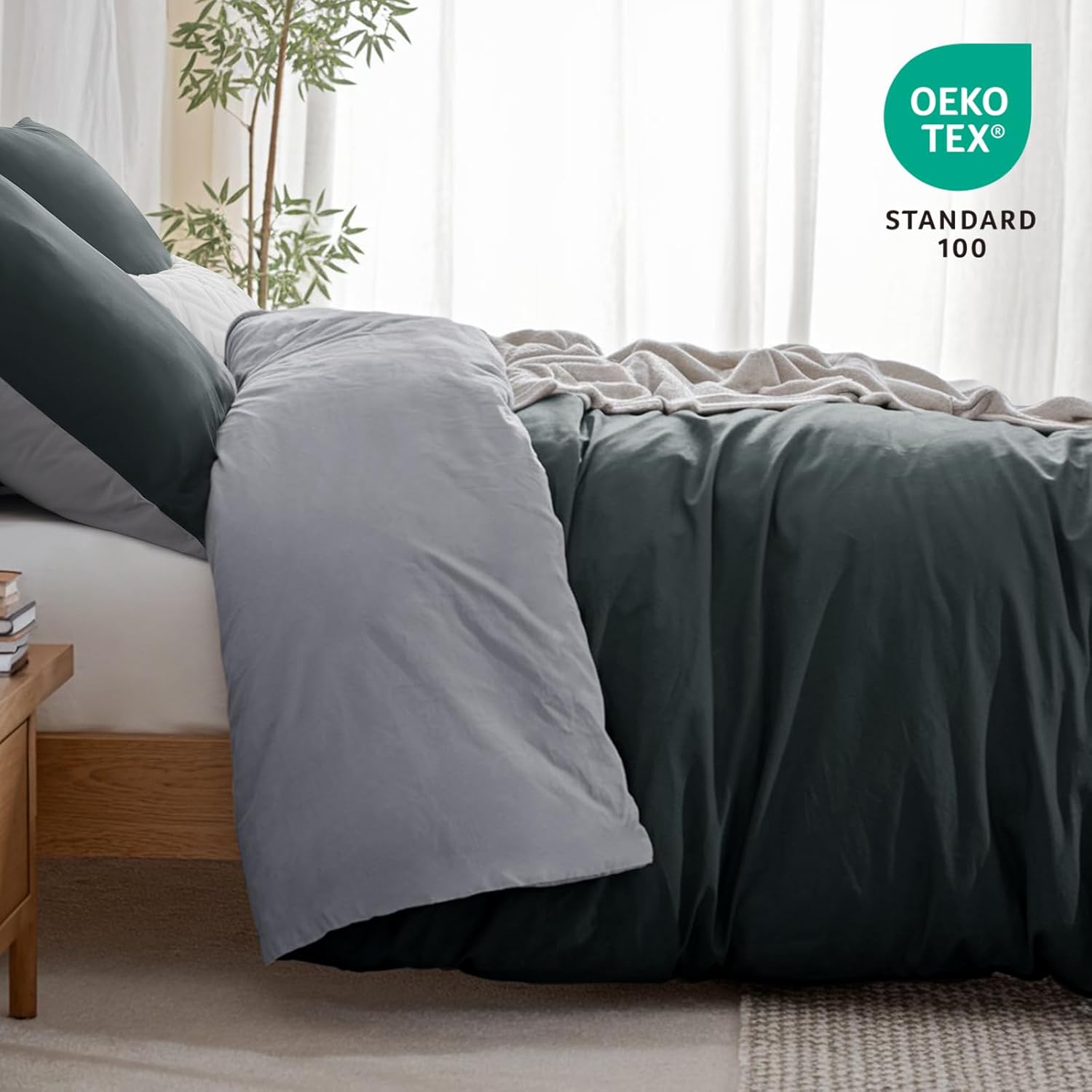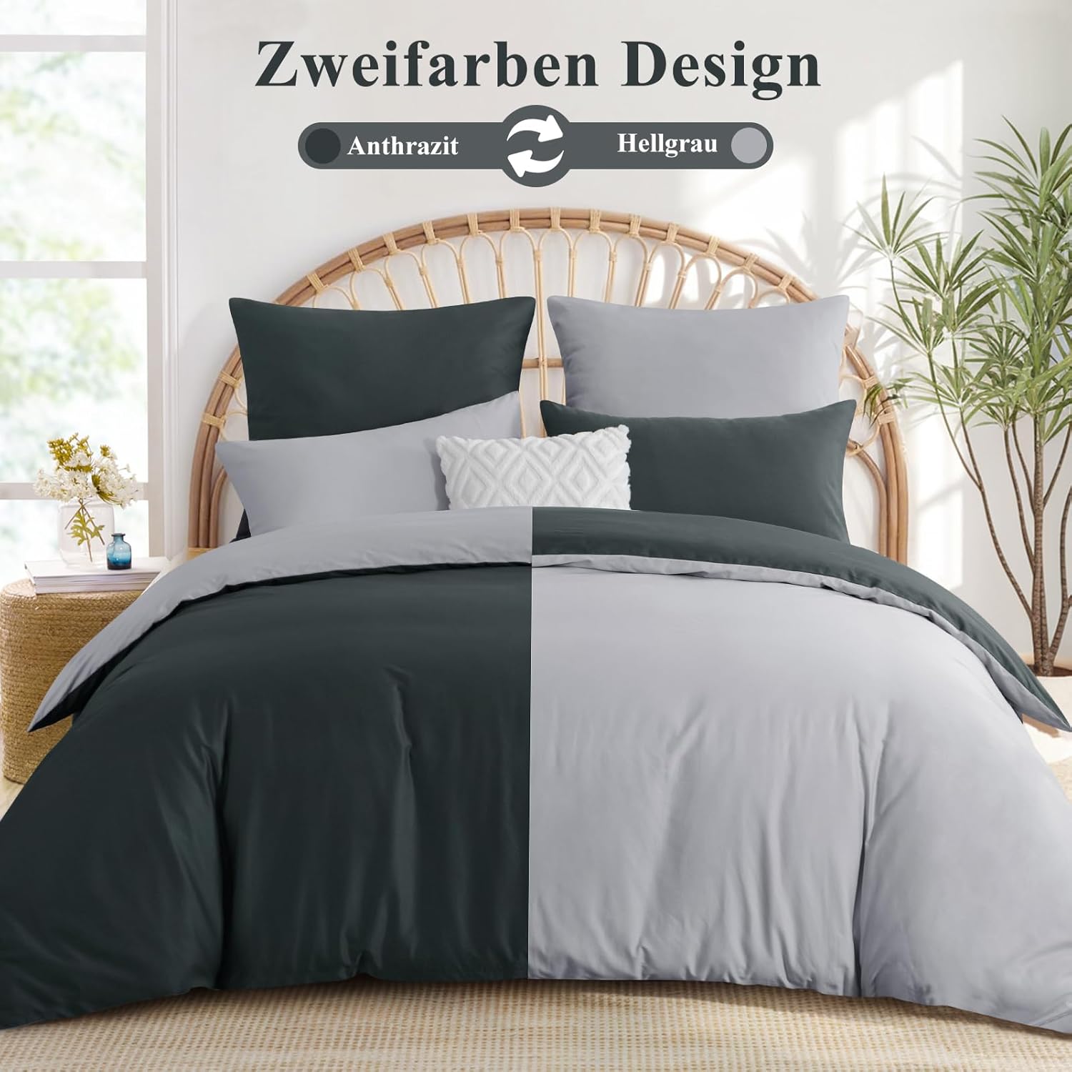 Спално бельо Aisbo 200 x 200 см Памук Антрацитно сиво - Комплекти спално бельо 200 x 200 см Двулицев спално бельо от 3 части с 2 калъфки за възглавници 80 x 80 см, Oeko-Tex Двуцветно памучно спално бельо с цип