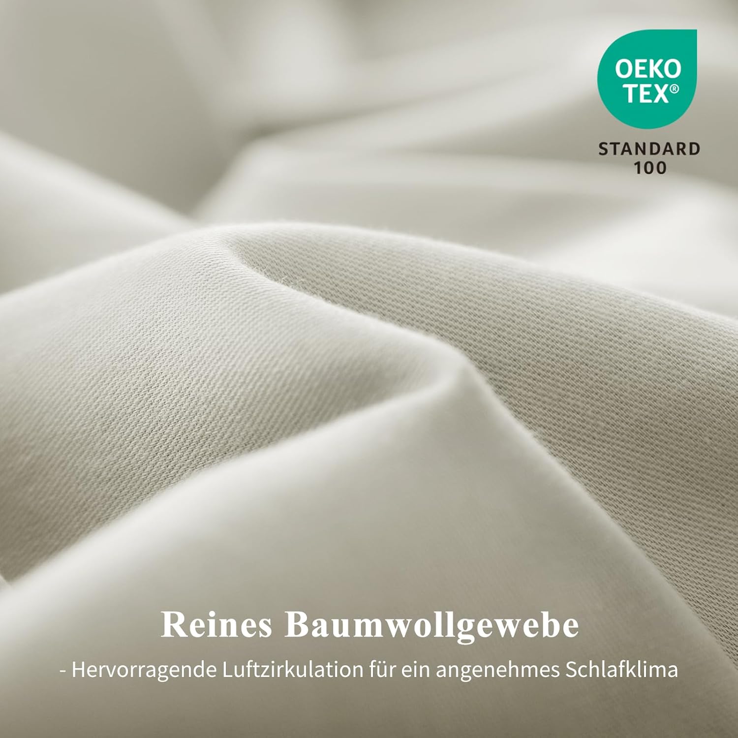 • Насладете се на спокоен нощен сън в нашето памучно спално бельо с размери 135 x 200 см (съдържание на кутията: 2 калъфа за завивки 135 x 200 см и 2 калъфки за възглавници 80 x 80 см). Естествената памучна материя прави комплекта спално бельо особено дишащ и абсорбиращ и по този начин предлага приятна среда за сън през цялата година.