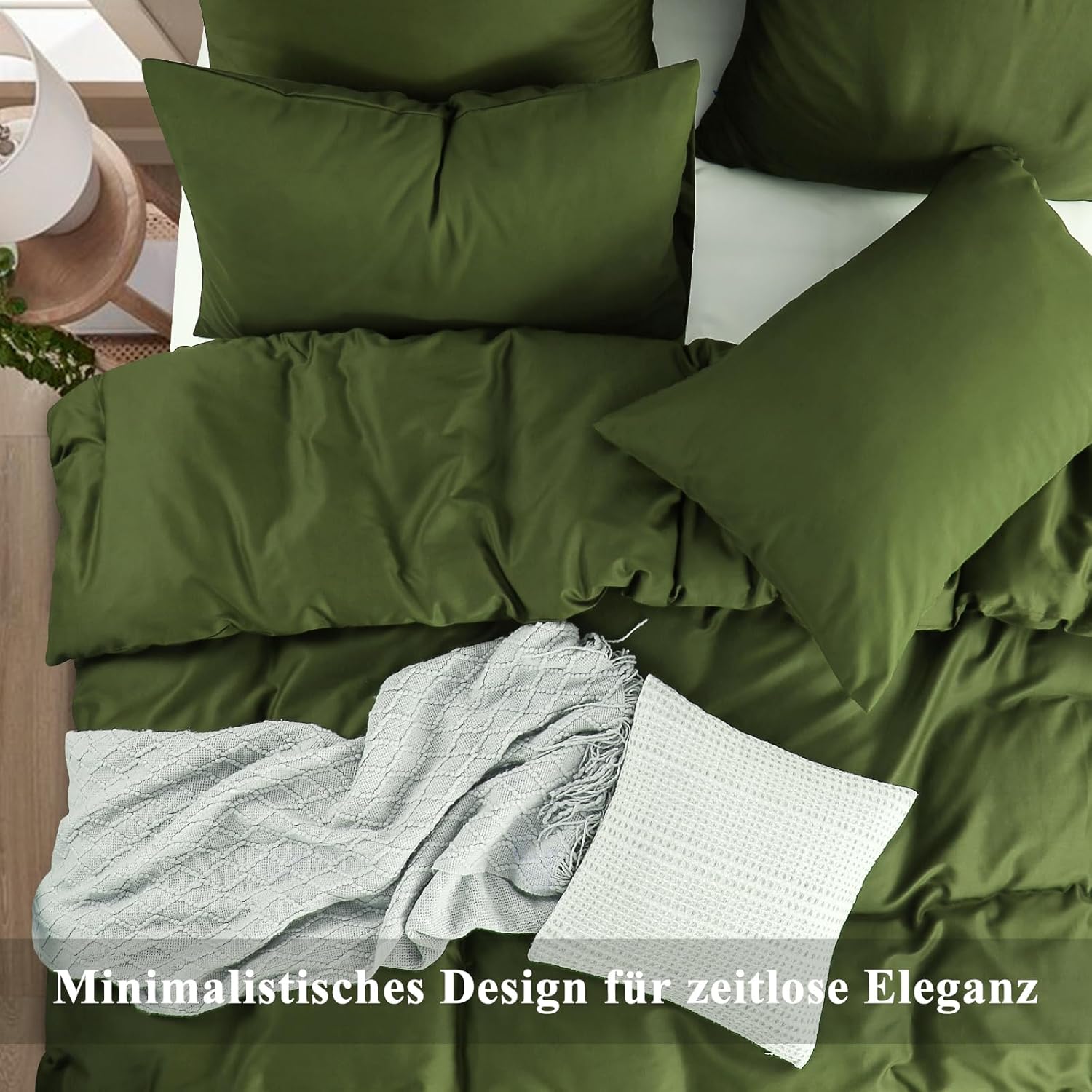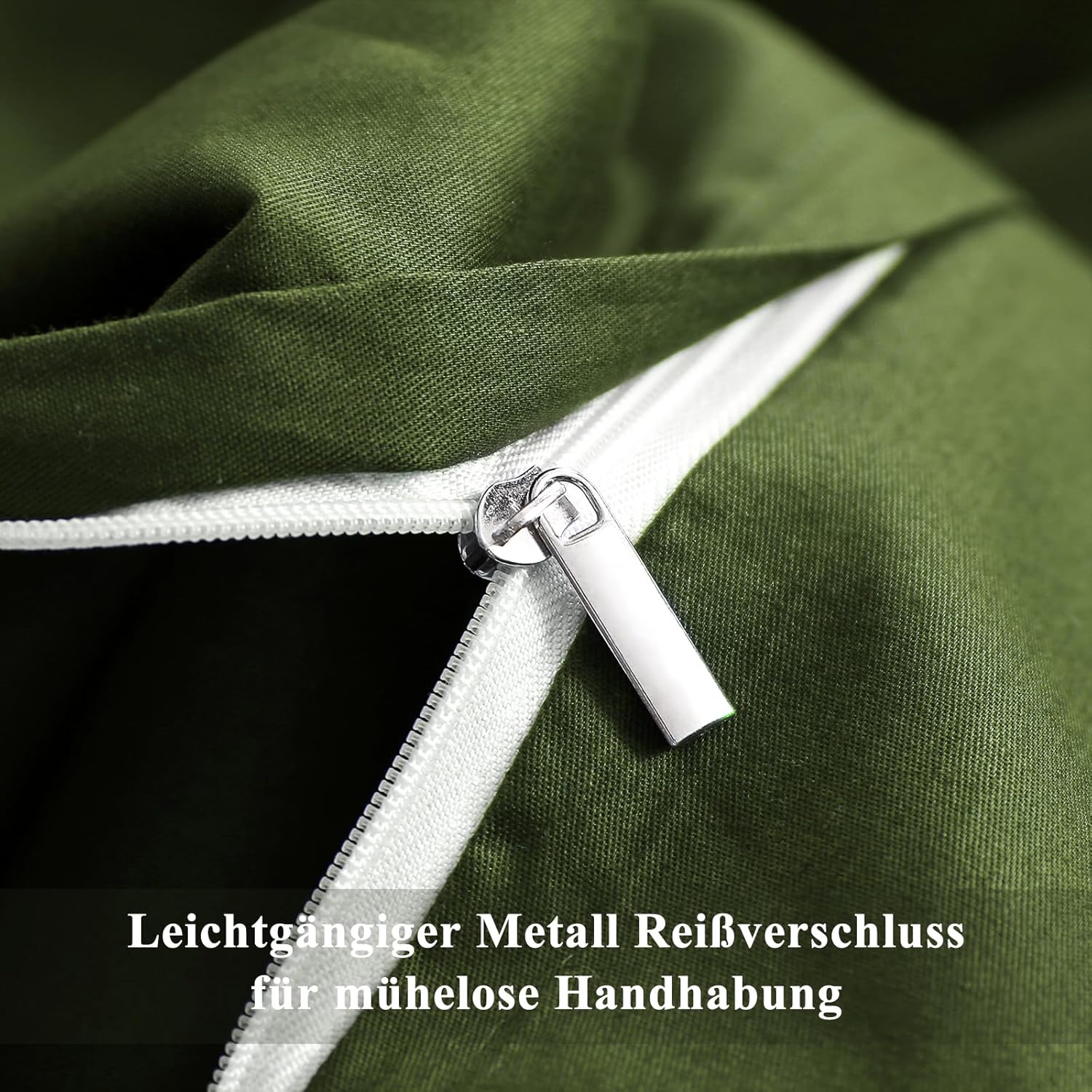 Спално бельо Aisbo 200 x 220 см, памучно, маслинено зелено - Комплекти спално бельо Плик за завивка 200 x 220 см, 3 части, с 2 калъфки за възглавници, 80 x 80 см, Комплект памучно спално бельо, Oeko-Tex спално бельо, зелено с цип