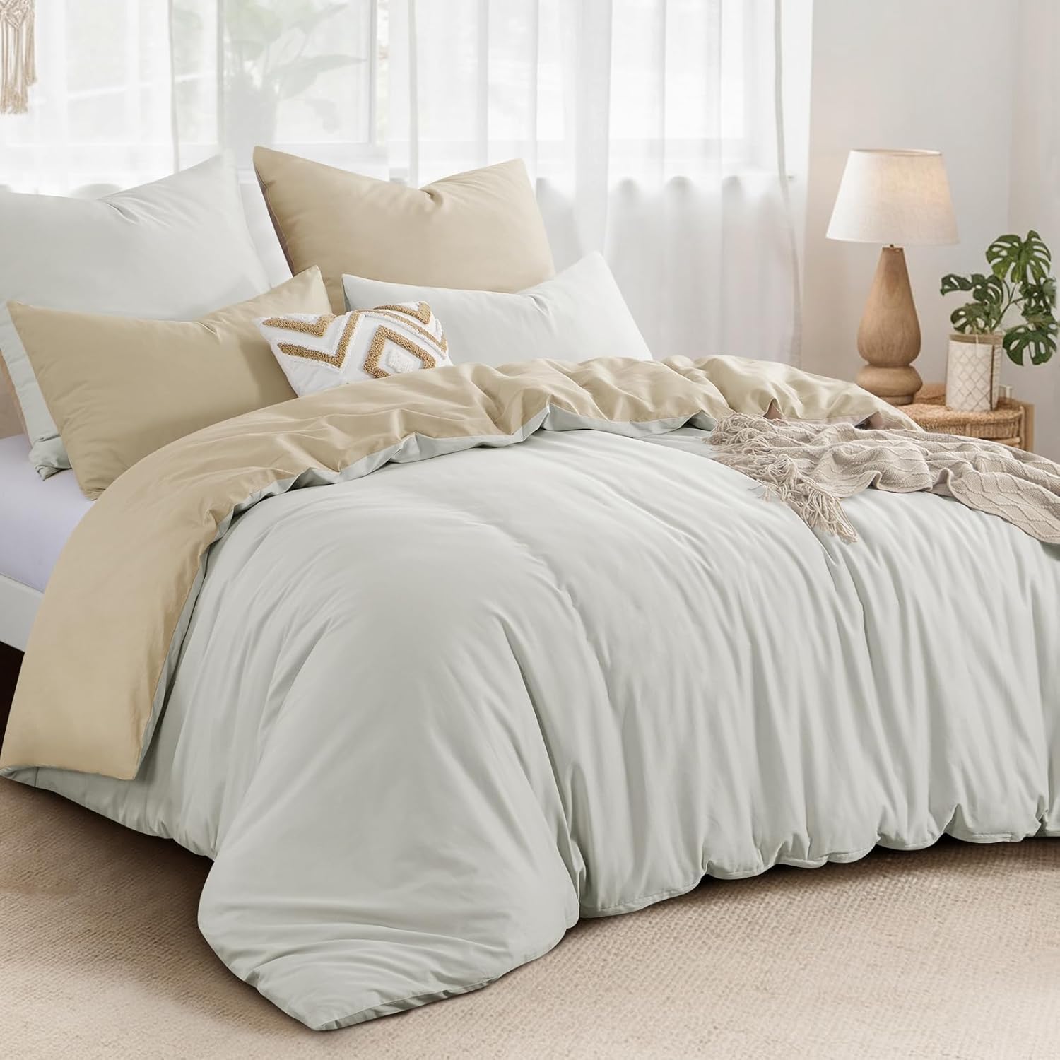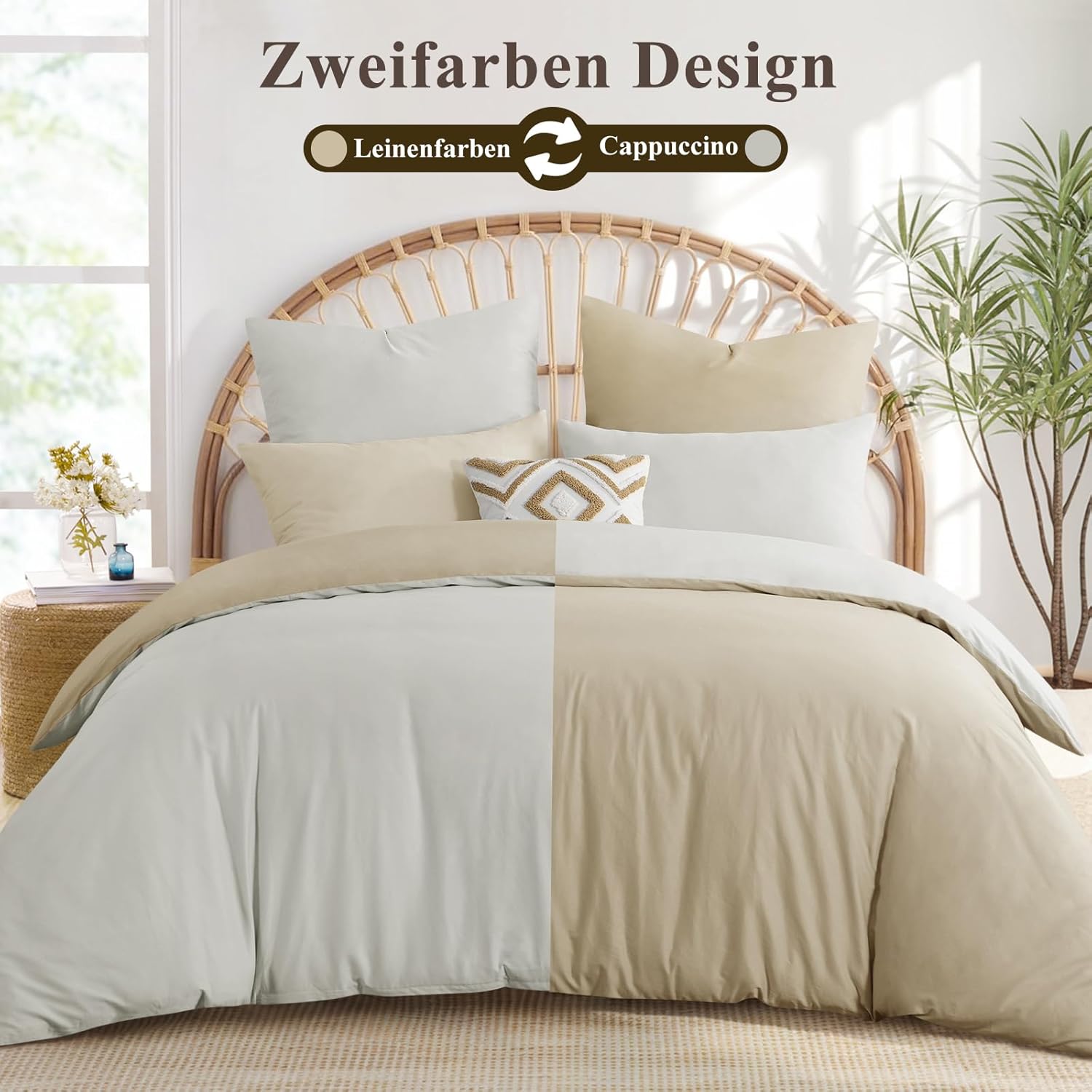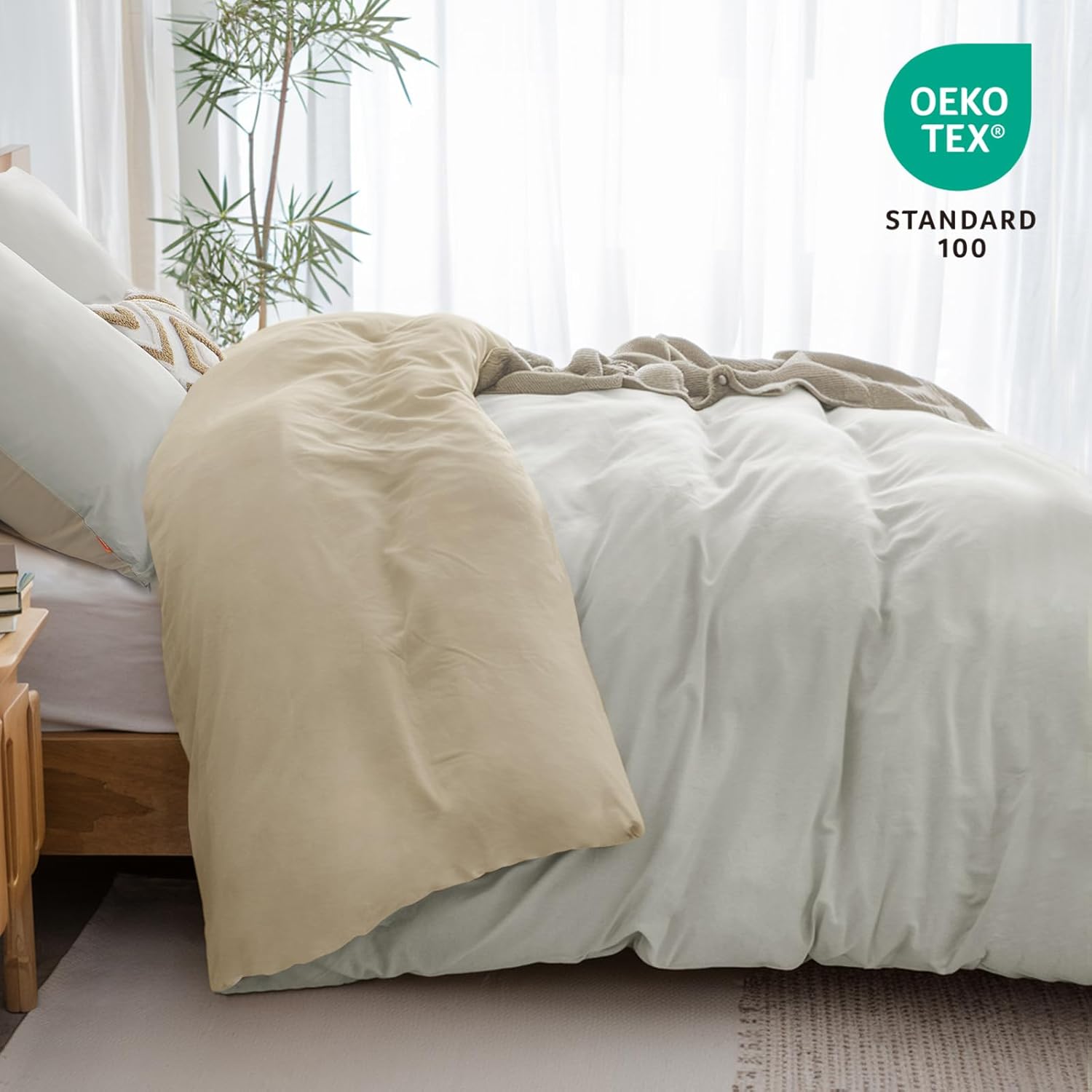 Спално бельо Aisbo 200 x 220 см Памук Каки Беж - Комплекти спално бельо 200 x 220 см Двулицев спално бельо от 3 части с 2 калъфки за възглавници 80 x 80 см, Памучно спално бельо Oeko-Tex Двуцветен калъф за завивка с цип