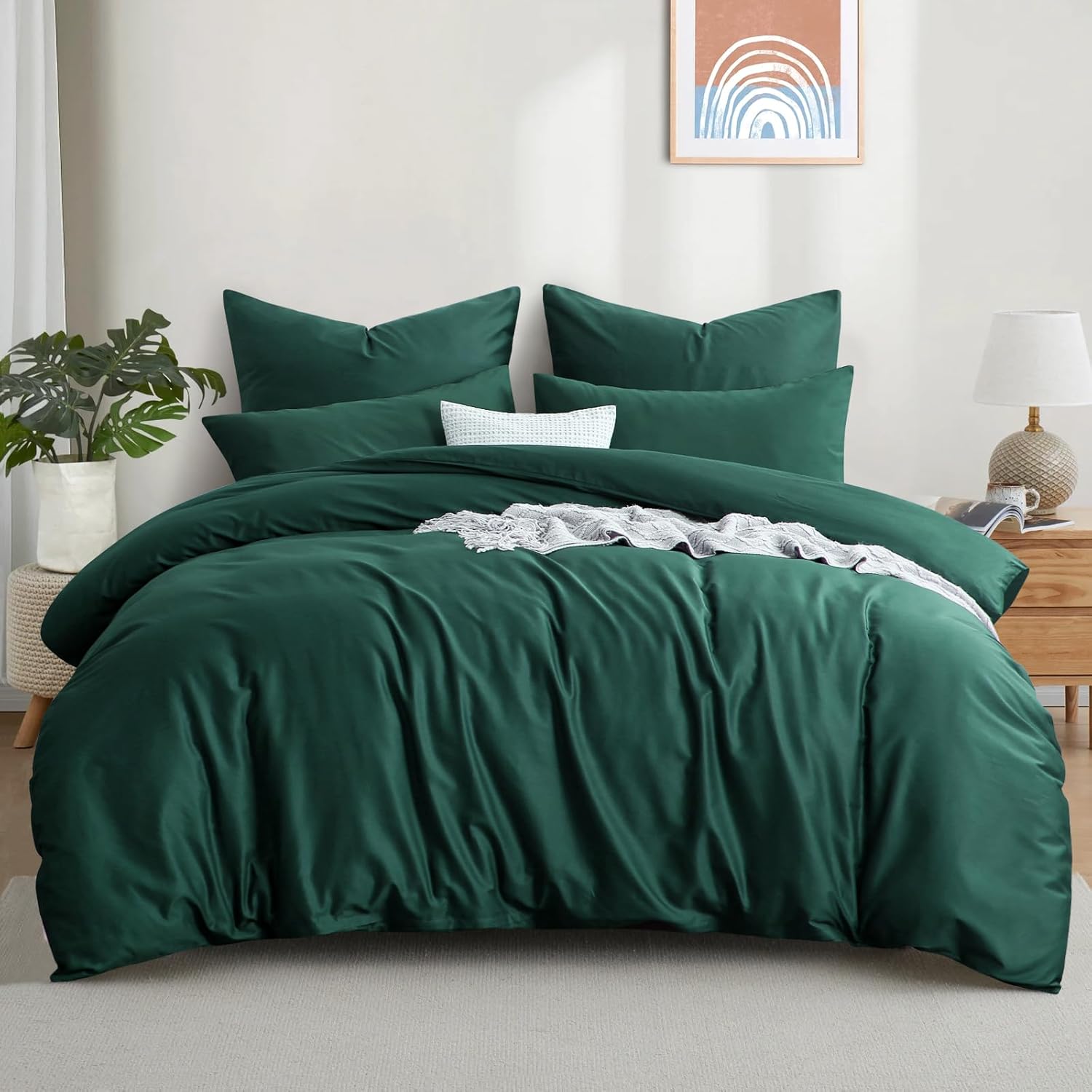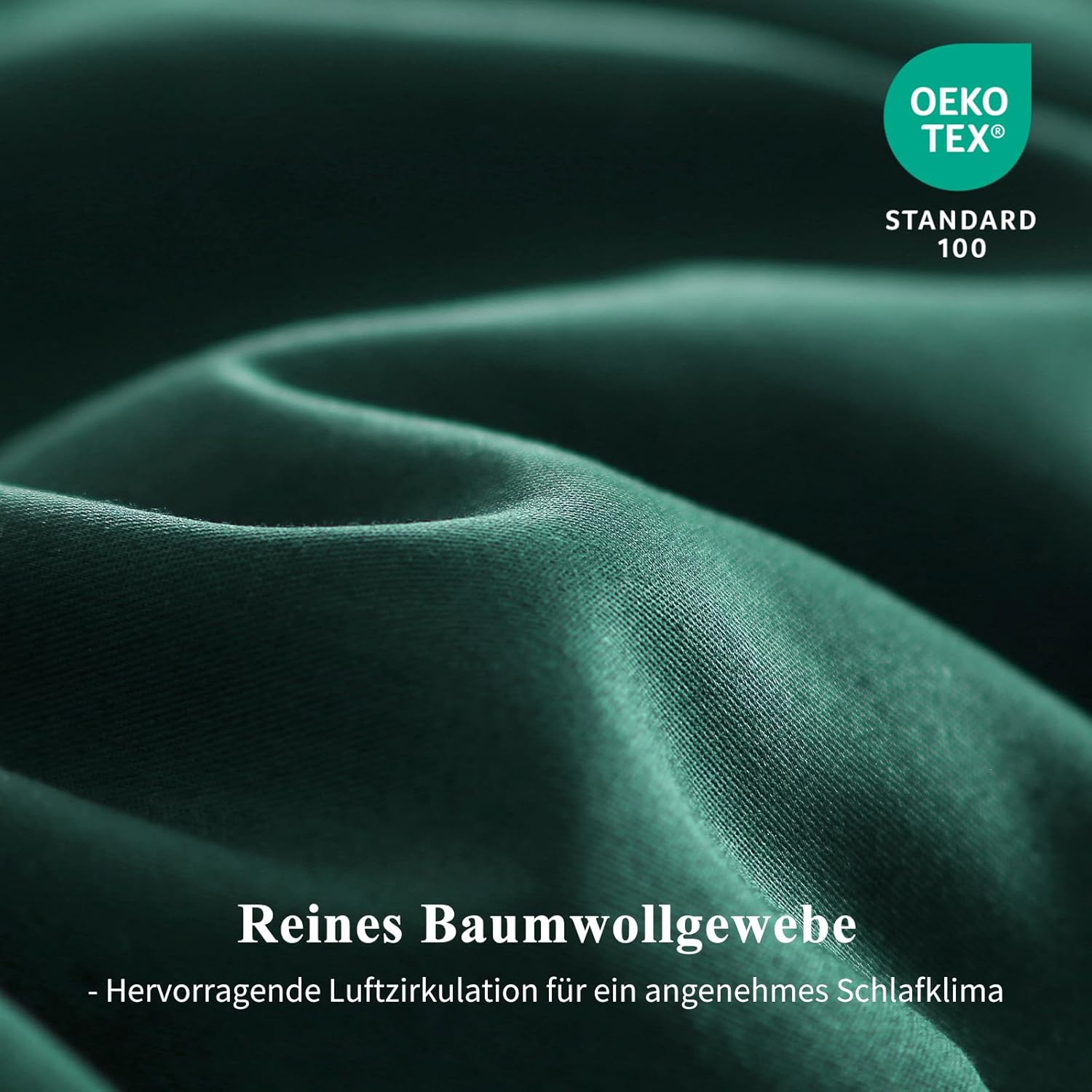 Спално бельо Aisbo 220 x 240 см, памучно, тъмнозелено - Комплекти спално бельо Плик за завивка 220 x 240 см, 3 части, с 2 калъфки за възглавници, 80 x 80 см, Комплект памучно спално бельо, Oeko-Tex спално бельо, зелено с цип