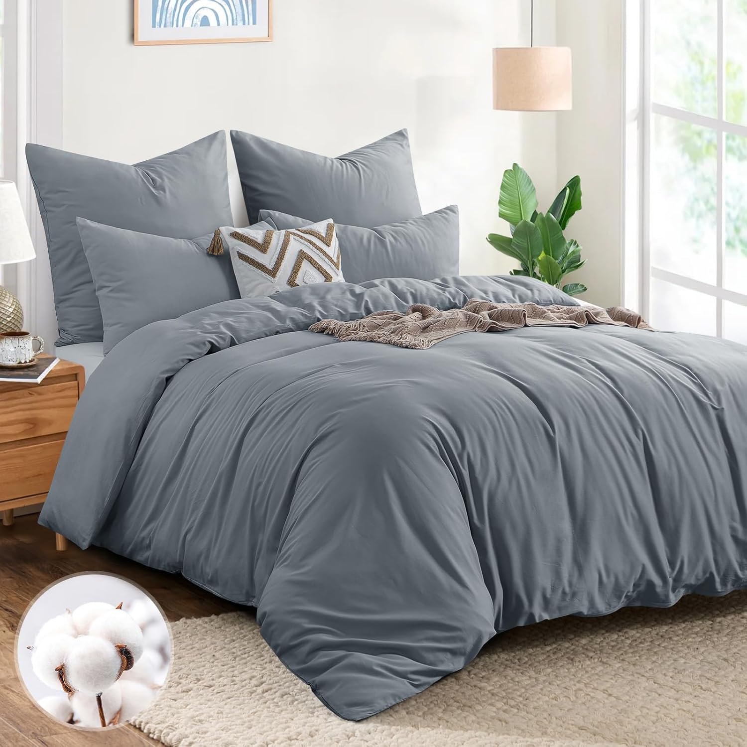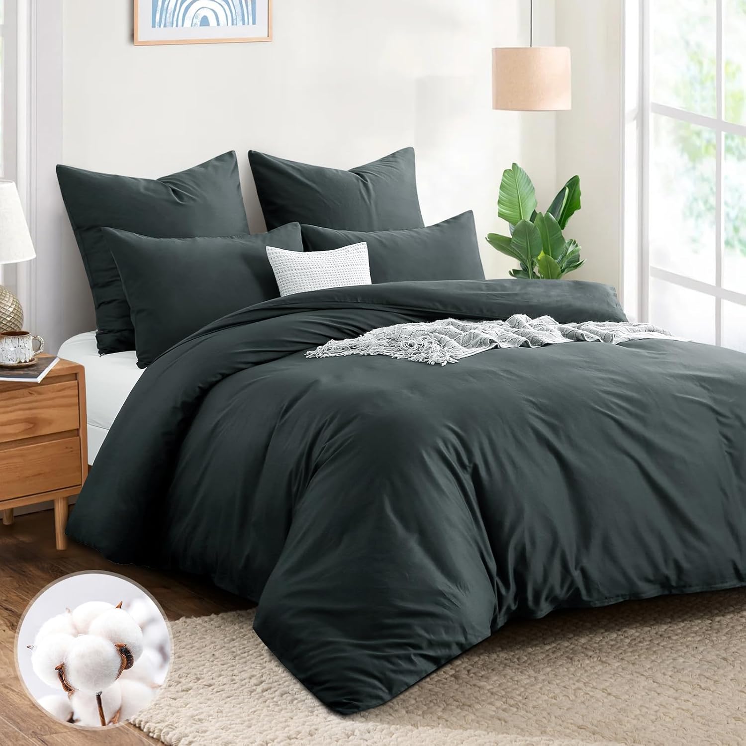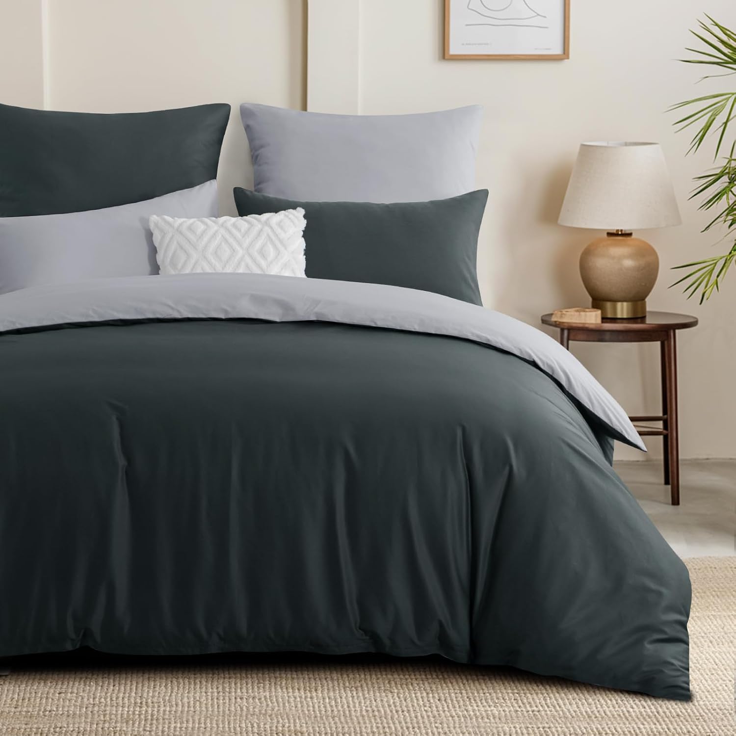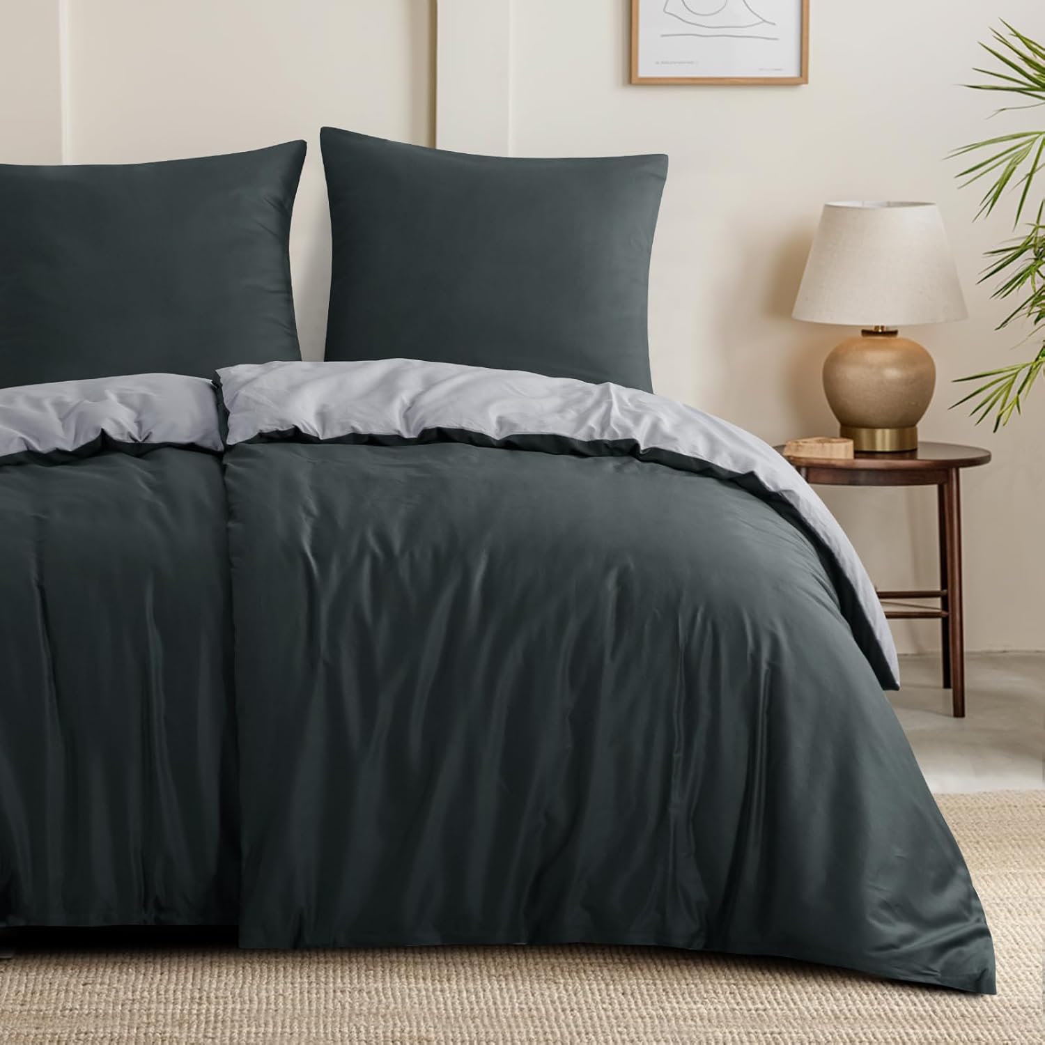 Спално бельо Aisbo 220 x 240 см Памук Антрацитно сиво - Комплекти спално бельо 220 x 240 см Двулицево спално бельо от 3 части с 2 калъфки за възглавници 80 x 80 см, Oeko-Tex Двуцветно памучно спално бельо с цип