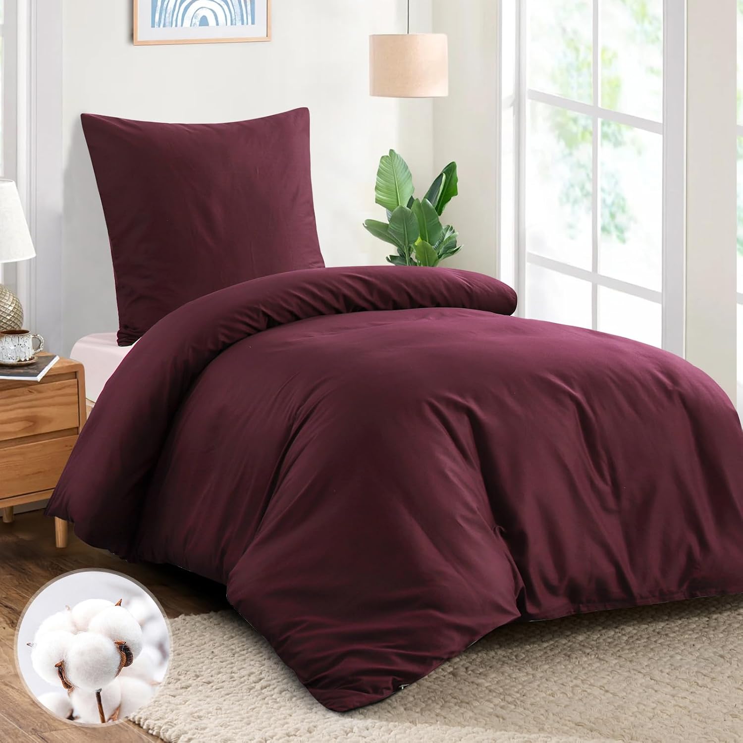 • Насладете се на спокоен нощен сън в нашето памучно спално бельо с размери 135 x 200 см (съдържание на кутията: 2 калъфа за завивки 135 x 200 см и 2 калъфки за възглавници 80 x 80 см). Естествената памучна материя прави комплекта спално бельо особено дишащ и абсорбиращ и по този начин предлага приятна среда за сън през цялата година.