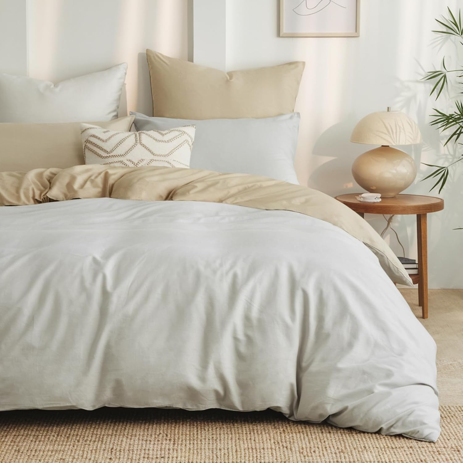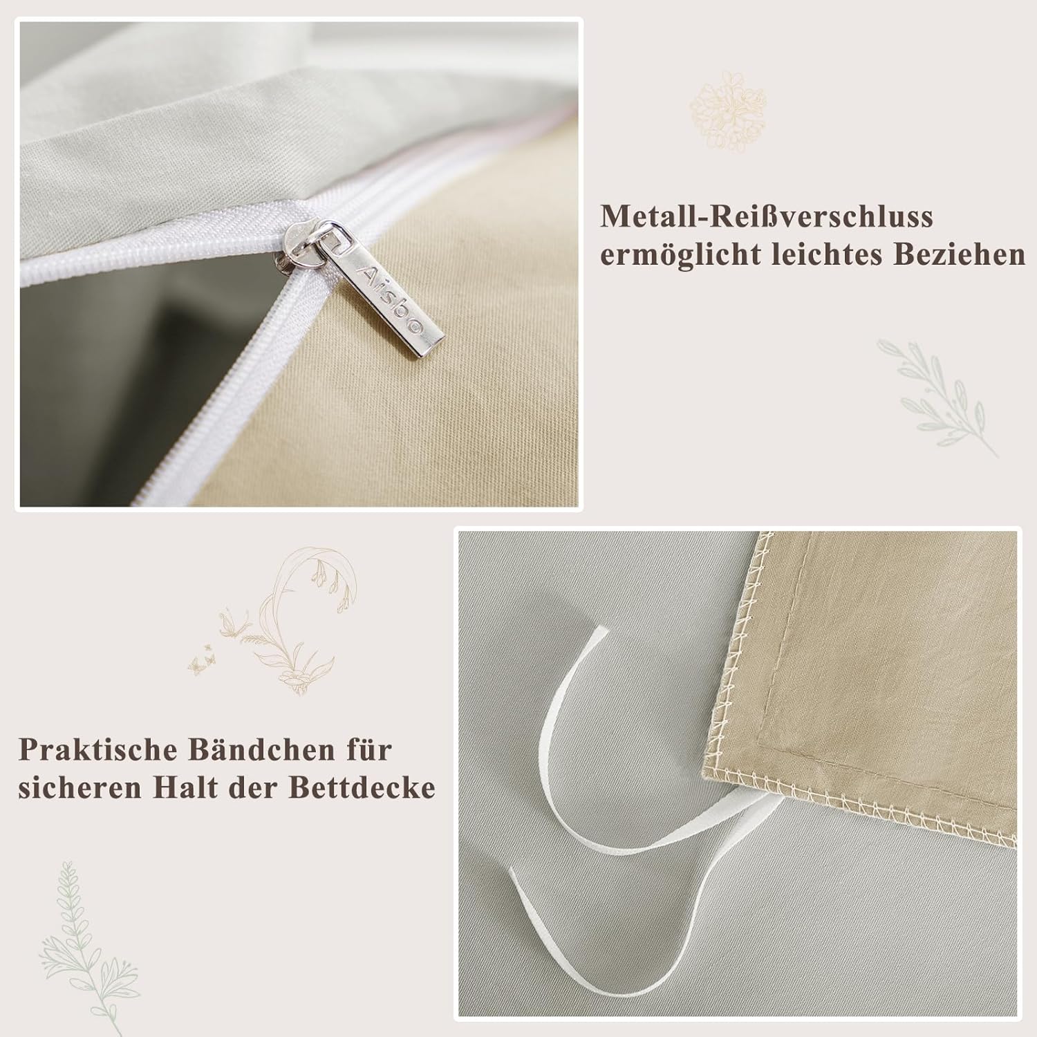 Спално бельо Aisbo 220 x 240 см Памук Каки Беж - Комплекти спално бельо 220 x 240 см Двулицев спално бельо от 3 части с 2 калъфки за възглавници 80 x 80 см, Памучно спално бельо Oeko-Tex Двуцветен калъф за завивка с цип