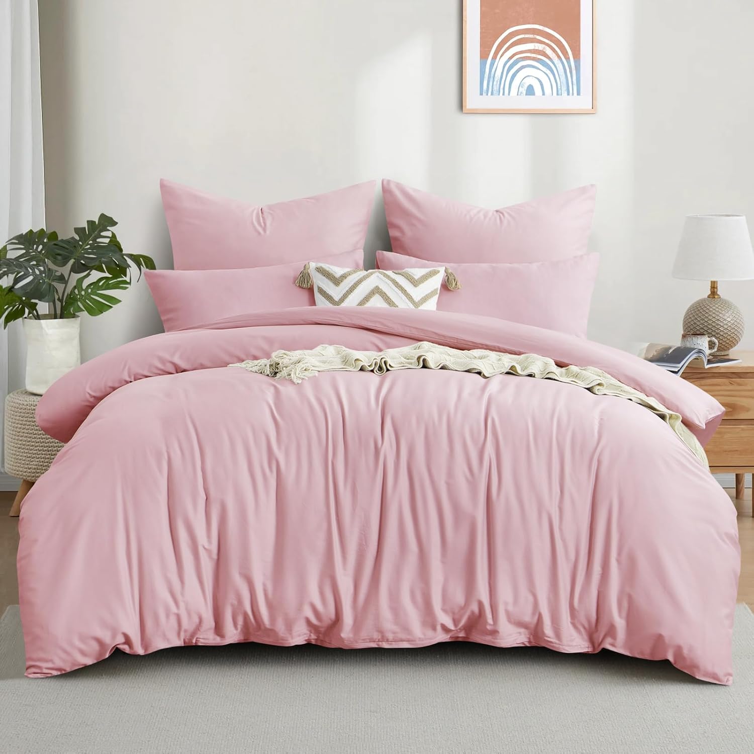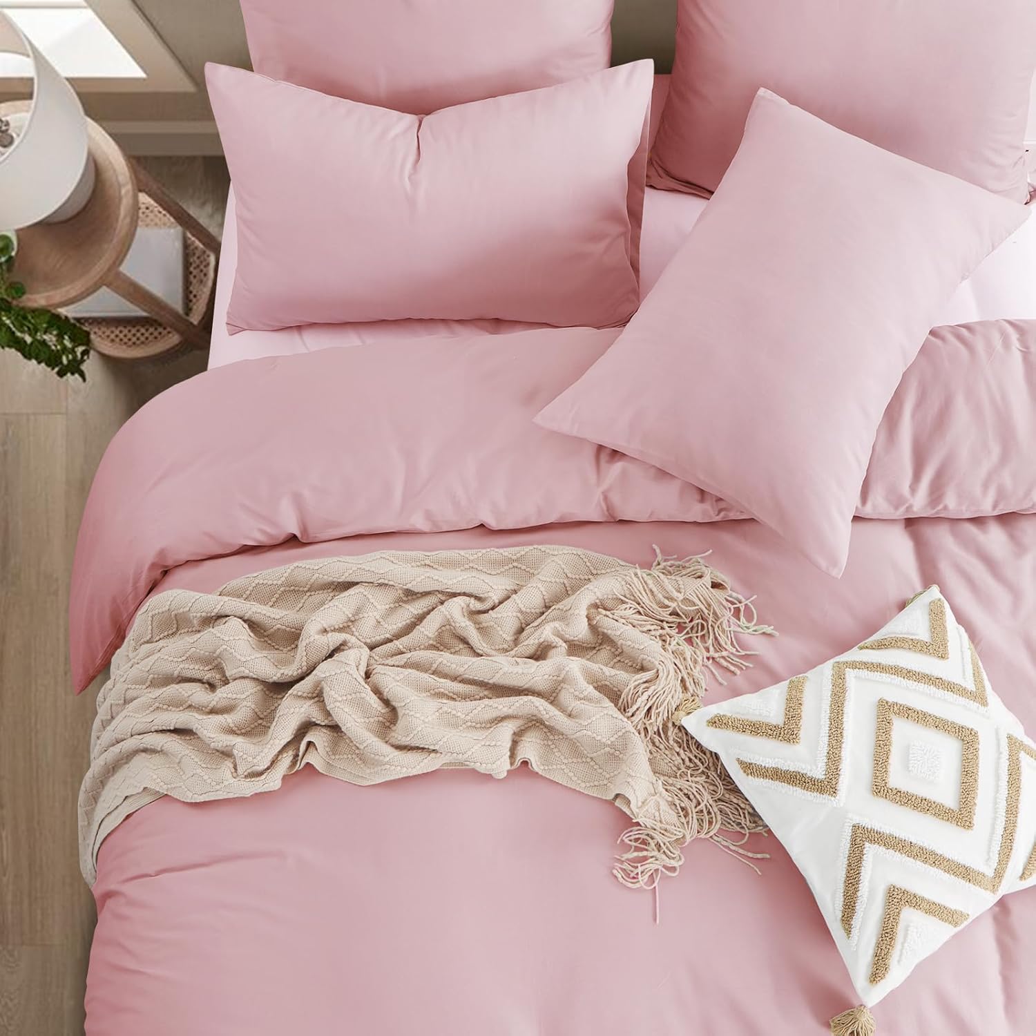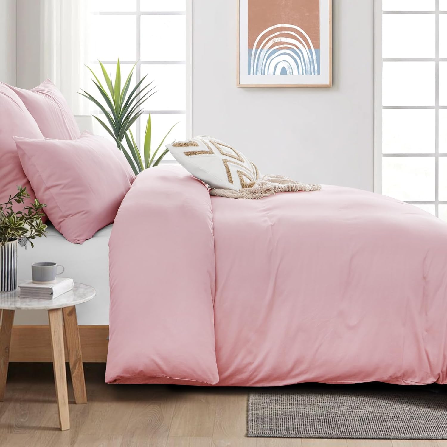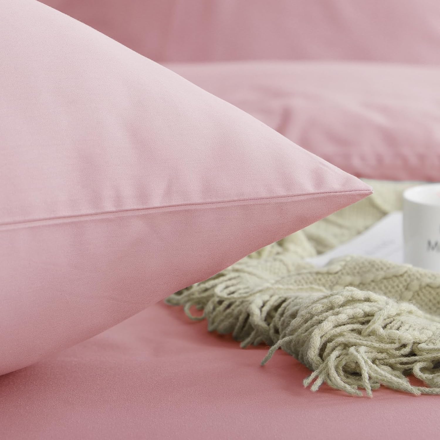 Спално бельо Aisbo 220 x 240 см, памук, розов - Комплекти спално бельо, калъф за завивка 220 x 240 см, 3 части, с 2 калъфки за възглавници, 80 x 80 см, Комплект памучно спално бельо, Oeko-Tex спално бельо, розово, с цип