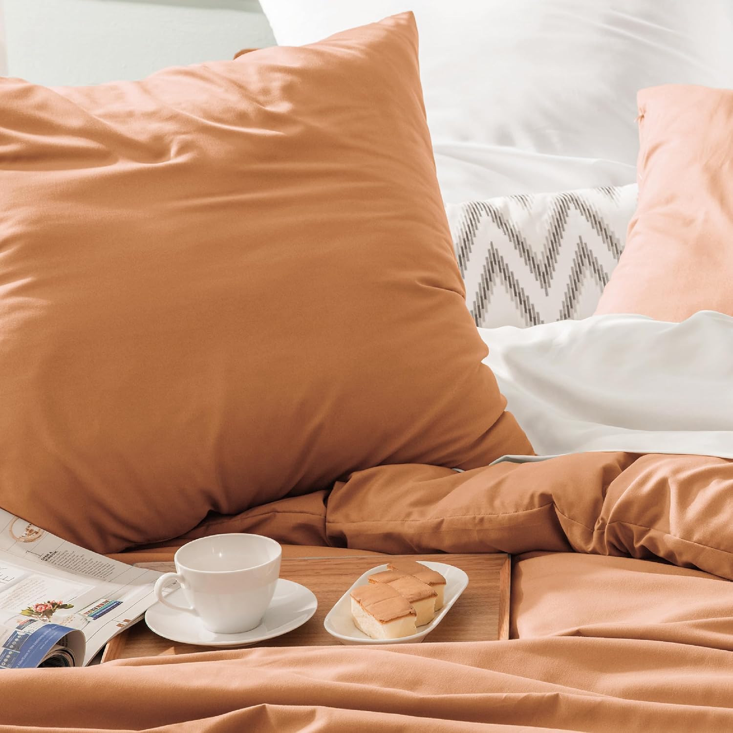 Спално бельо Bedsure 135 x 200 см, 2 броя спално бельо в цвят изгоряло оранжево, 1 калъф за завивка 135 x 200 см и 1 калъфка за възглавница 80 x 80 см, комплекти спално бельо Oeko-Tex, полиестерен микрофибър с цип