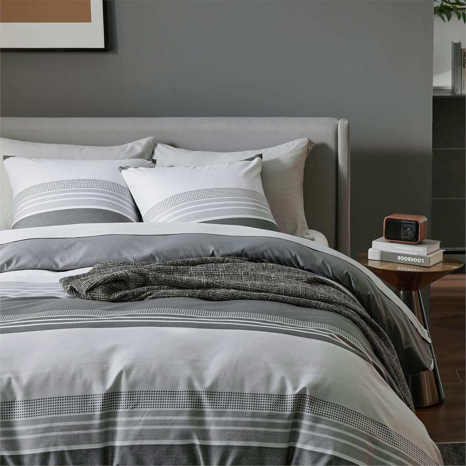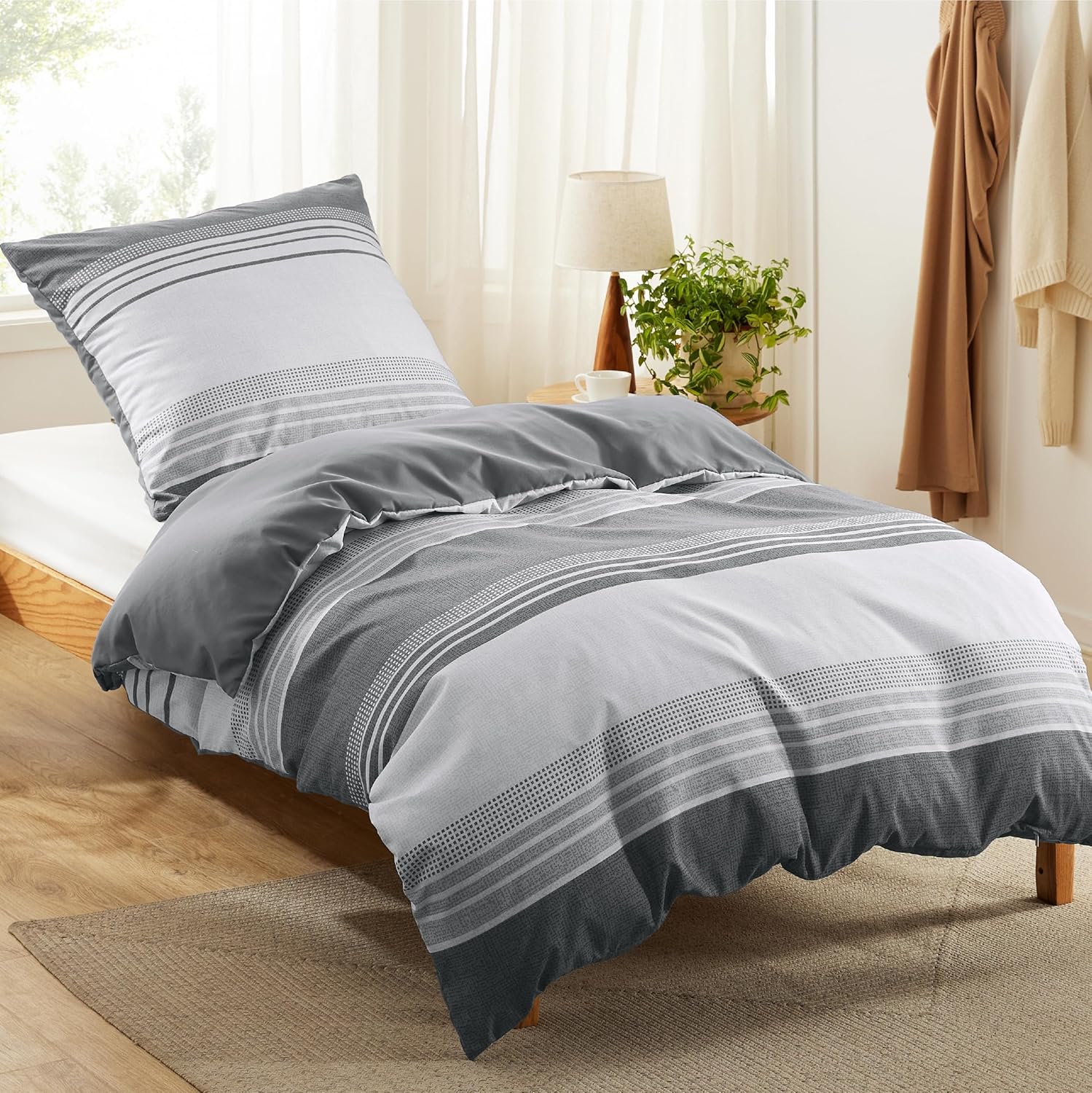 Спално бельо Bedsure 135 x 200 см, 2 части, калъф за завивка - Комплекти спално бельо, сив, 135 x 200 см, микрофибър, с калъфка за възглавница, 80 x 80 см, калъф за завивка с райета и цип