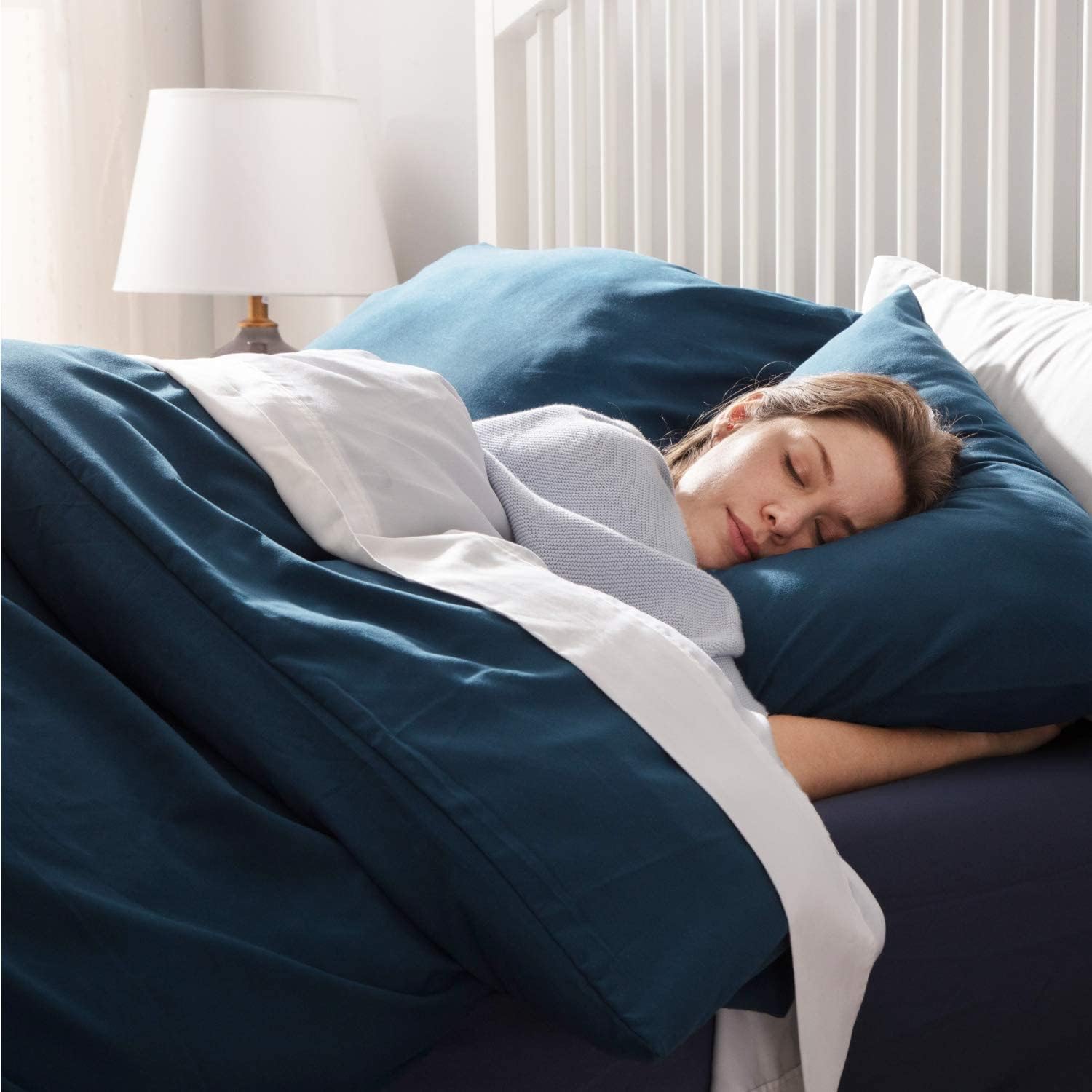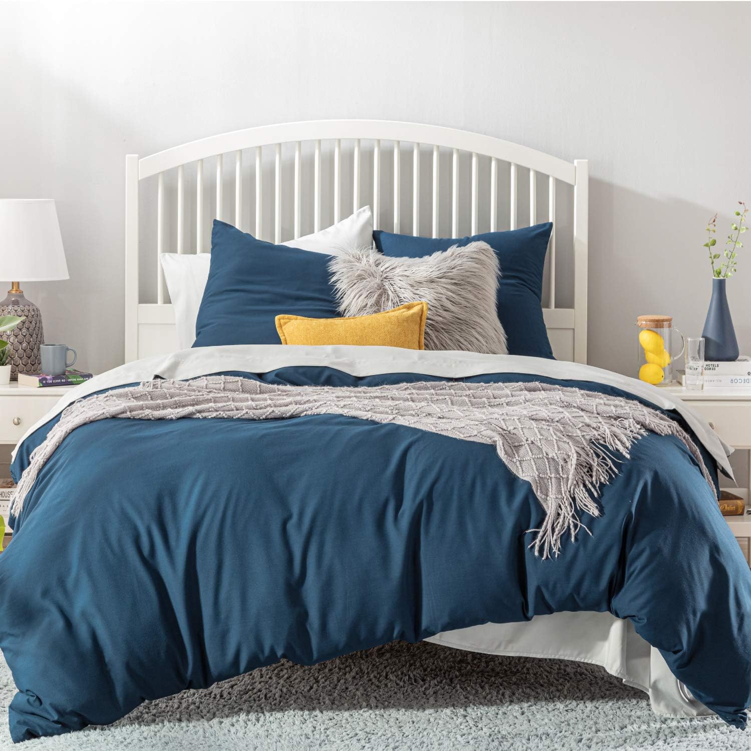 Спално бельо Bedsure 135 x 200 см, 2 части спално бельо в синьо, 1 калъф за завивка 135 x 200 см и 1 калъфка за възглавница 80 x 80 см, комплекти спално бельо Oeko-Tex, полиестерен микрофибър с цип
