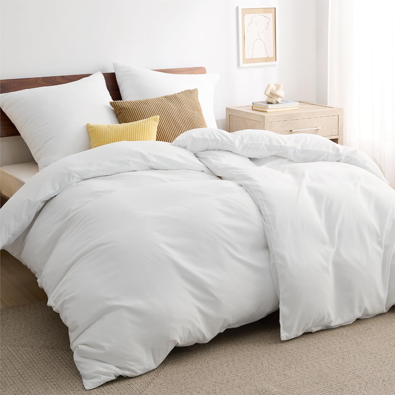 Спално бельо Bedsure 135 x 200 см, 4 броя бяло спално бельо, 2 калъфа за завивки 135 x 200 см и 2 калъфки за възглавници 80 x 80 см, комплекти спално бельо Oeko-Tex, полиестерен микрофибър с цип