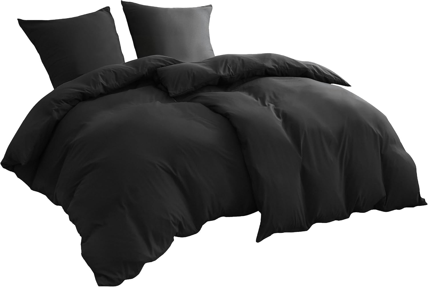 Спално бельо Bedsure 135 x 200 см, 4 броя черно спално бельо, 2 калъфа за завивки 135 x 200 см и 2 калъфки за възглавници 80 x 80 см, Комплекти спално бельо Oeko-Tex, Полиестерен микрофибър с цип
