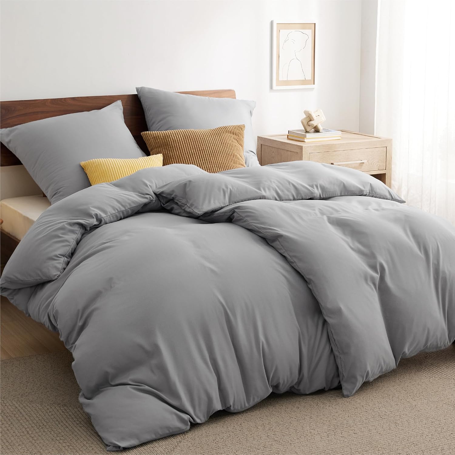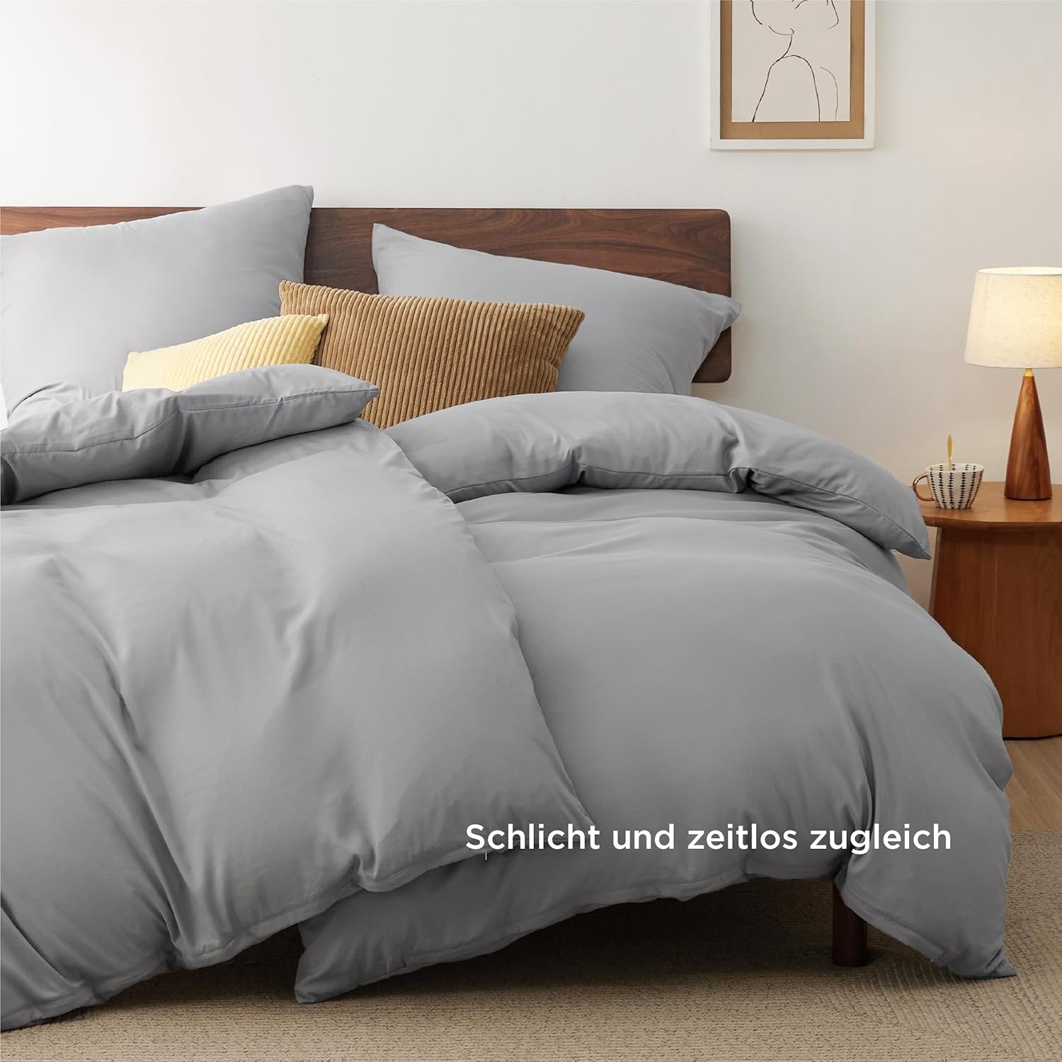Спално бельо Bedsure 135 x 200 см, 4 броя сиво спално бельо, 2 калъфа за завивки 135 x 200 см и 2 калъфки за възглавници 80 x 80 см, комплекти спално бельо Oeko-Tex, полиестерен микрофибър с цип