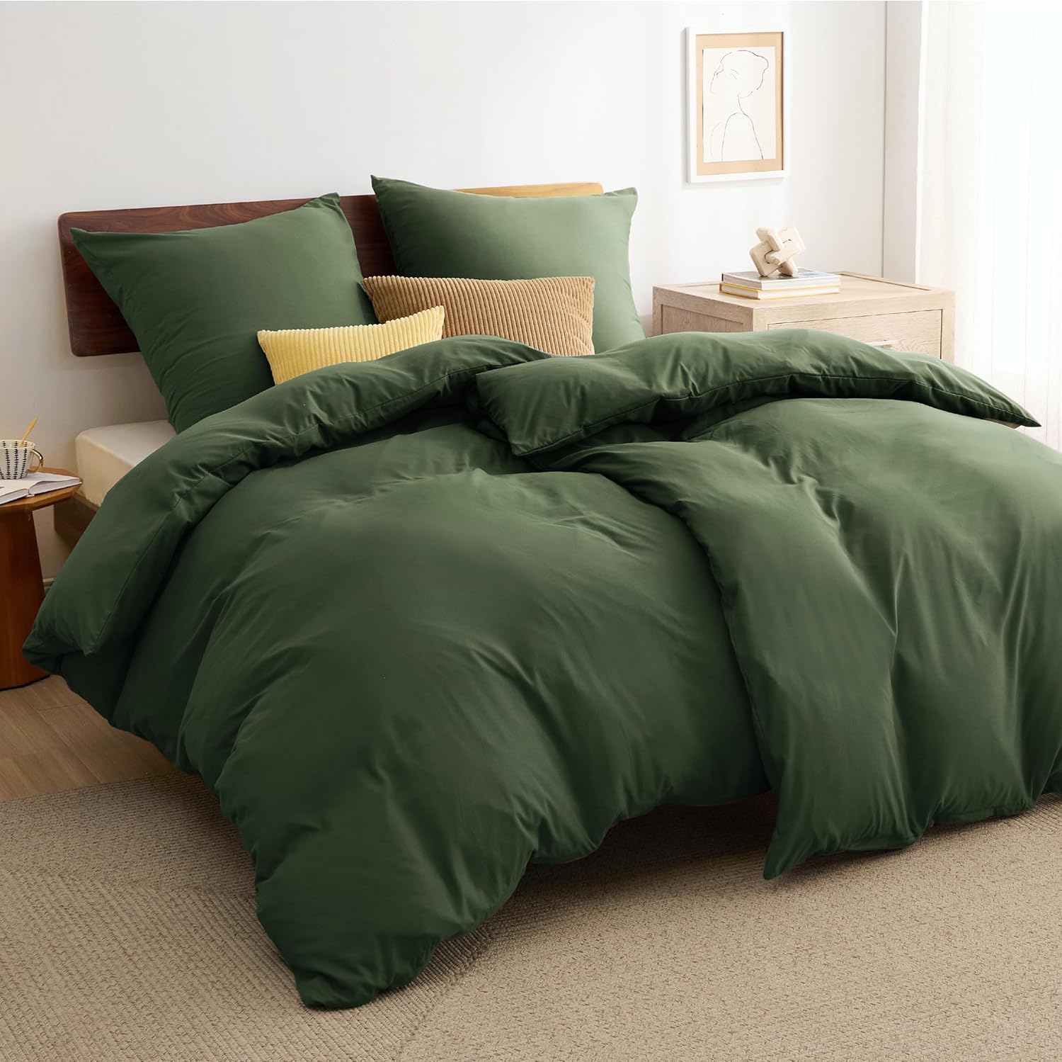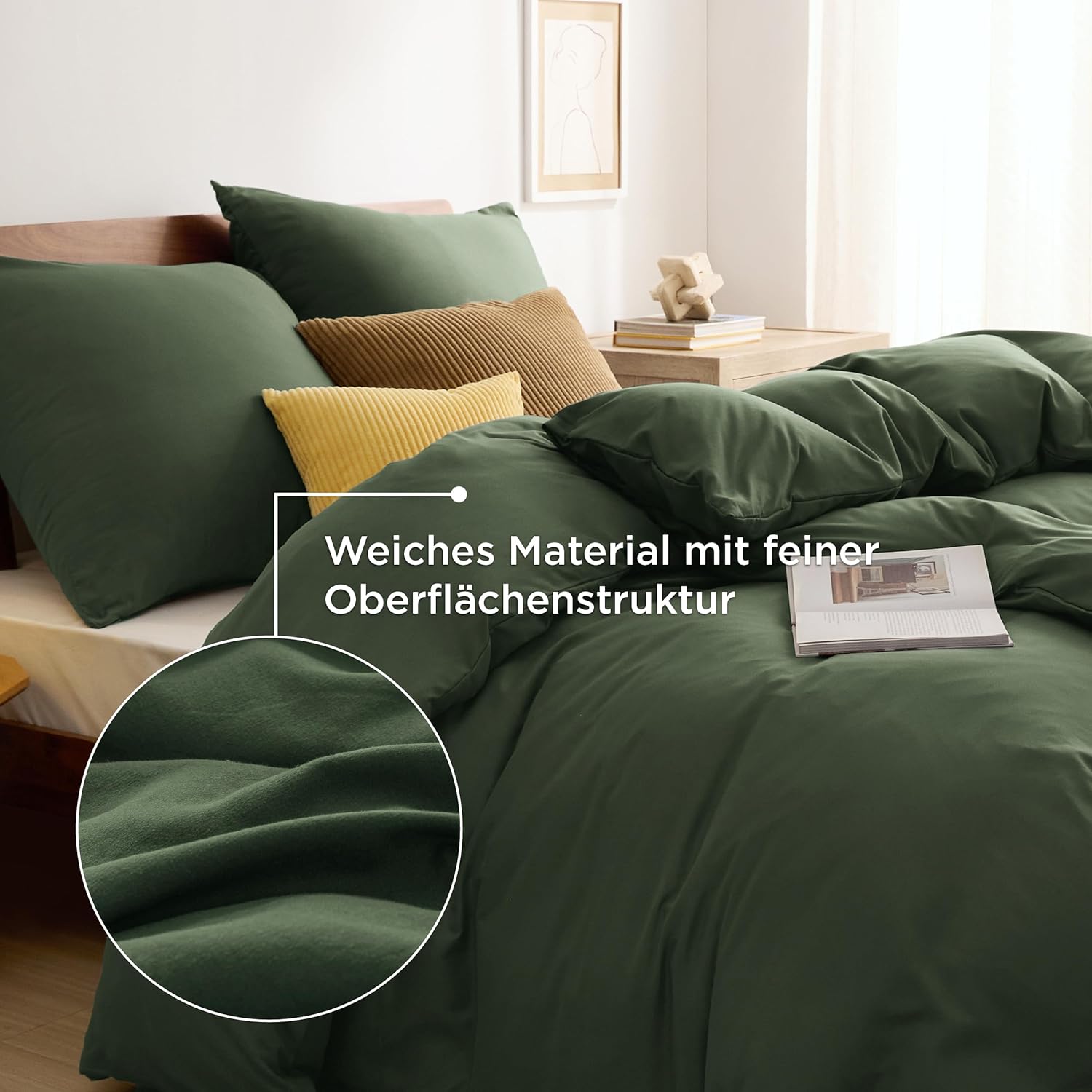 Спално бельо Bedsure 135 x 200 см, 4 броя спално бельо в сиво-маслинено зелено, 2 калъфа за завивки 135 x 200 см и 2 калъфки за възглавници 80 x 80 см, комплекти спално бельо Oeko-Tex, полиестерен микрофибър с цип