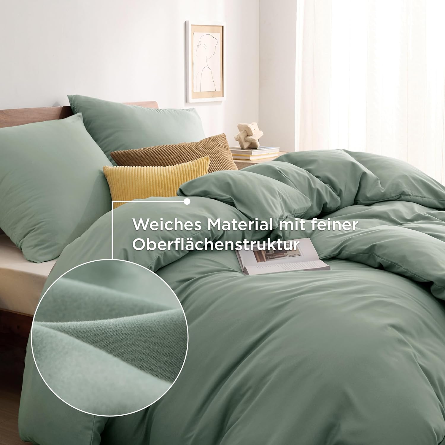 Спално бельо Bedsure 135 x 200 см, 4 броя спално бельо в цвят градински чай, 2 калъфки за завивки 135 x 200 см и 2 калъфки за възглавници 80 x 80 см, комплекти спално бельо Oeko-Tex, полиестерен микрофибър с цип