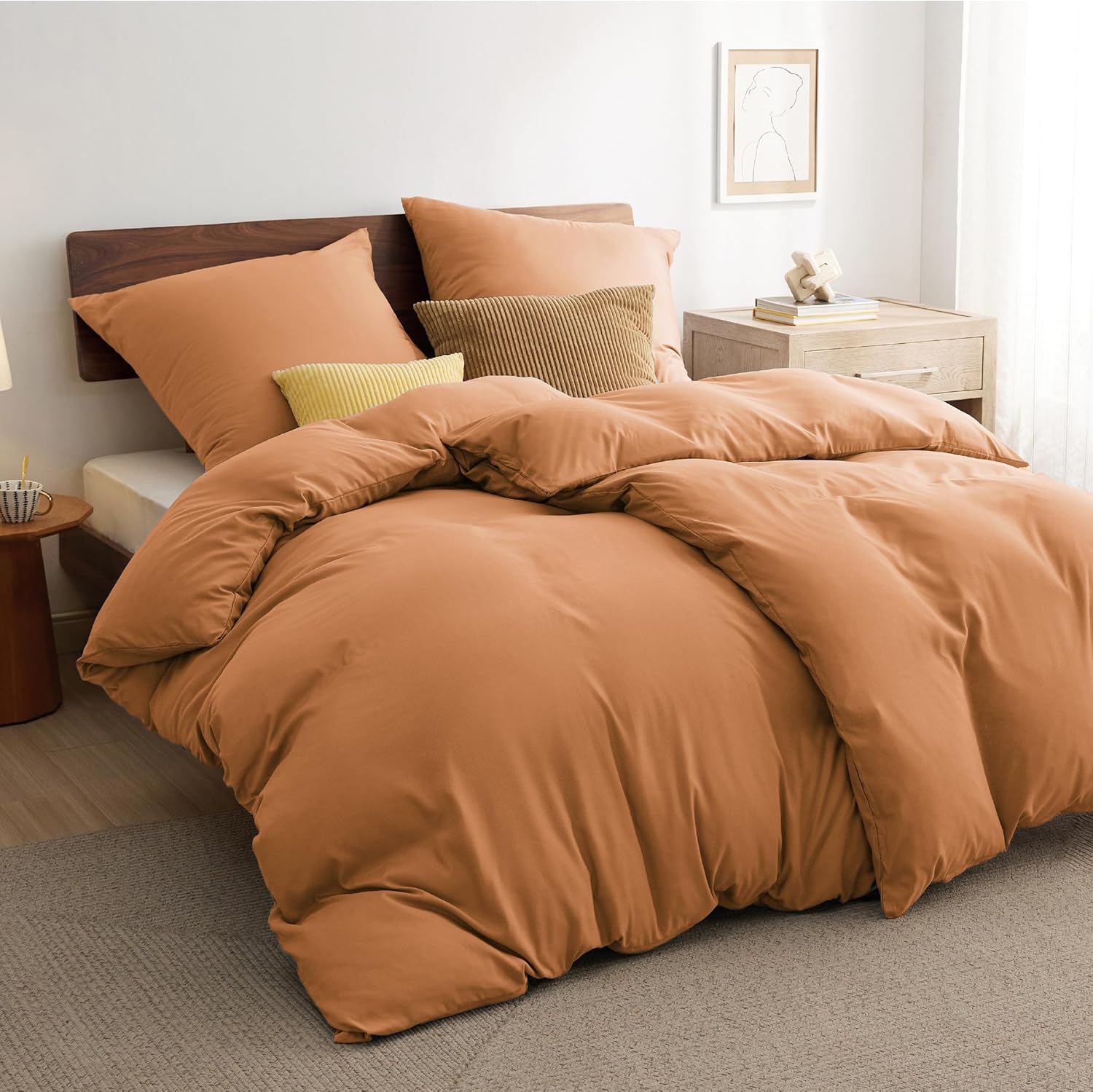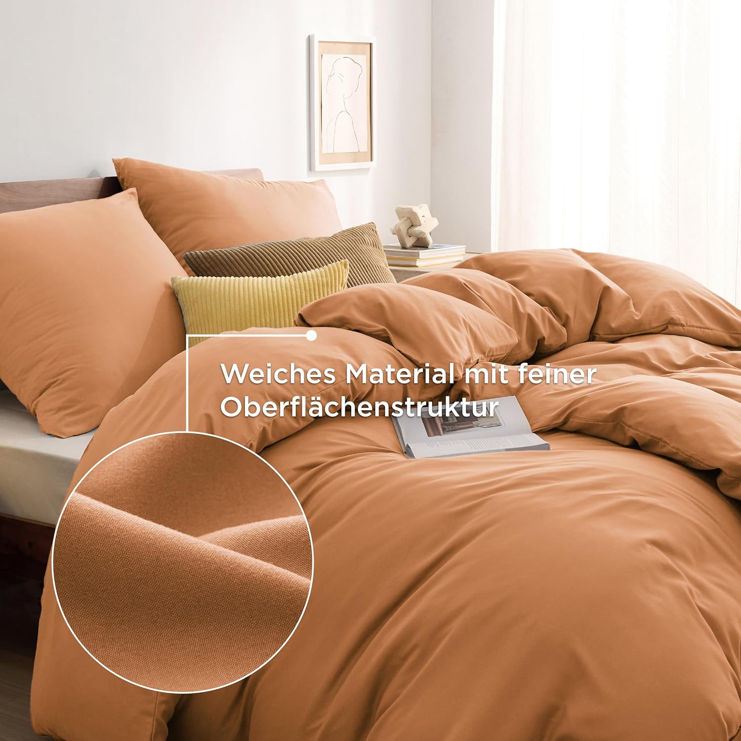 Спално бельо Bedsure 135 x 200 см, 4 броя спално бельо в цвят изгоряло оранжево, 2 калъфки за завивки 135 x 200 см и 2 калъфки за възглавници 80 x 80 см, комплекти спално бельо Oeko-Tex, полиестерен микрофибър с цип