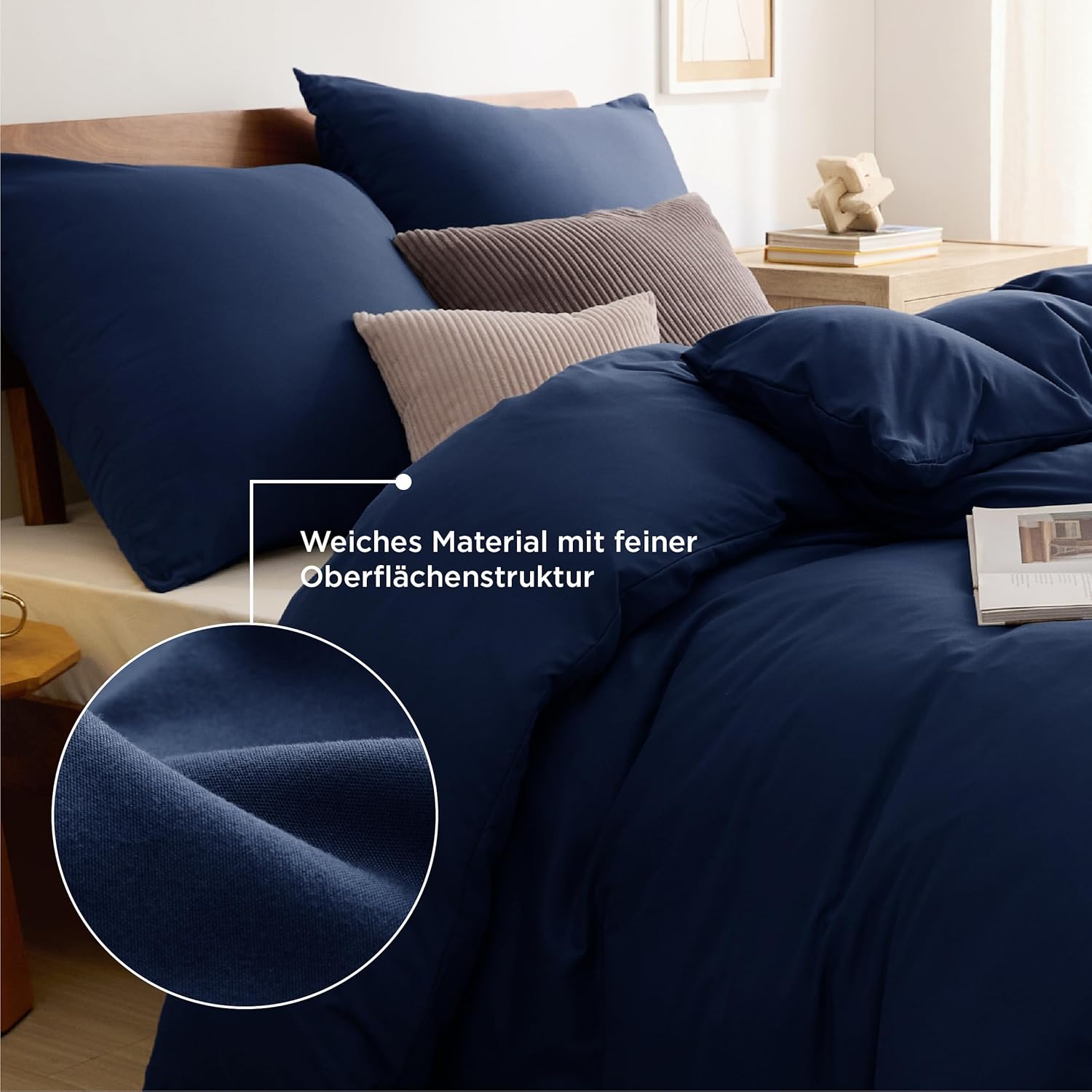 Спално бельо Bedsure 135 x 200 см, 4 части синьо спално бельо, 2 калъфа за завивки 135 x 200 см и 2 калъфки за възглавници 80 x 80 см, комплекти спално бельо Oeko-Tex, полиестерен микрофибър с цип