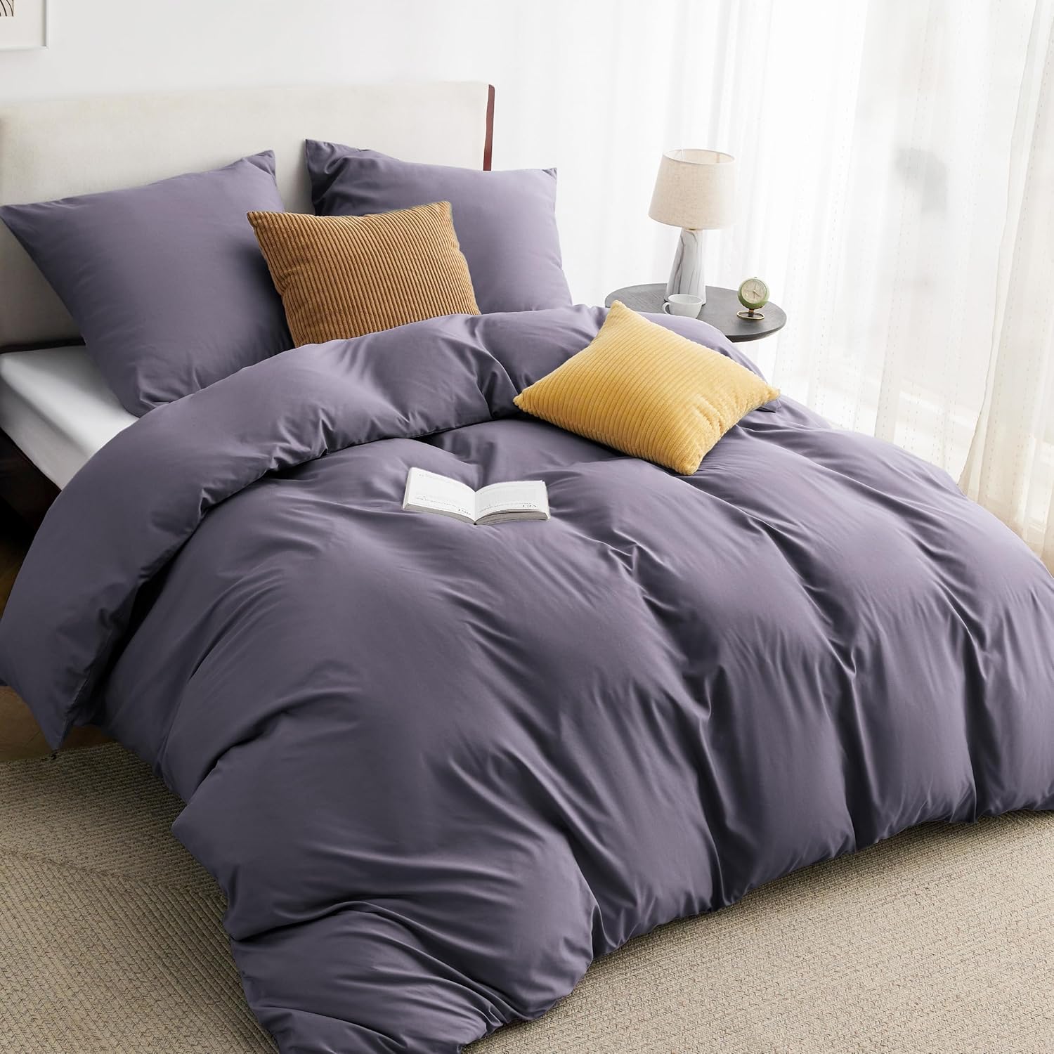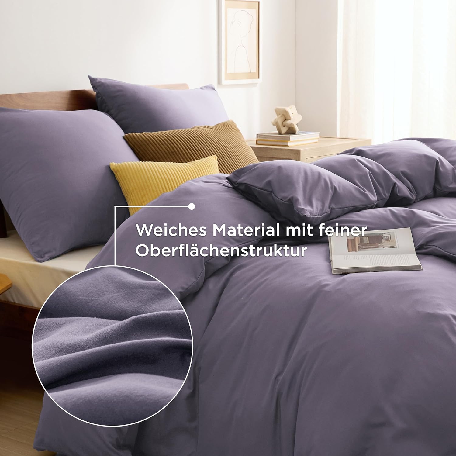 Спално бельо Bedsure 135 x 200 см 4 части сиво-лилаво спално бельо, 2 калъфа за завивки 135 x 200 см и 2 калъфки за възглавници 80 x 80 см, Oeko-Tex комплекти спално бельо, полиестерен микрофибър с цип