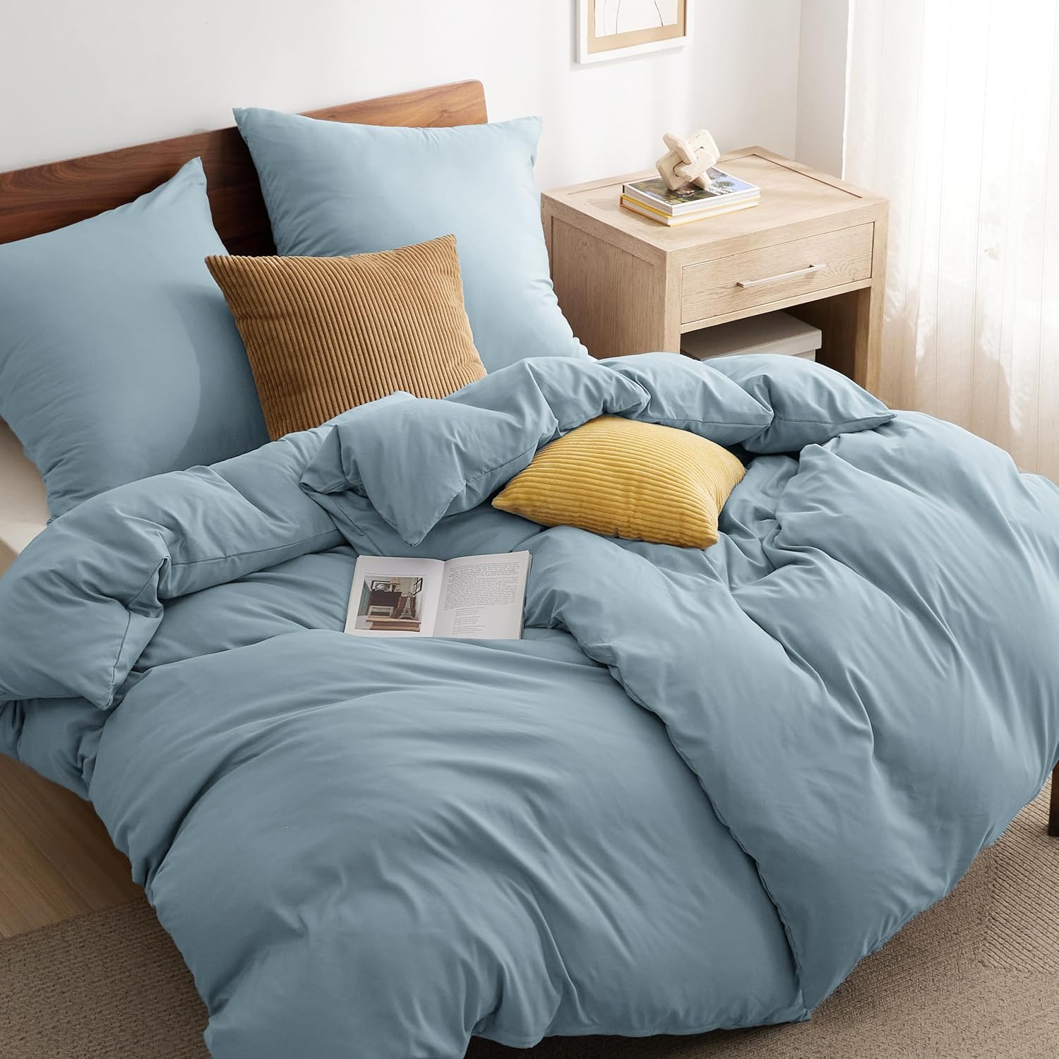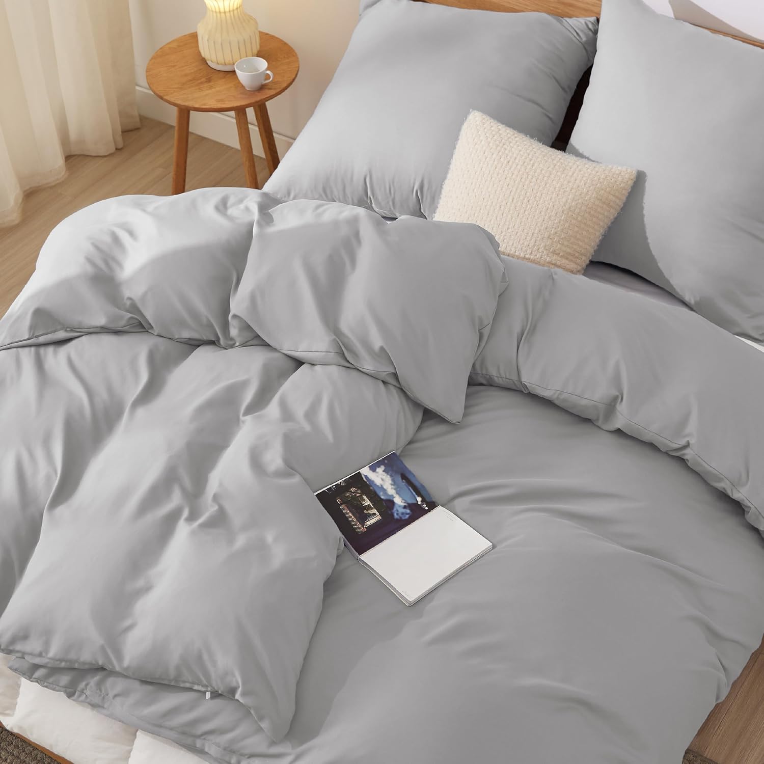 Спално бельо BEDSURE 135 x 200 см 4 части сребристо сиво - 2 калъфа за завивки 135 x 200 см + 2 калъфки за възглавници 80 x 80 см, Oeko-Tex комплекти спално бельо сив полиестерен микрофибър с цип