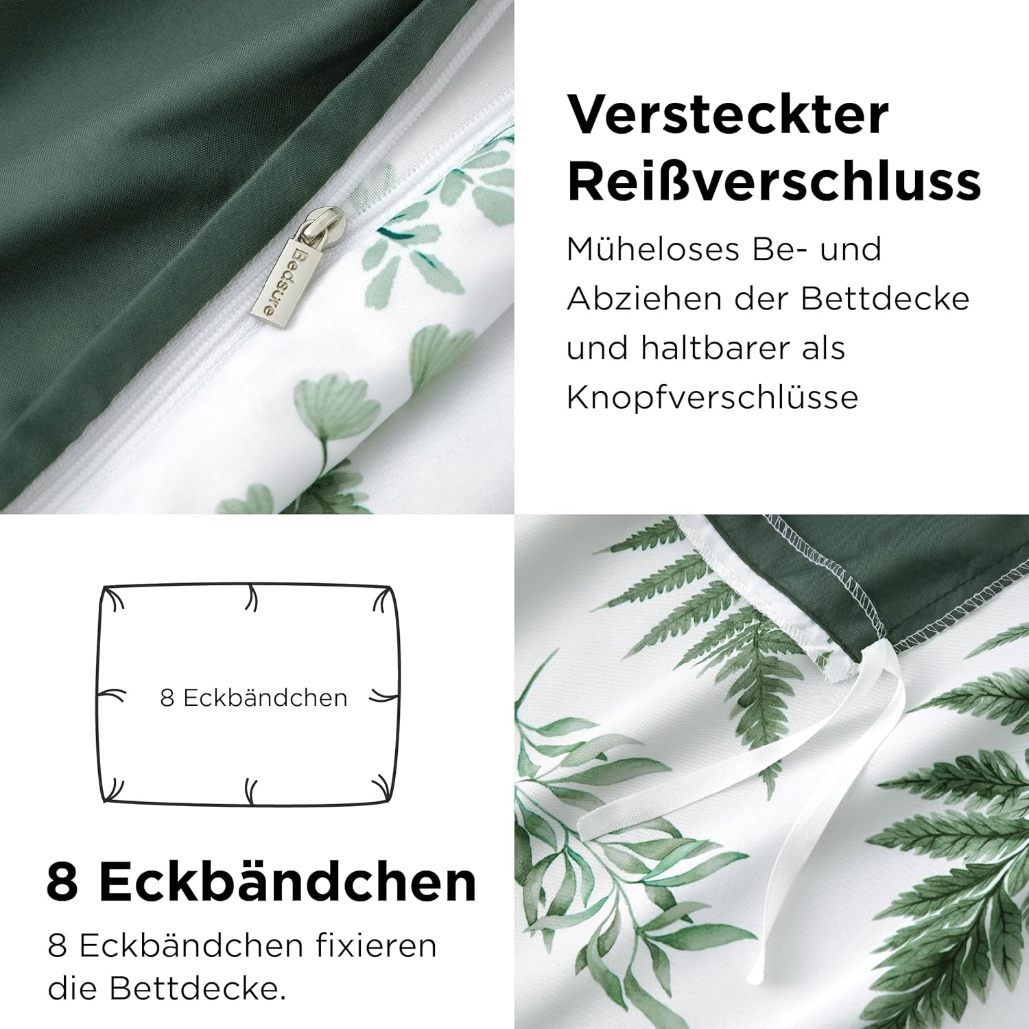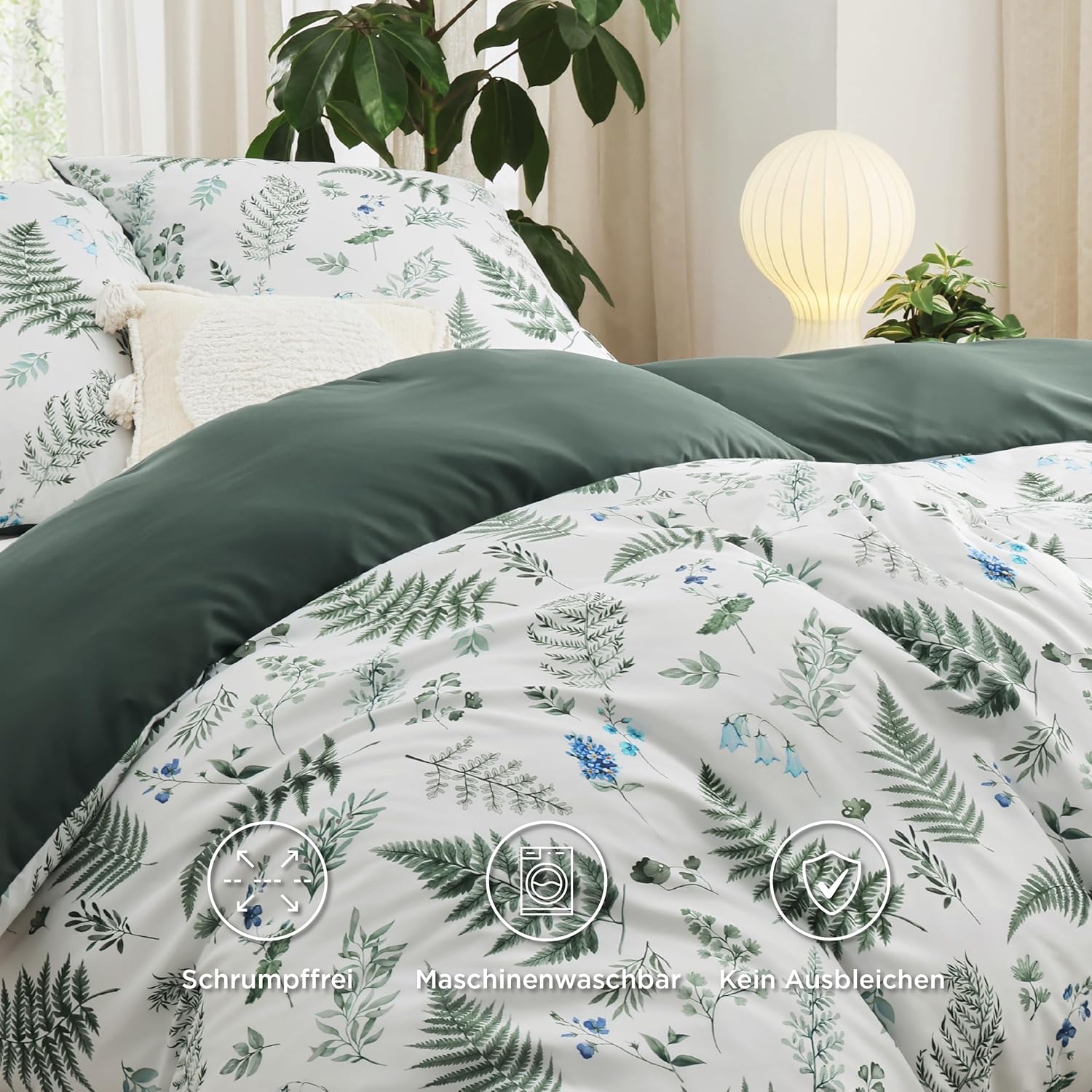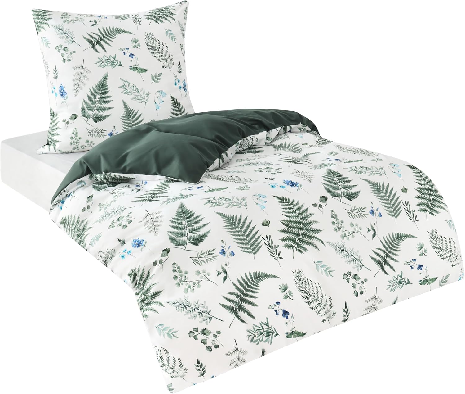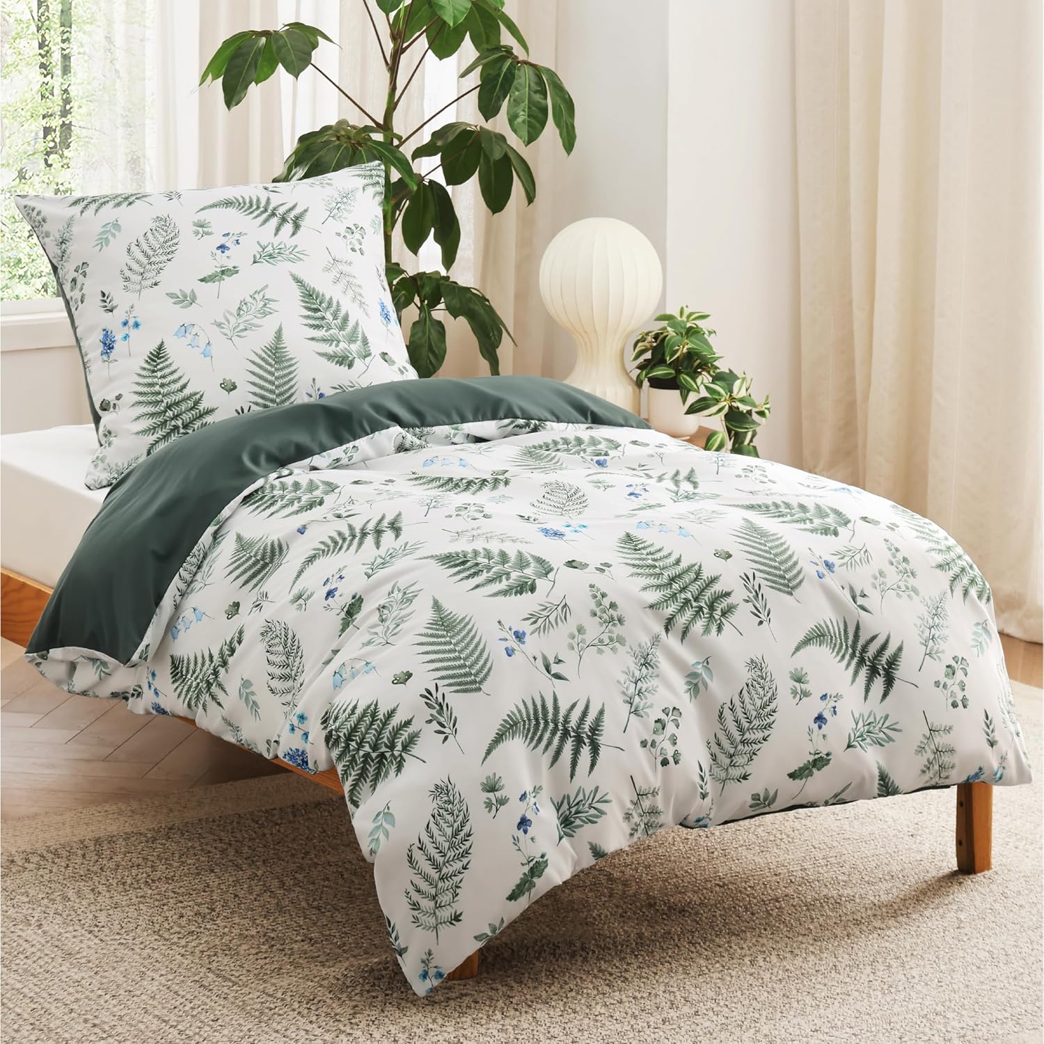 Спално бельо BEDSURE 135 x 200 см калъф за завивка от 2 части - Комплекти спално бельо 135 x 200 см с калъфка за възглавница 80 x 80 см, Oeko-Tex двустранно спално бельо с шарка зелени цветя и растения за единично легло с цип