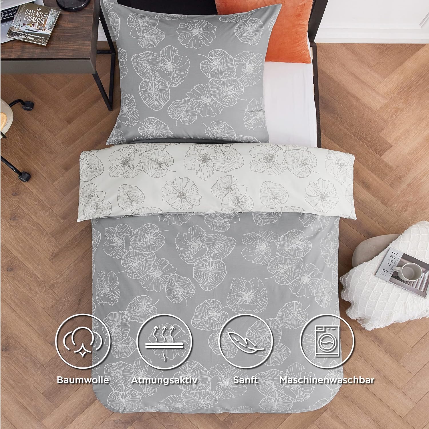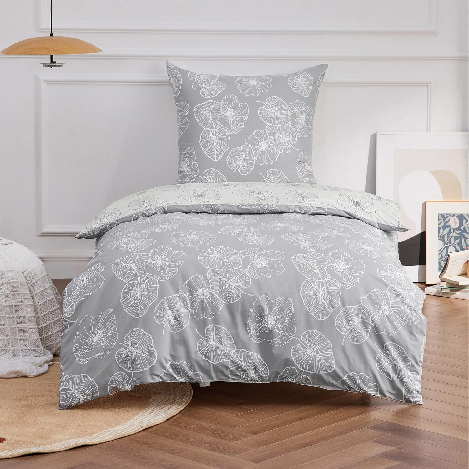 Bedsure Reversible Cotton Duvet Cover Set is lush and flowing with charming orange plum blossom on grey/ivory duvet cover. Made from fine, soft cotton fabric in inviting and soothing tones, this reversible branch bedding set will add a lively and delicate flair to your bedroom. Bring a breath of fresh air to your bed with our beautiful bed linen.