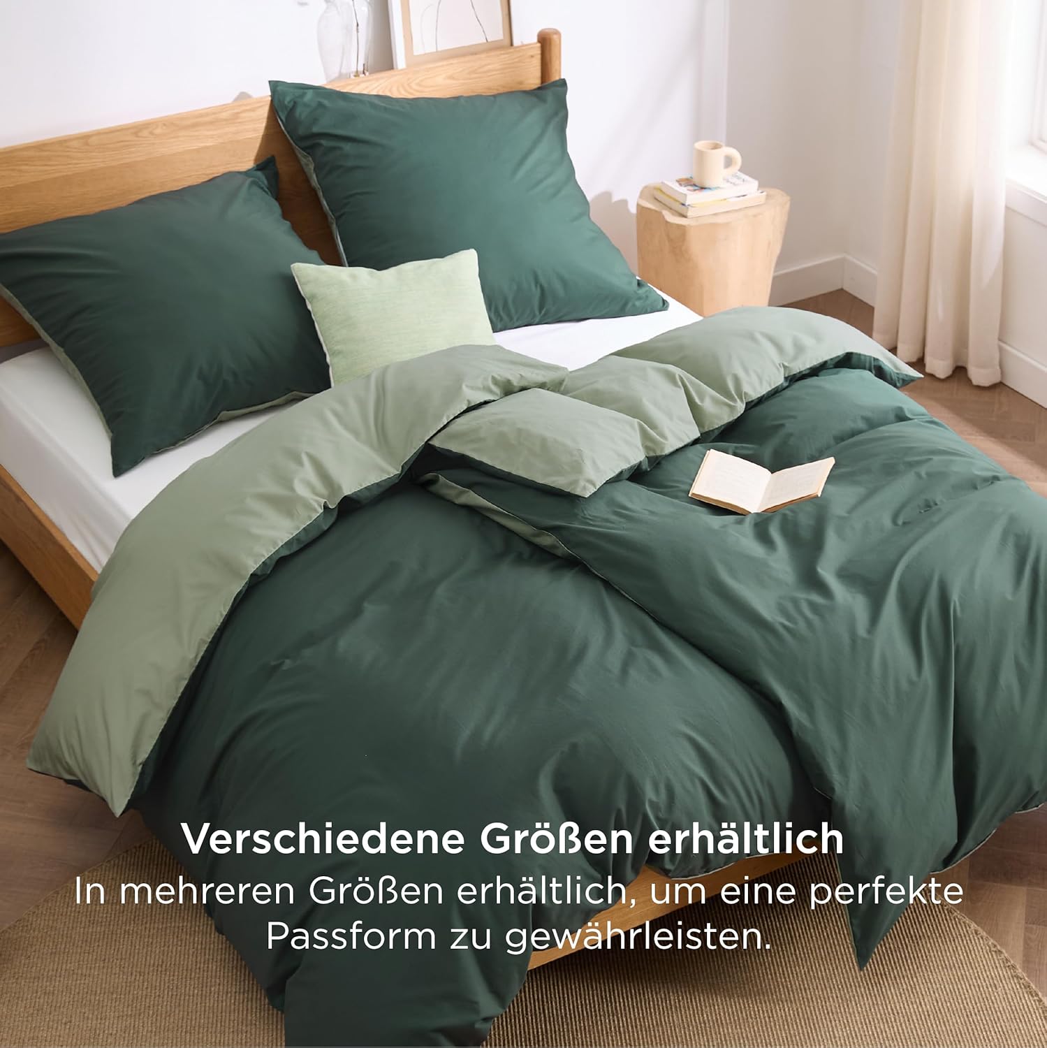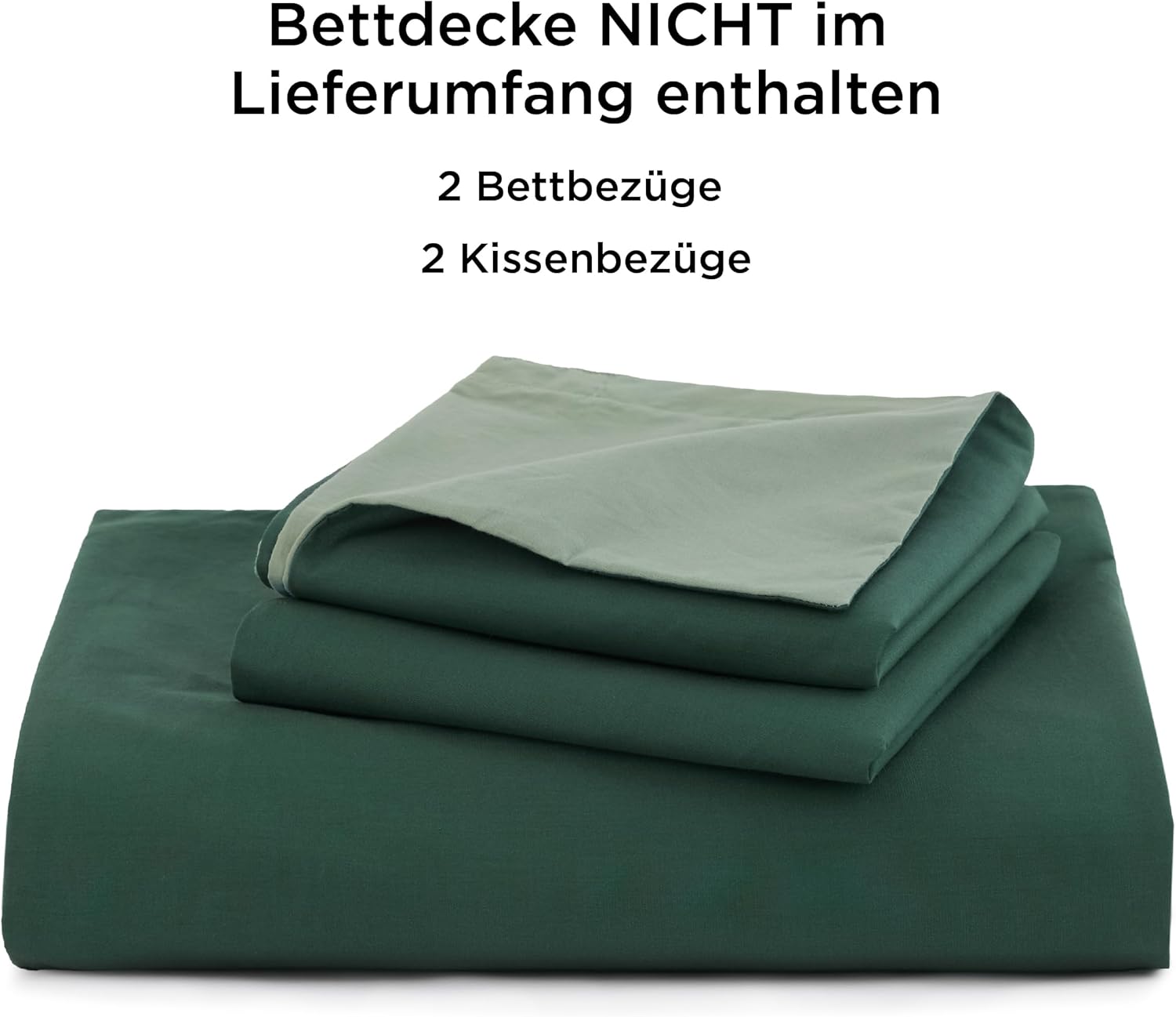 Спално бельо BEDSURE 135 x 200 см Памучен комплект спално бельо от 4 части в цвят градински чай, тъмнозелен, двустранен комплект спално бельо от 2 броя с 2 калъфки за възглавници 80 x 80 см, Oeko-Tex двуцветен калъф за завивка с цип