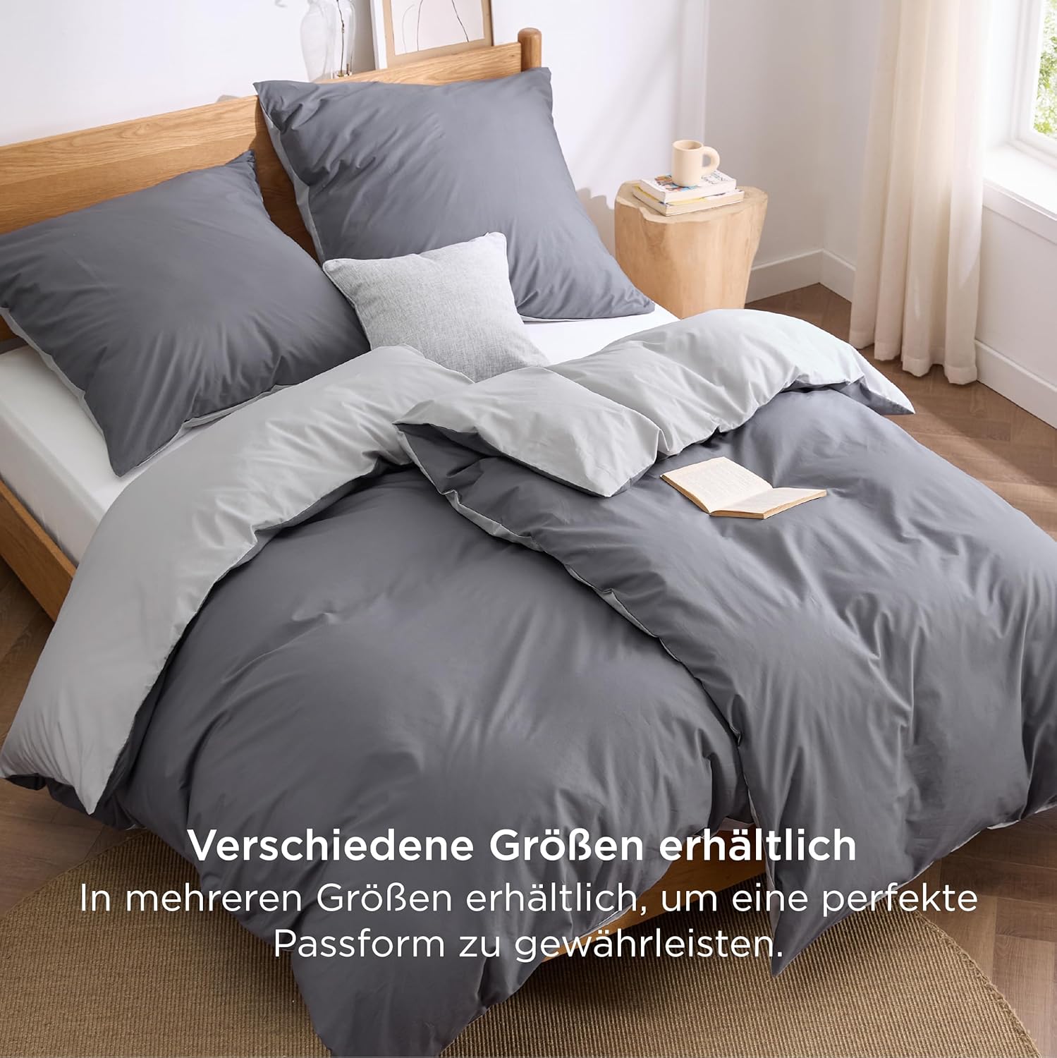 Спално бельо BEDSURE 135 x 200 см Памучно спално бельо от 4 части Антрацитно сиво Комплект спално бельо с две лица от 2 с 2 калъфки за възглавници 80 x 80 см, Oeko-Tex двуцветен плик за завивка с цип