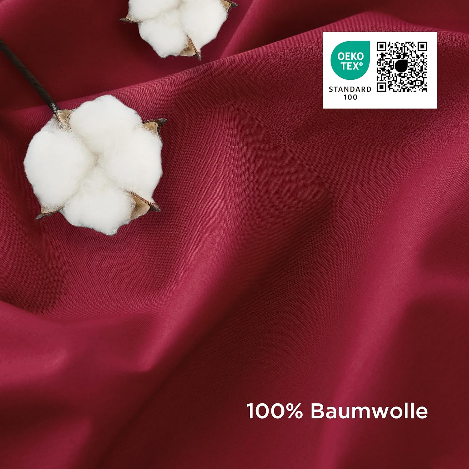 Спално бельо BEDSURE 135 x 200 см Памучно спално бельо от 4 части Червен Комплект от 2 калъфки за завивка с 2 калъфки за възглавници 80 x 80 см, Oeko-Tex Спално бельо Червено с цип