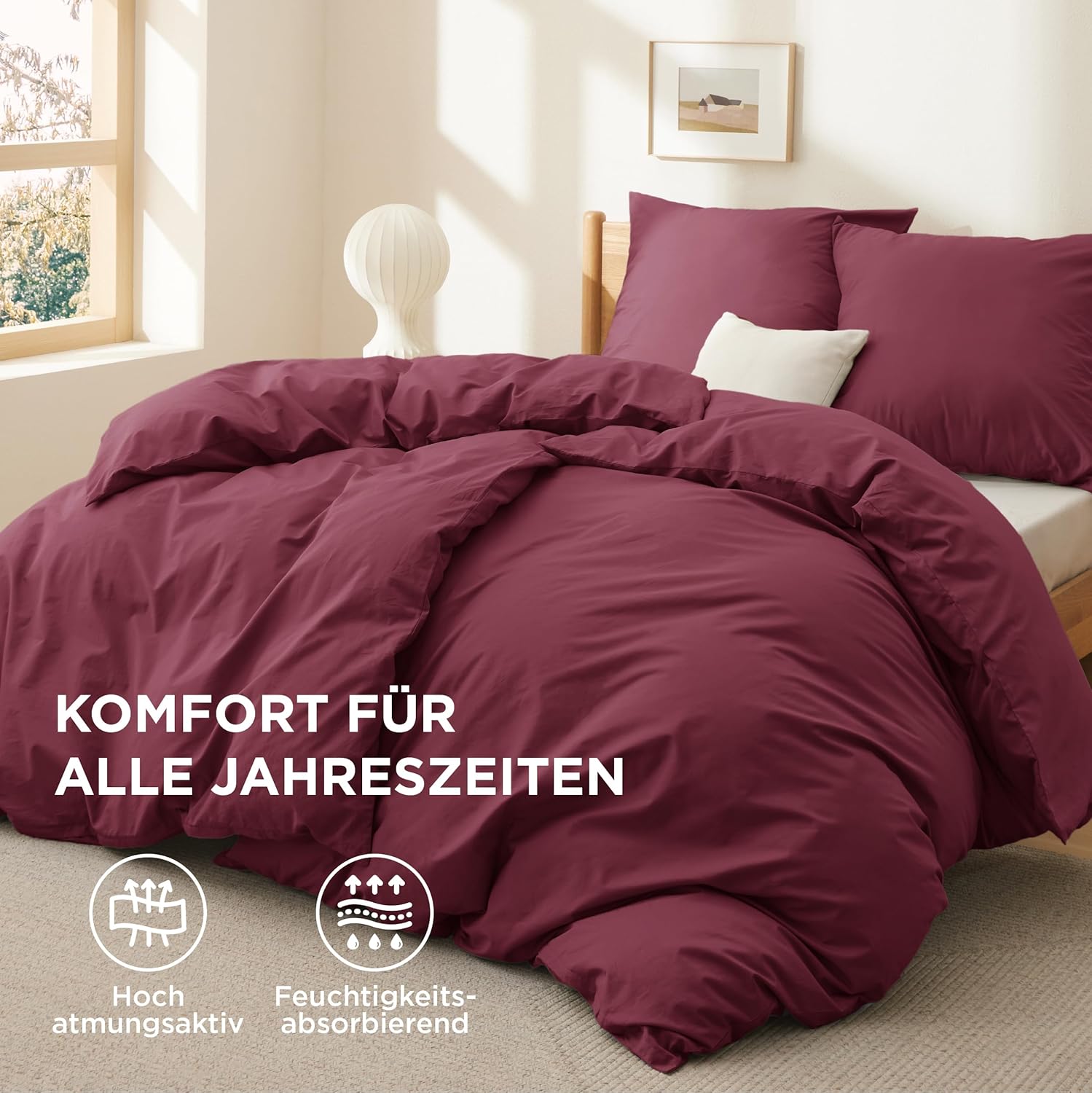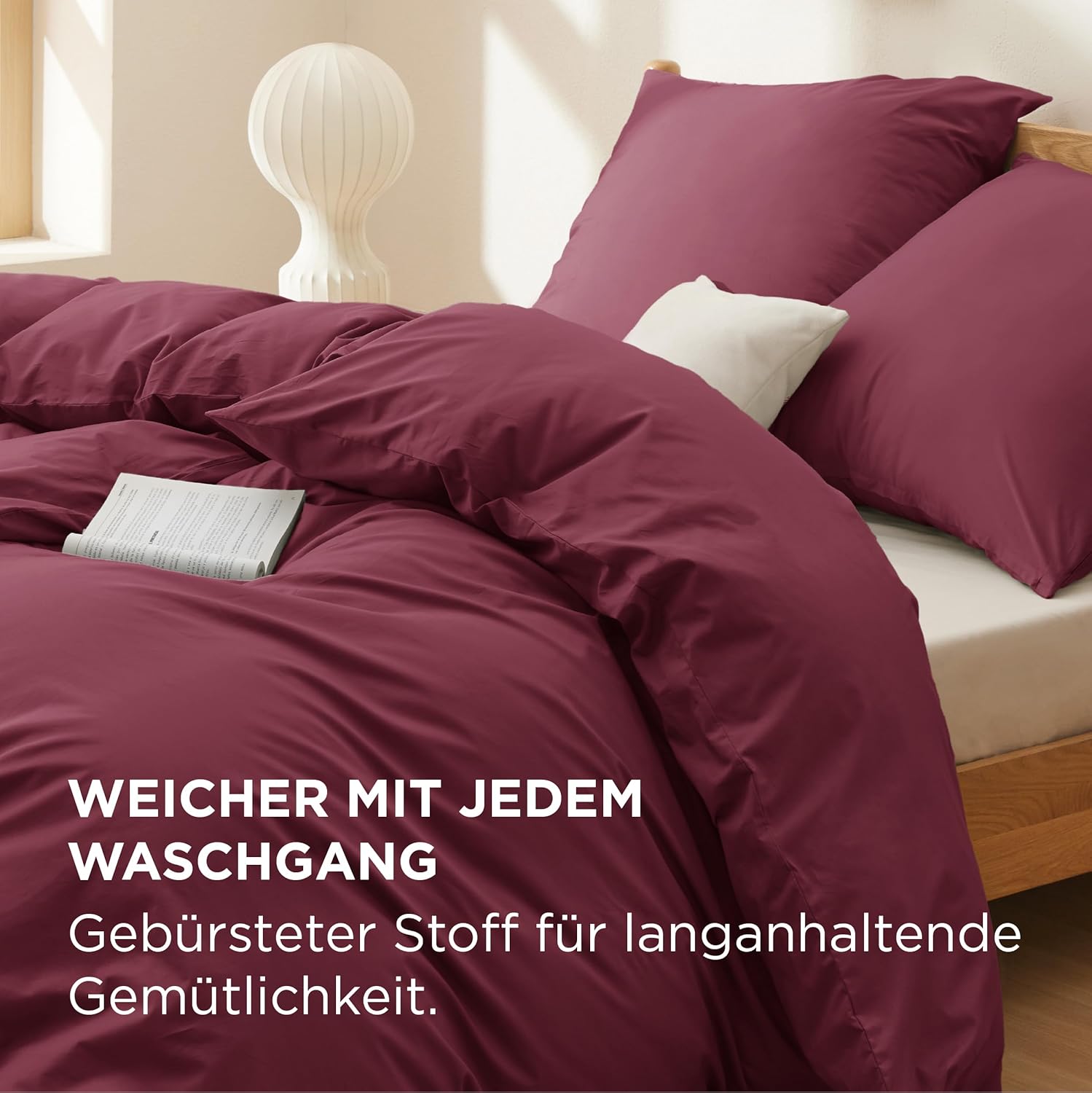 Спално бельо BEDSURE 135 x 200 см Памучно спално бельо от 4 части Комплект за завивка и юрган в бордо червено с 2 калъфки за възглавници 80 x 80 см, Oeko-Tex спално бельо червено с цип