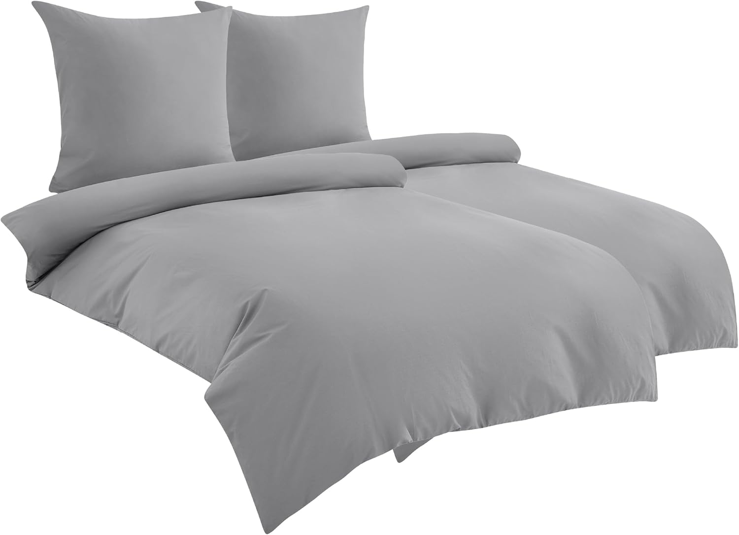 Спално бельо BEDSURE 135 x 200 см Памучно спално бельо от 4 части Сив комплект калъф за завивка от 2 броя с 2 калъфки за възглавници 80 x 80 см, Oeko-Tex спално бельо светло сиво с цип