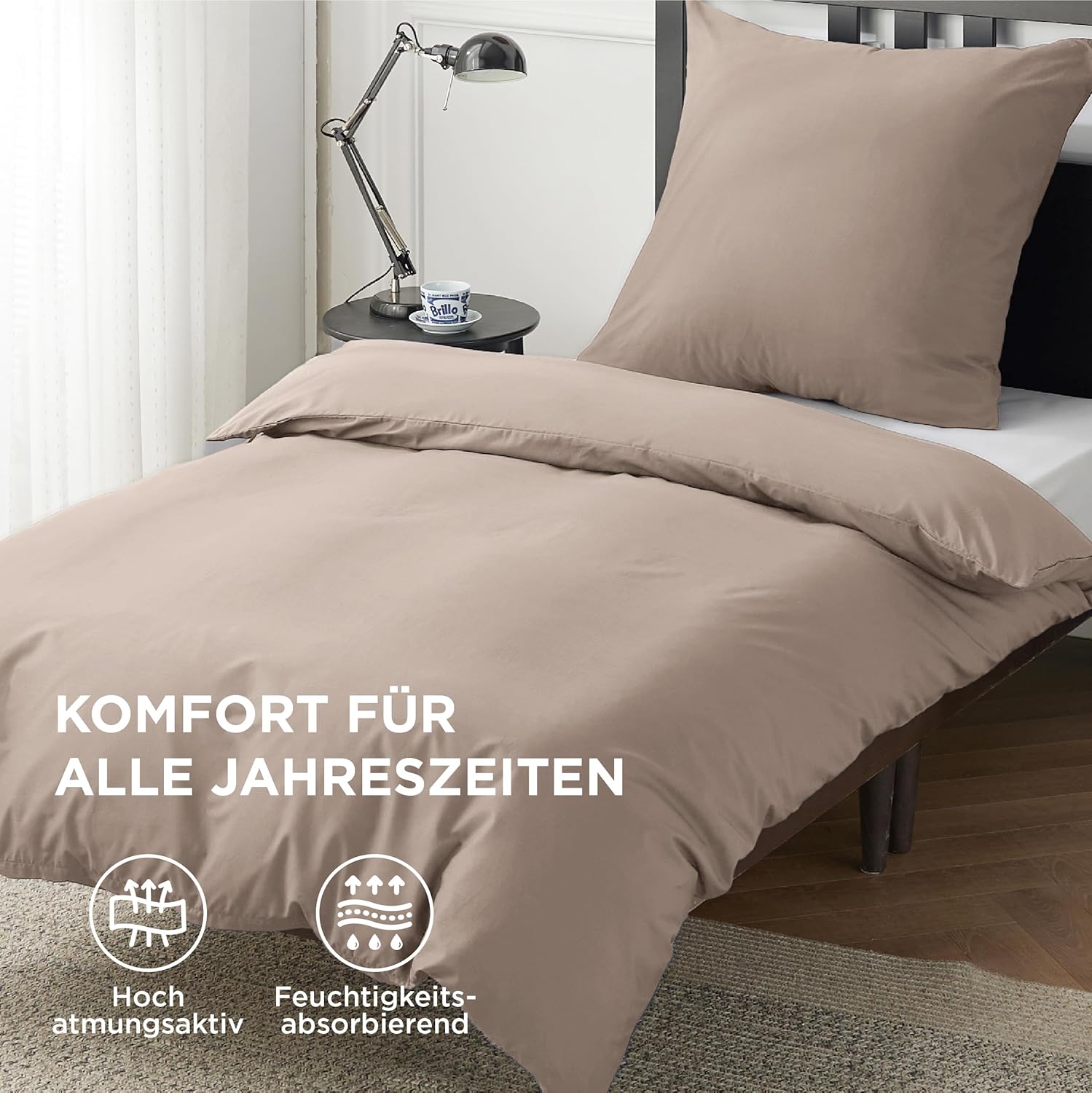 Спално бельо BEDSURE 135 x 200 см памук каки - Комплекти спално бельо 135 x 200 см калъф за завивка от 2 части с калъфка за възглавница 80 x 80 см, Oeko-Tex спално бельо в бежово с цип