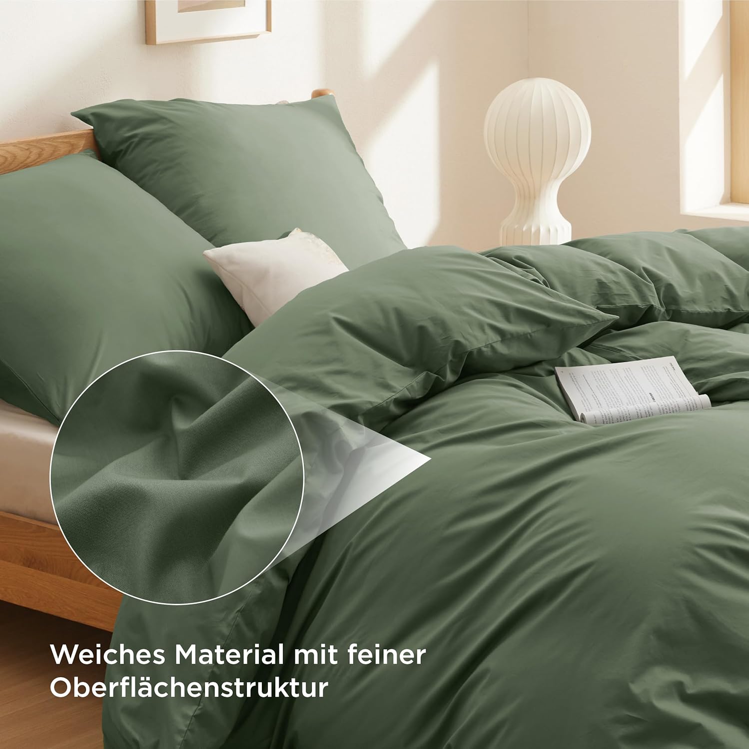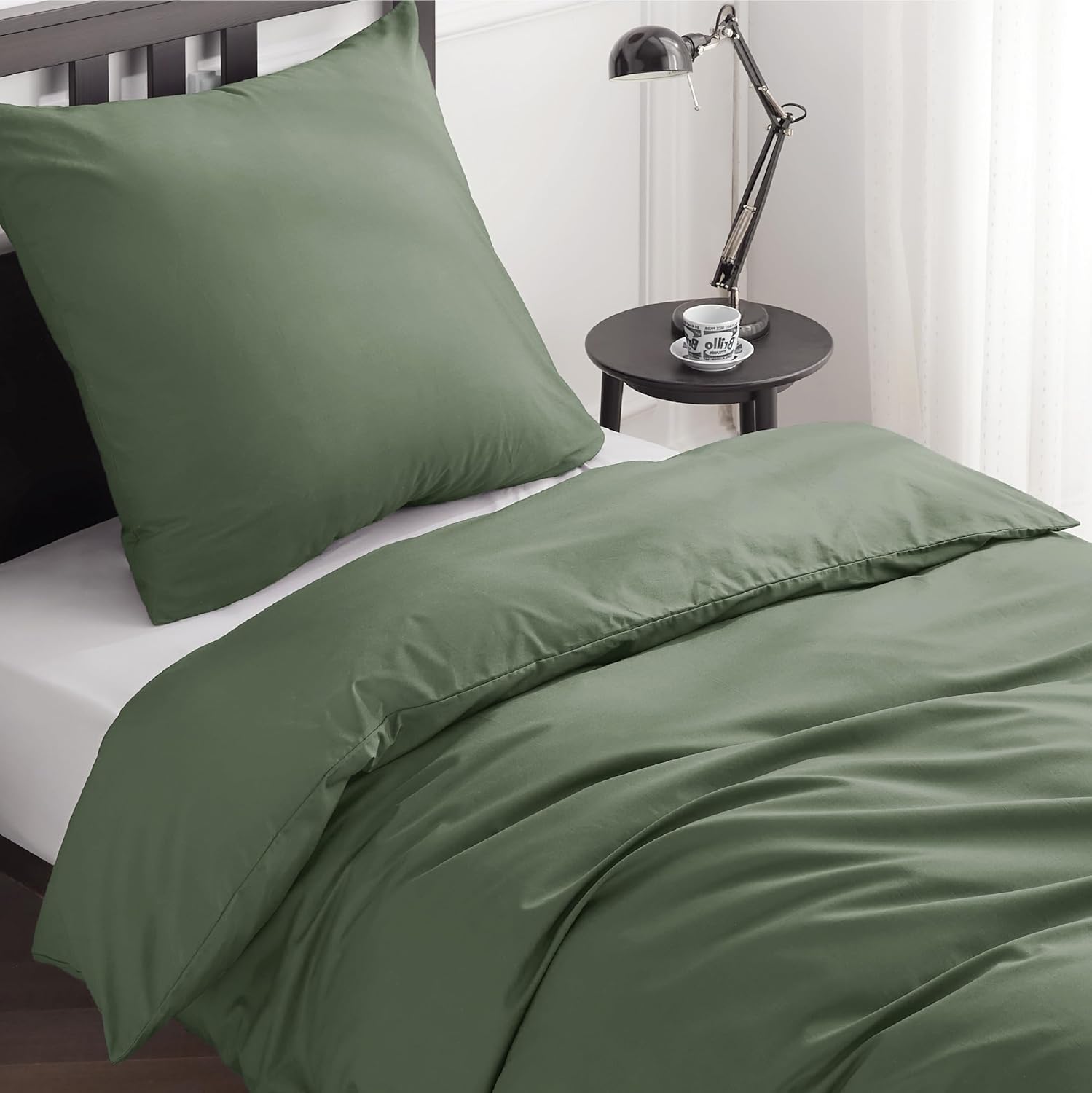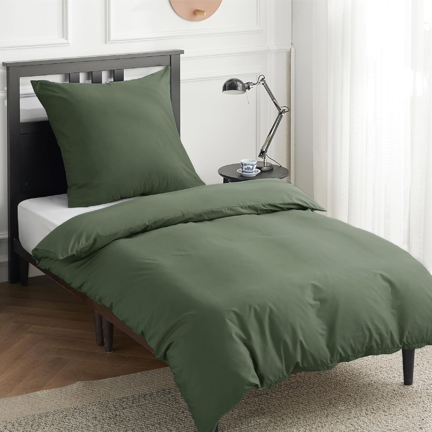 Спално бельо BEDSURE 135 x 200 см памук сиво маслинено зелено - Комплекти спално бельо 135 x 200 см калъф за завивка от 2 части с калъфка за възглавница 80 x 80 см, Oeko-Tex спално бельо зелено с цип