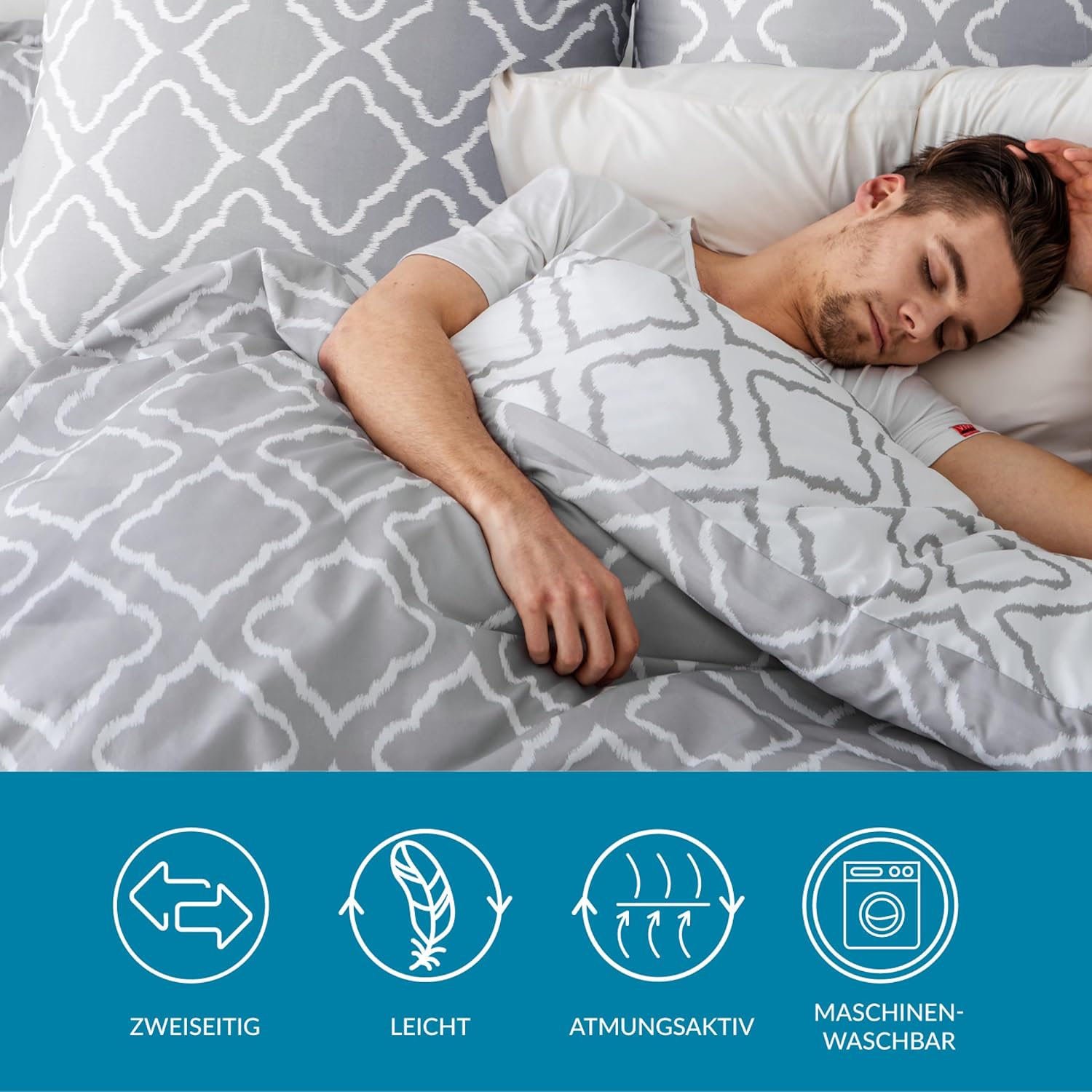 • Комплектът от 4 спални принадлежности и спално бельо се състои от калъф за завивка (размер: 135 x 200 см, количество: 2) и калъфки за възглавници (размер: 80 x 80 см, количество: 2).