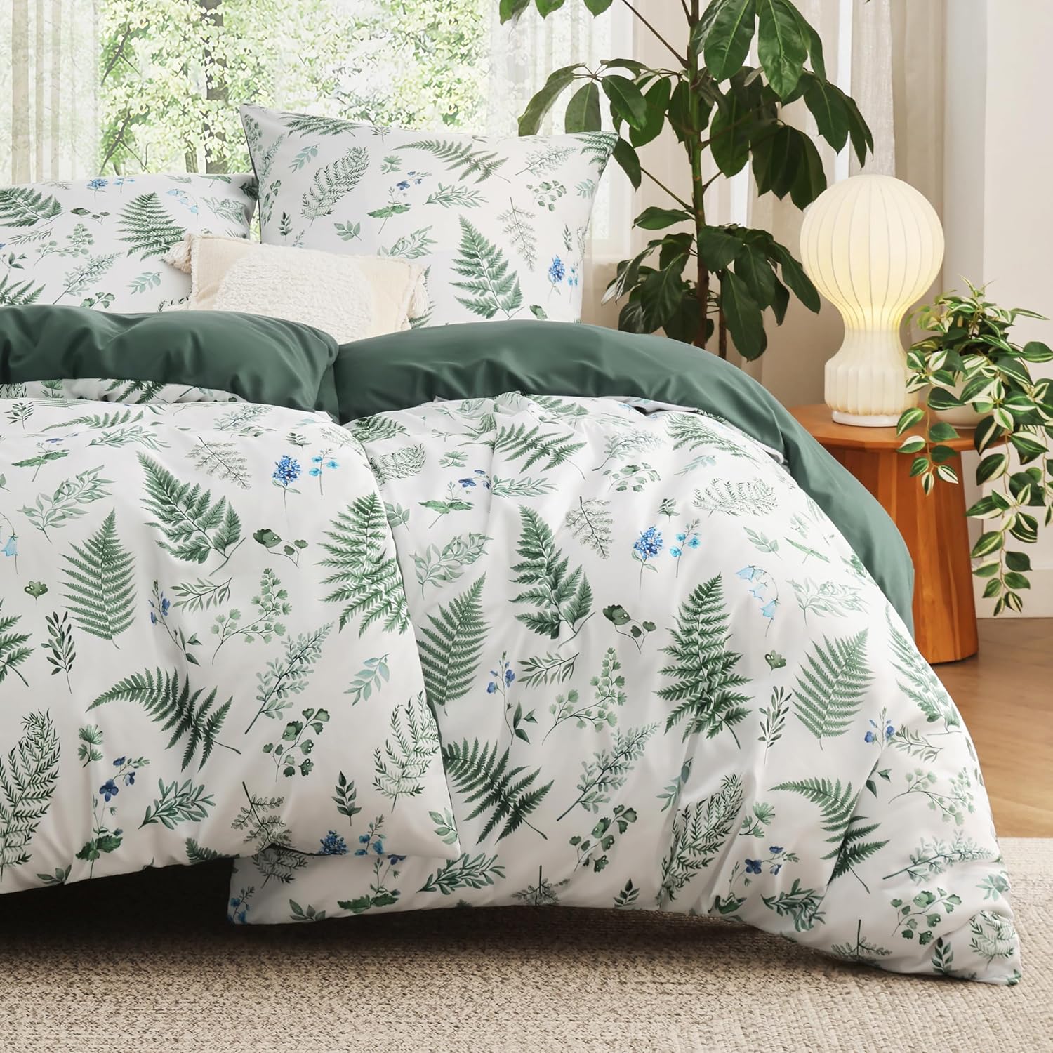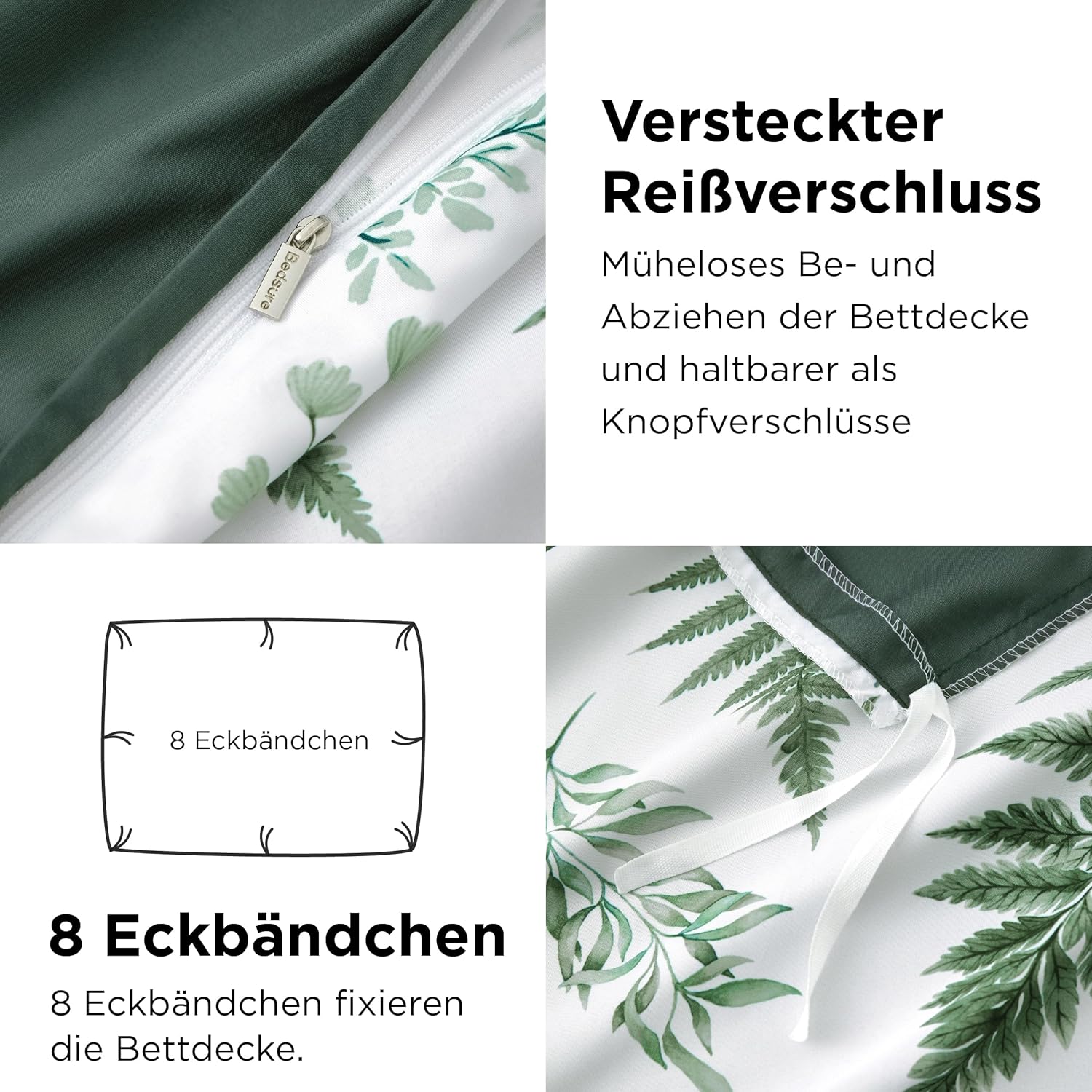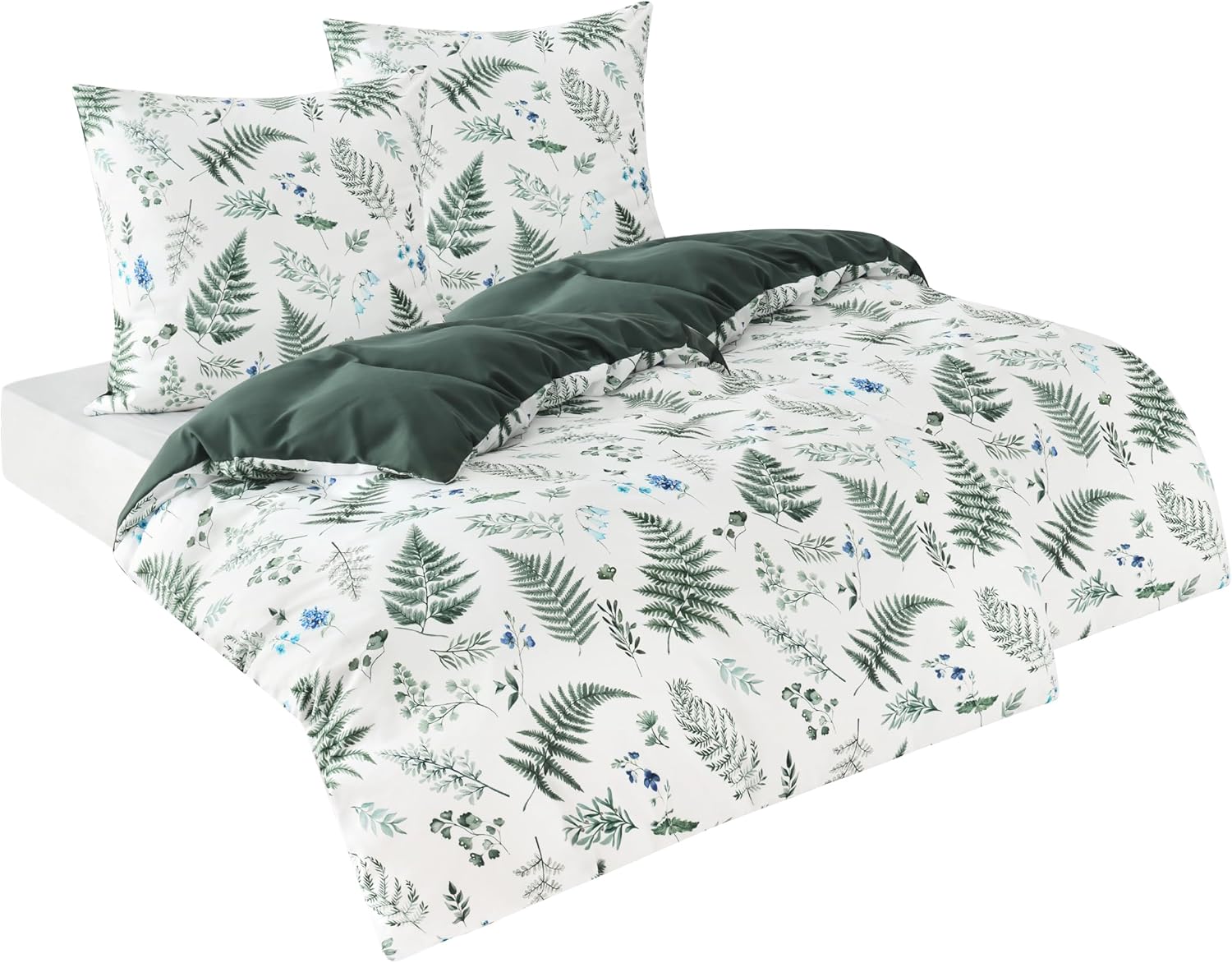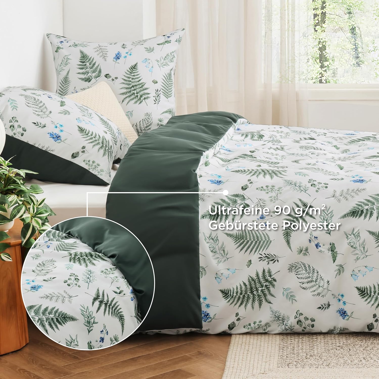 Спално бельо BEDSURE 135 x 200 см Плик за завивка от 4 части - Комплекти спално бельо 135 x 200 см Комплект от 2 с 2 калъфки за възглавници 80 x 80 см, Oeko-Tex двулицево спално бельо с шарка зелени цветя растения с цип