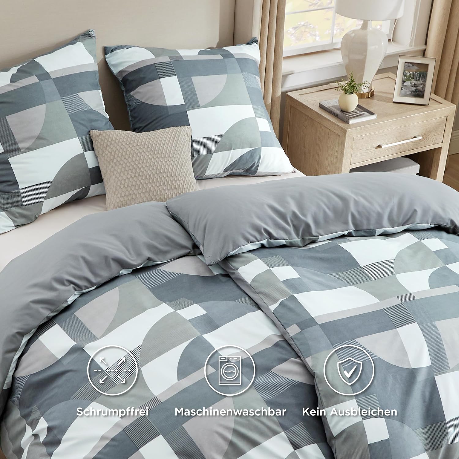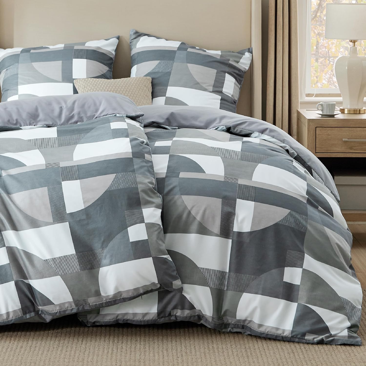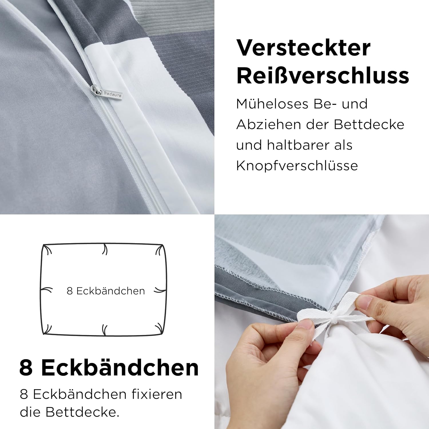 Спално бельо BEDSURE 135 x 200 см Плик за завивка от 4 части - Комплекти спално бельо 135 x 200 см Комплект от 2 с 2 калъфки за възглавници 80 x 80 см, Oeko-Tex двустранно спално бельо Сив геометричен мотив с цип