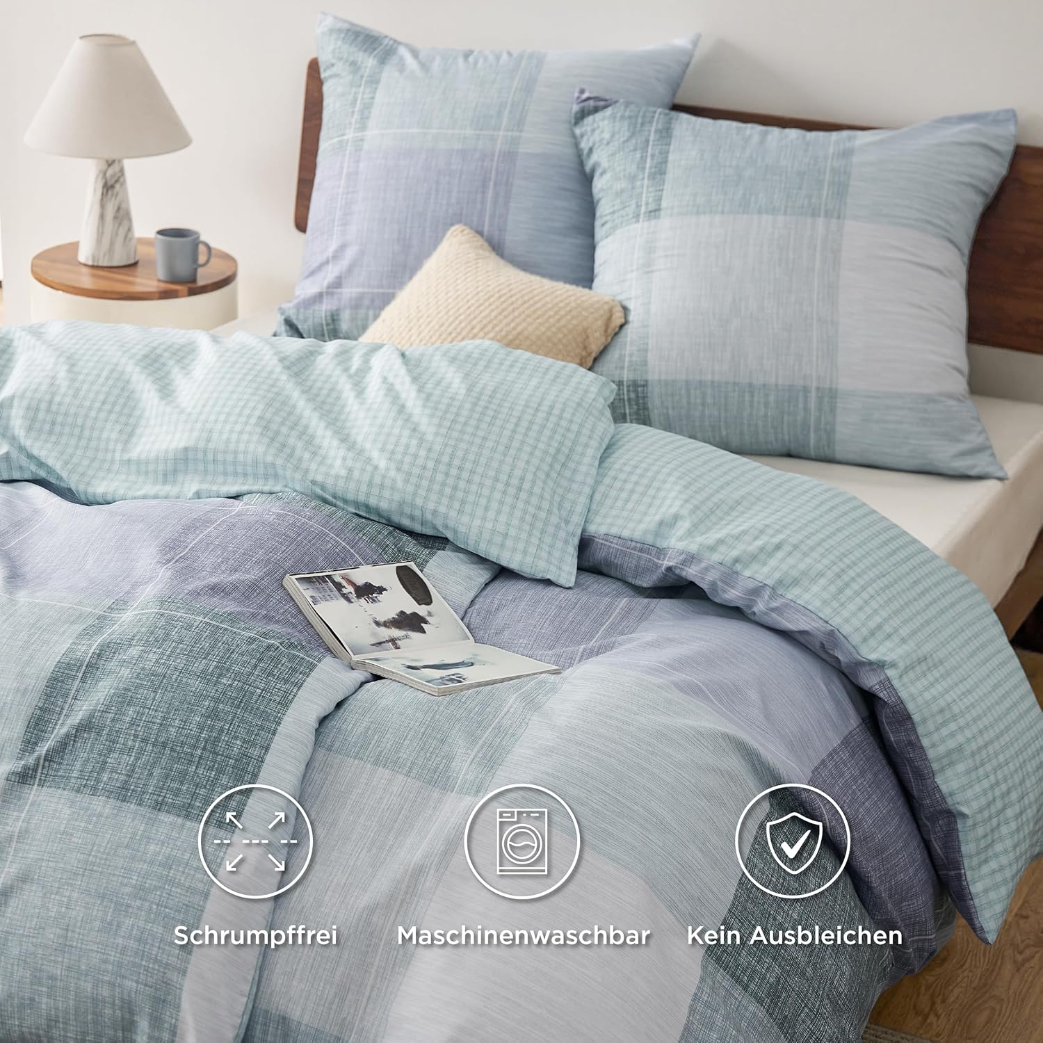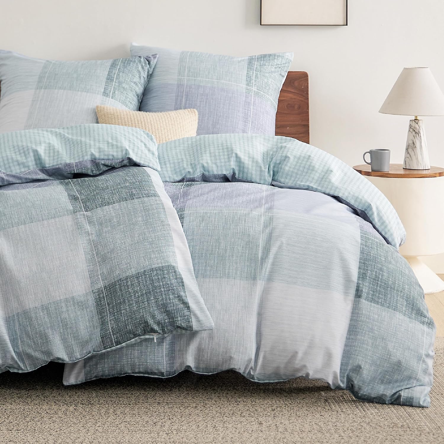 Спално бельо BEDSURE 135 x 200 см Плик за завивка от 4 части - Комплекти спално бельо 135 x 200 см Комплект от 2 с 2 калъфки за възглавници 80 x 80 см, Oeko-Tex двустранно спално бельо със син кариран мотив и цип