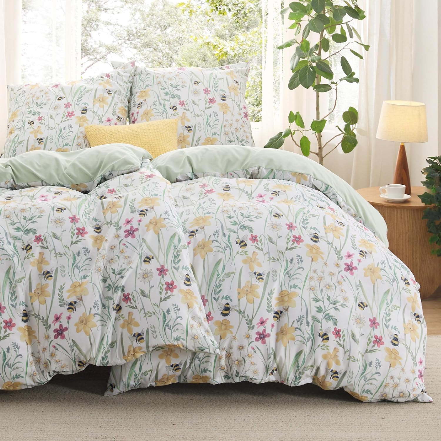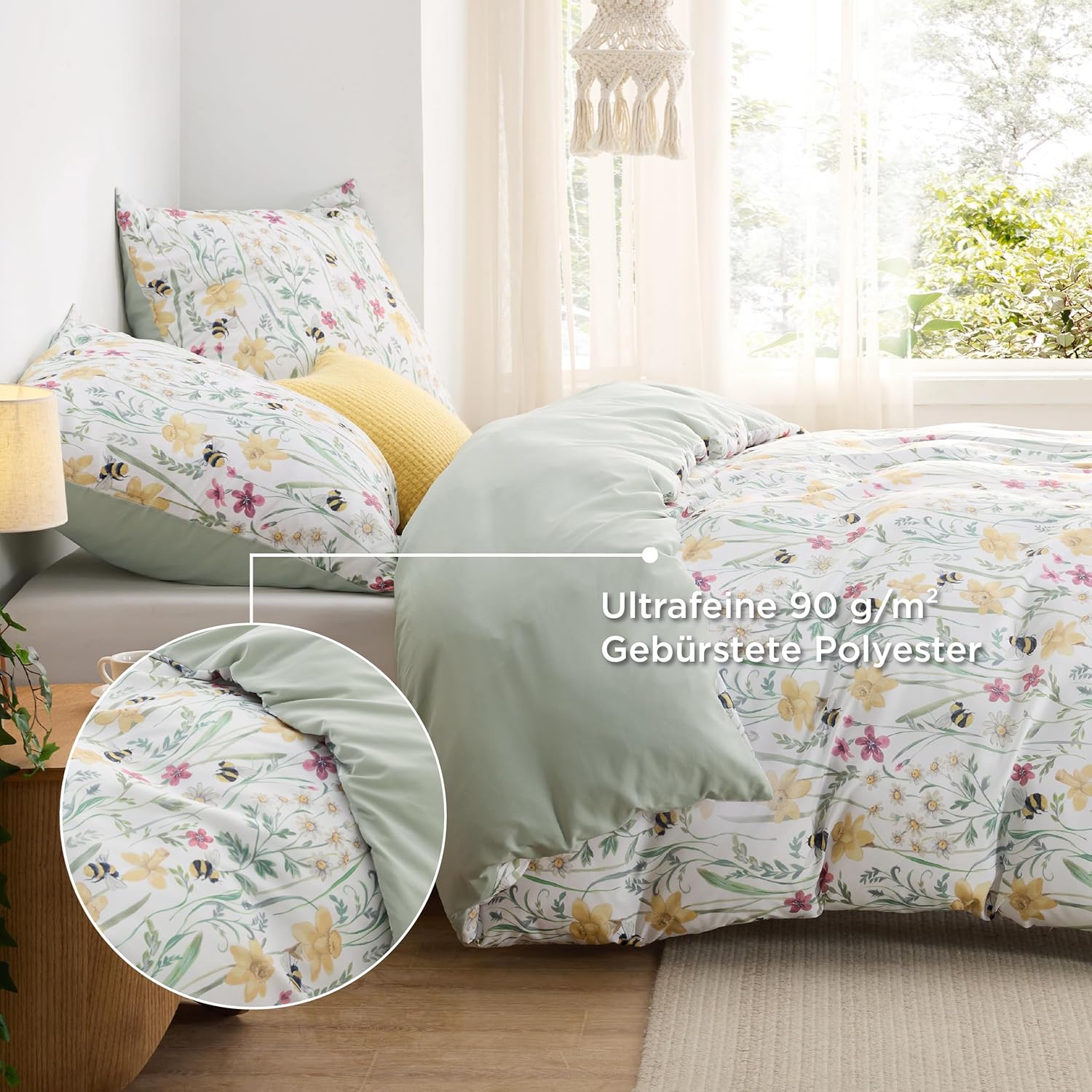 Спално бельо BEDSURE 135 x 200 см Плик за завивка от 4 части - Комплекти спално бельо 135 x 200 см Комплект от 2 с 2 калъфки за възглавници 80 x 80 см, Oeko-Tex двустранно спално бельо със зелени цветя, растителни мотиви и цип
