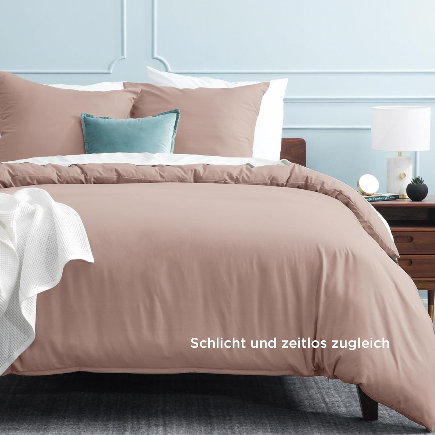 Спално бельо Bedsure 155 x 220 см, 3 броя Adobe Rose, розово спално бельо, 1 калъф за завивка 155 x 220 см и 2 калъфки за възглавници 80 x 80 см, Oeko-Tex комплекти спално бельо, полиестерен микрофибър с цип