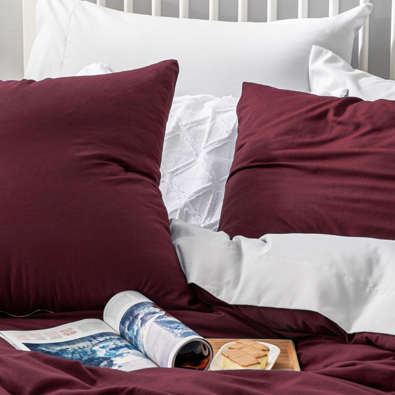 Спално бельо Bedsure 155 x 220 см, 3 броя спално бельо в бордо червено, 1 калъф за завивка 155 x 220 см и 2 калъфки за възглавници 80 x 80 см, комплекти спално бельо Oeko-Tex, полиестерен микрофибър с цип