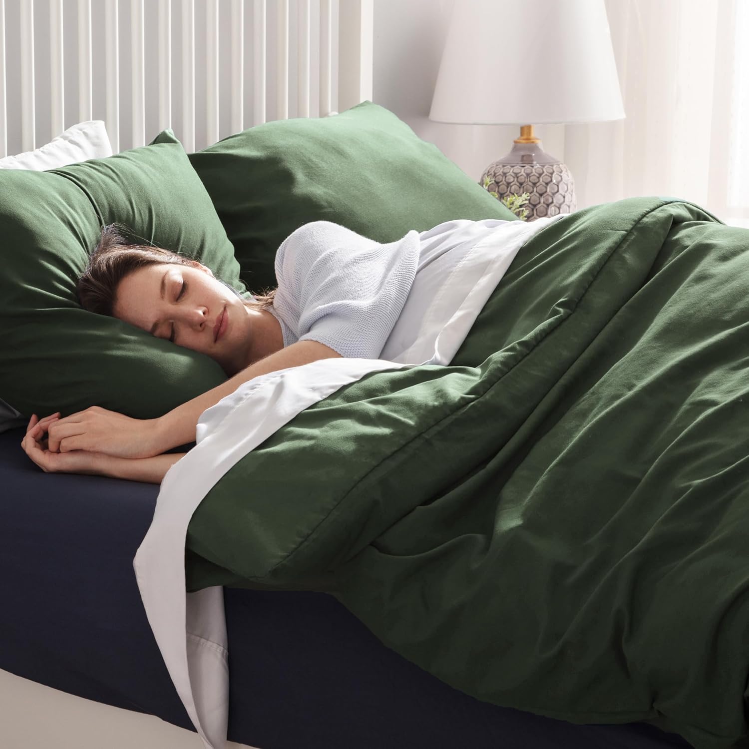 Спално бельо Bedsure 155 x 220 см, 3 броя спално бельо в сиво-маслинено зелено, 1 калъф за завивка 155 x 220 см и 2 калъфки за възглавници 80 x 80 см, комплекти спално бельо Oeko-Tex, полиестерен микрофибър с цип