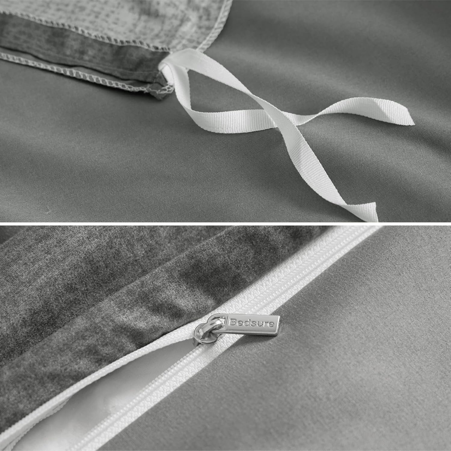 Спално бельо Bedsure 155 x 220 см, 3-частов калъф за завивка - Комплекти спално бельо Сив 155 x 220 см Микрофибър с 2 калъфки за възглавници 80 x 80 см, калъф за завивка с райета и цип