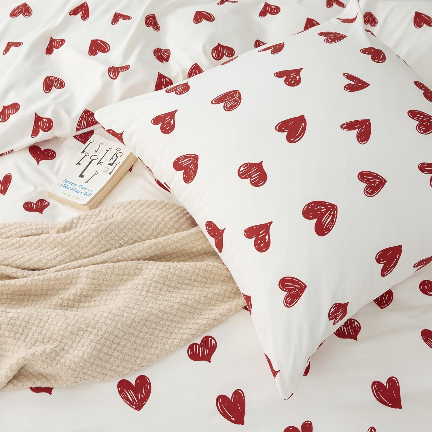Спално бельо BEDSURE 155 x 220 см Комплект спално бельо от 3 части сърца Плик за завивка с бели сърца 155 x 220 см с 2 калъфки за възглавници 80 x 80 см, Oeko-Tex Спално бельо с мотив червено сърце с цип