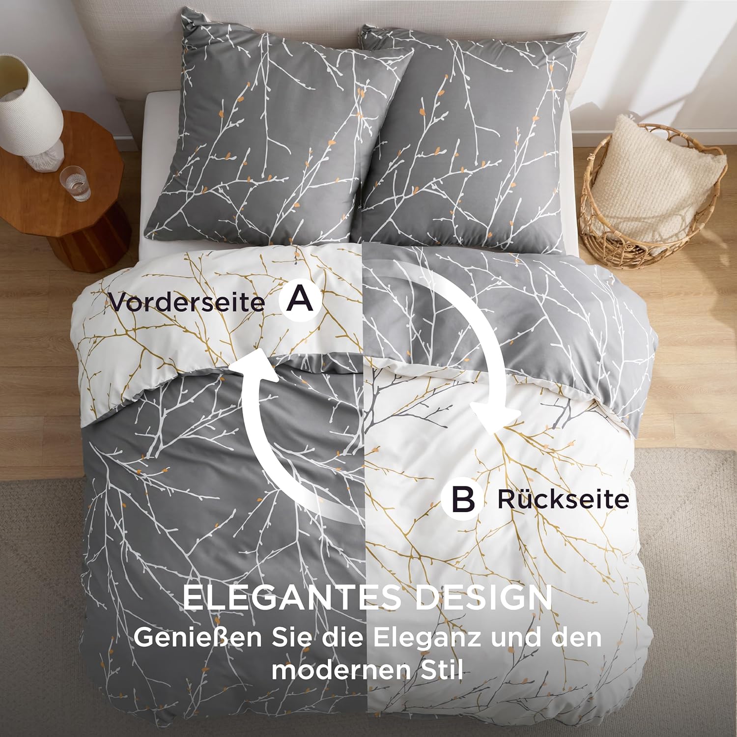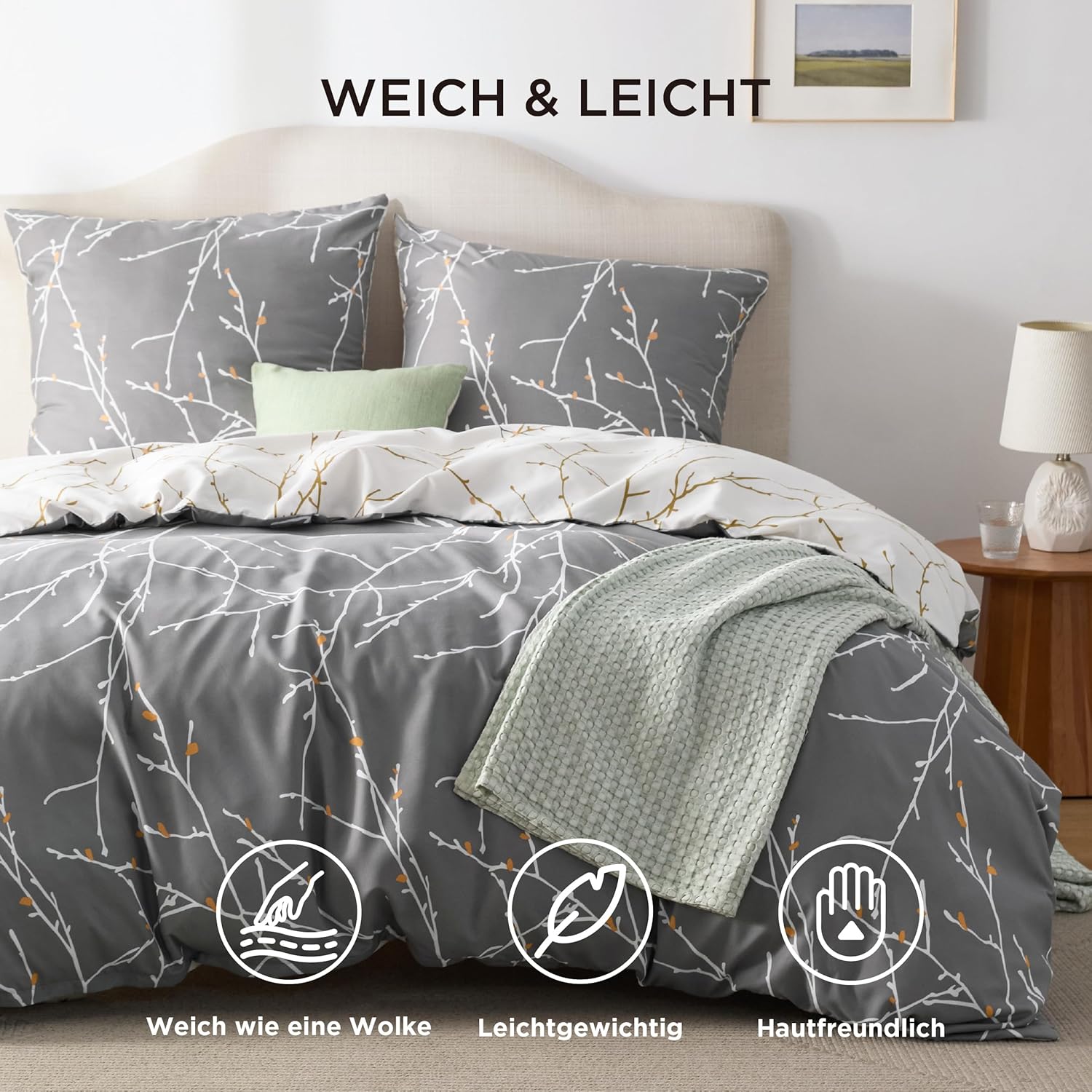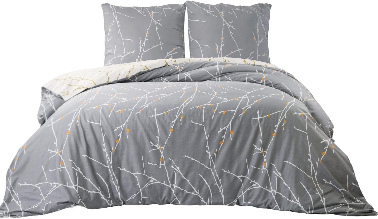 Спално бельо Bedsure 155 x 220 см Микрофибър Комплект от 3 части Плик за завивка 155 x 220 см с калъфка за възглавница 80 x 80 см Клонове Сив за единично легло с цип