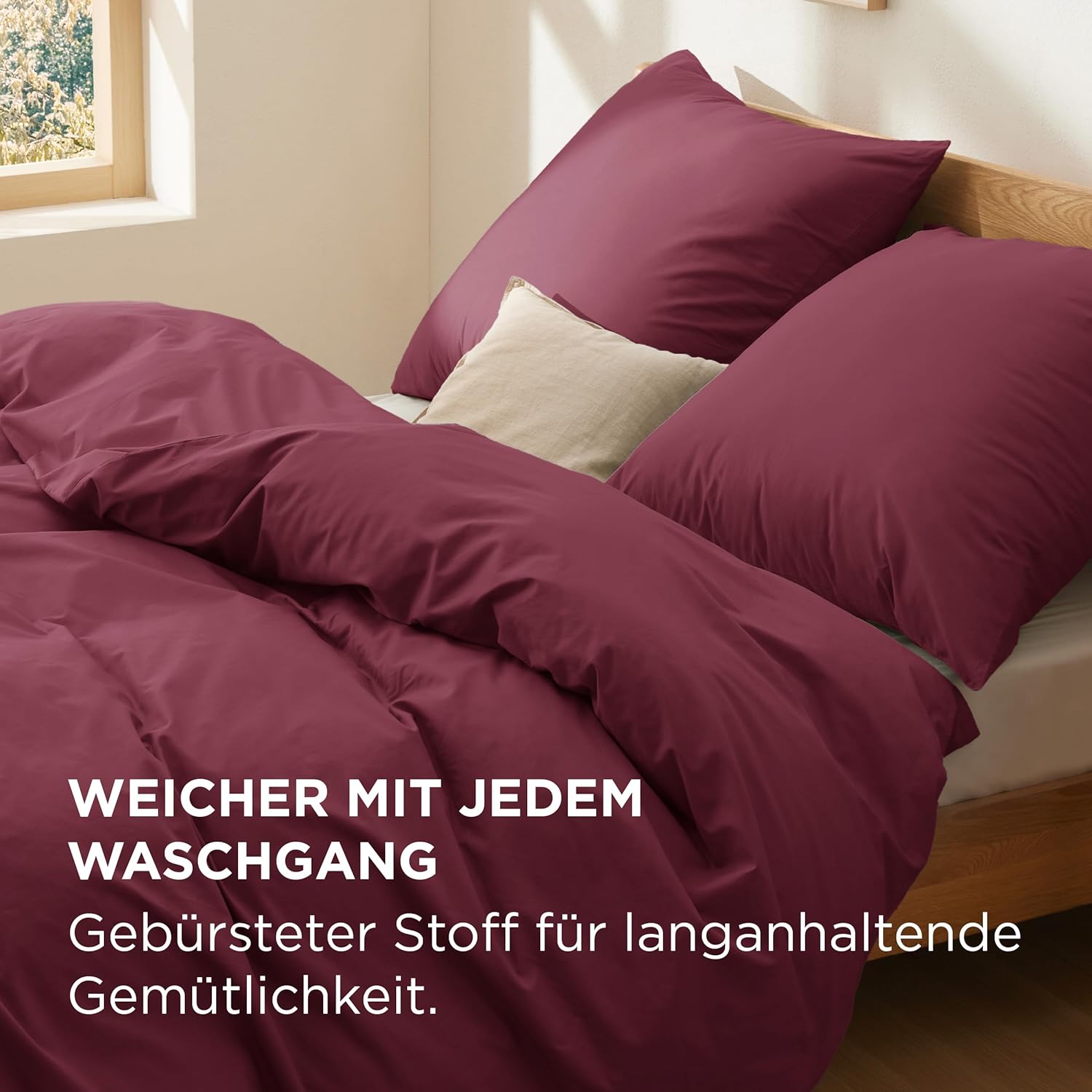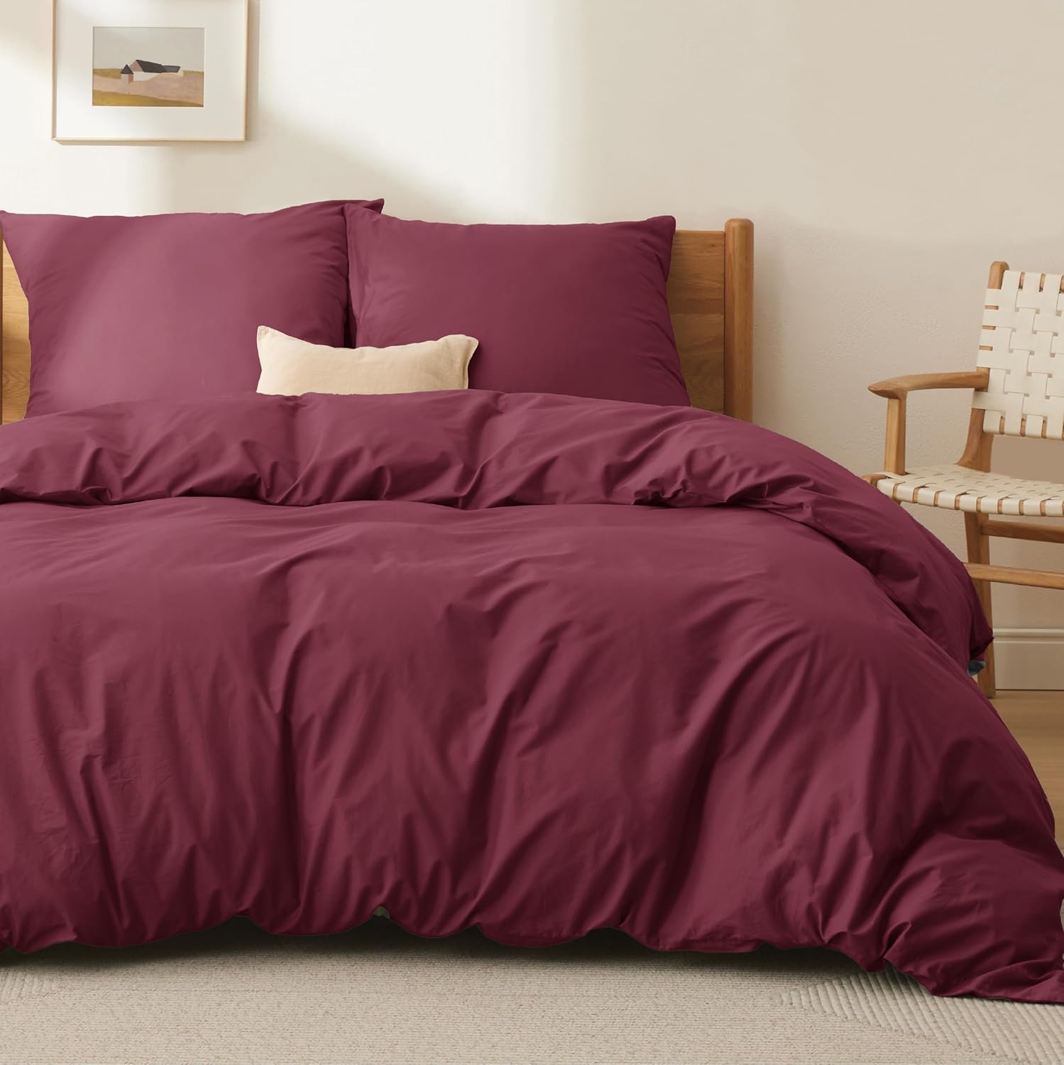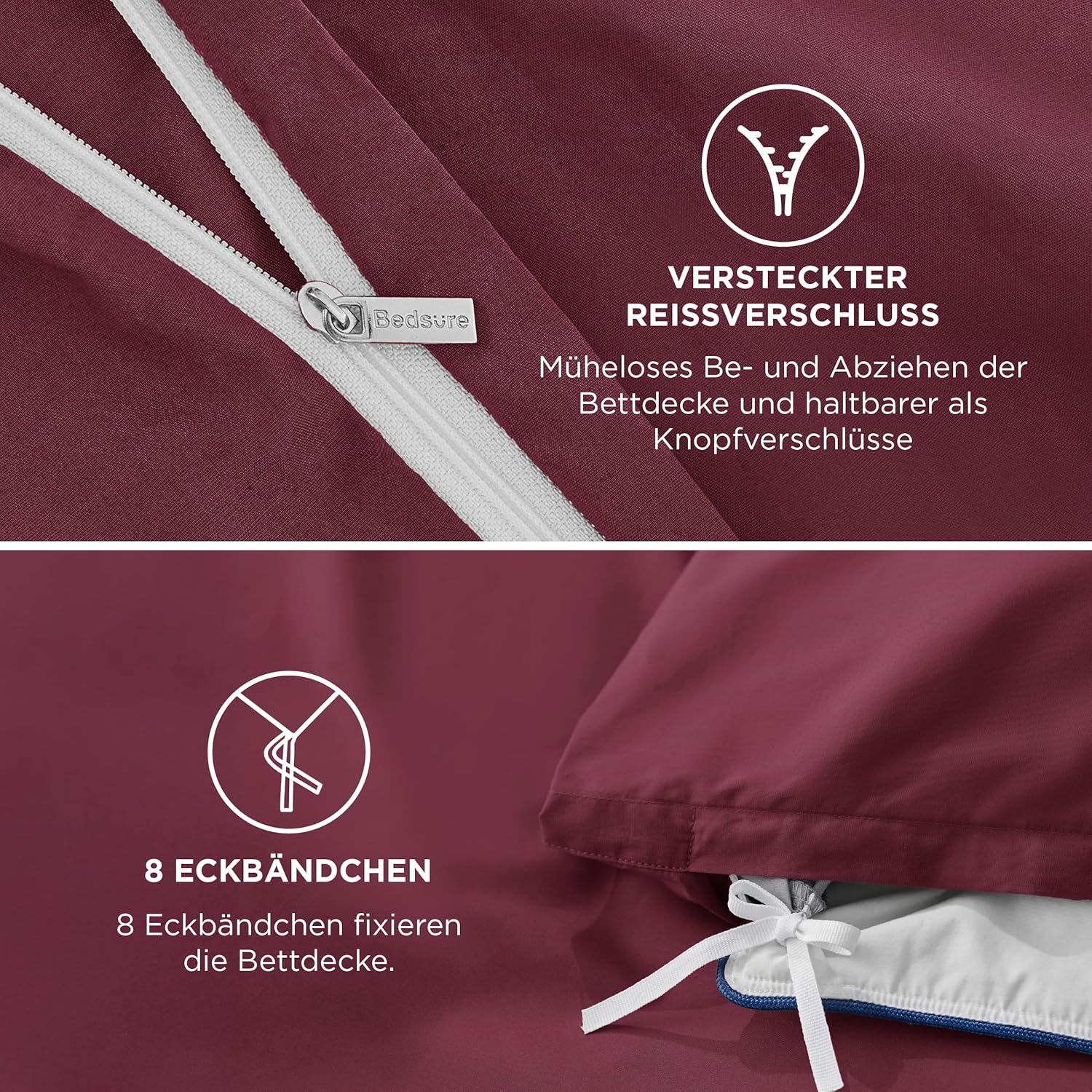 Спално бельо BEDSURE 155 x 220 см Памучно бордо червено - Комплекти спално бельо 155 x 220 см Плик за завивка от 3 части с 2 калъфки за възглавници 80 x 80 см, Oeko-Tex спално бельо червено с цип