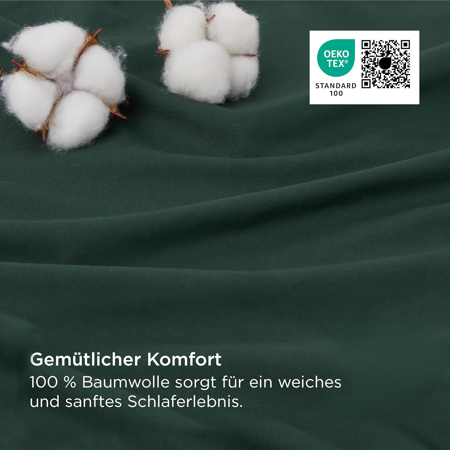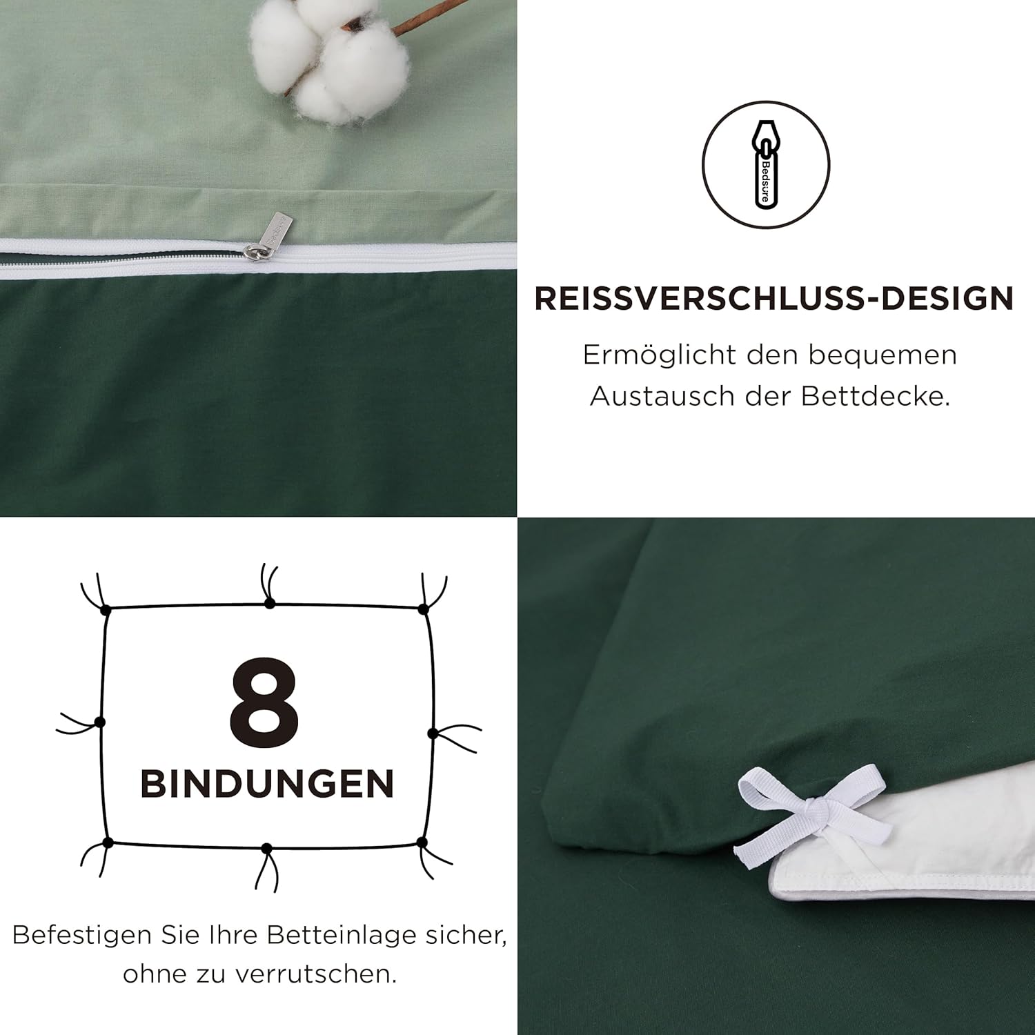 Спално бельо BEDSURE 155 x 220 см, тъмнозелено, градински чай - Комплекти спално бельо от памук 155 x 220 см, двулицево спално бельо от 3 части с 2 калъфки за възглавници 80 x 80 см, Oeko-Tex двуцветен калъф за завивка с цип