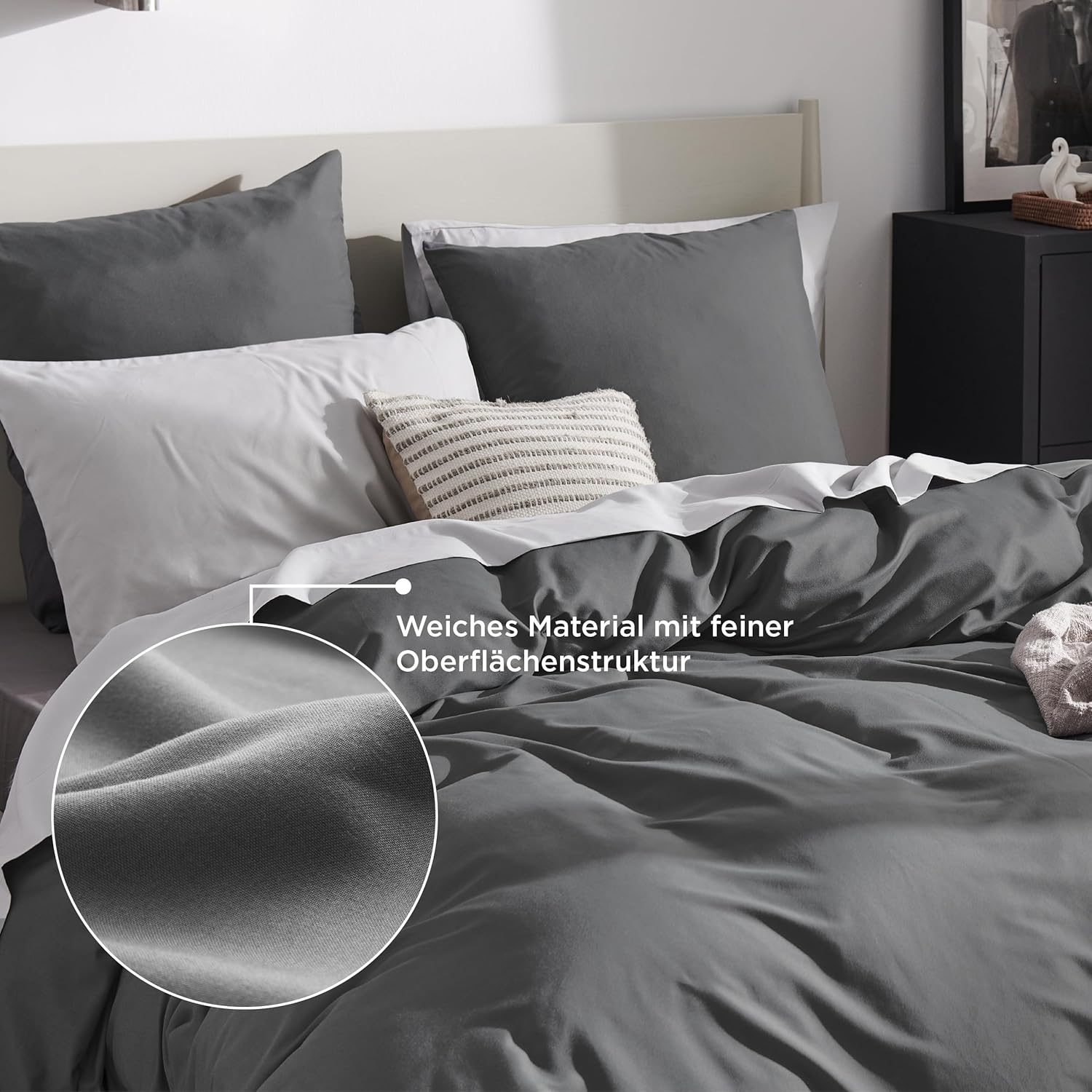 Спално бельо Bedsure 200 x 200 см, 3 броя антрацитно спално бельо, 1 калъф за завивка 200 x 200 см и 2 калъфки за възглавници 80 x 80 см, комплекти спално бельо Oeko-Tex, полиестерен микрофибър с цип