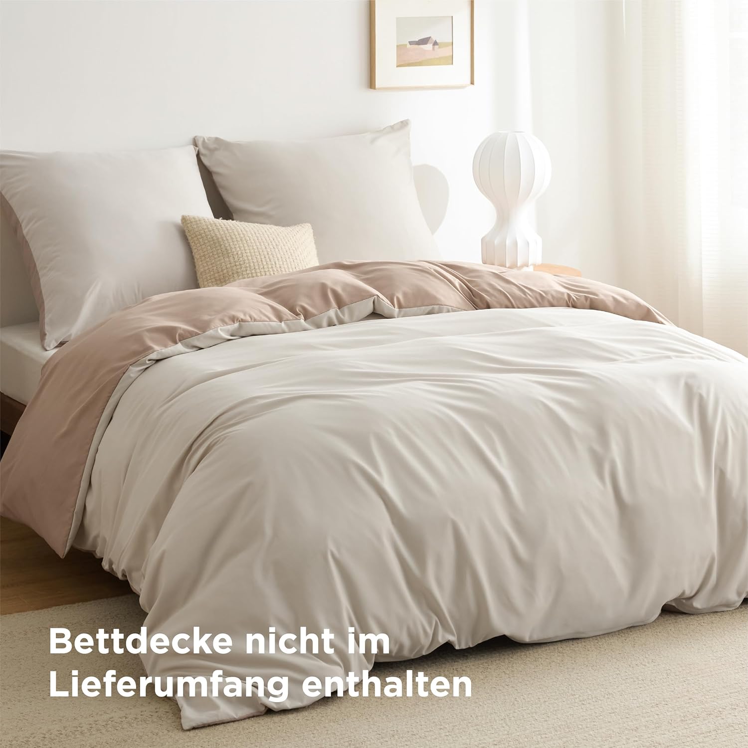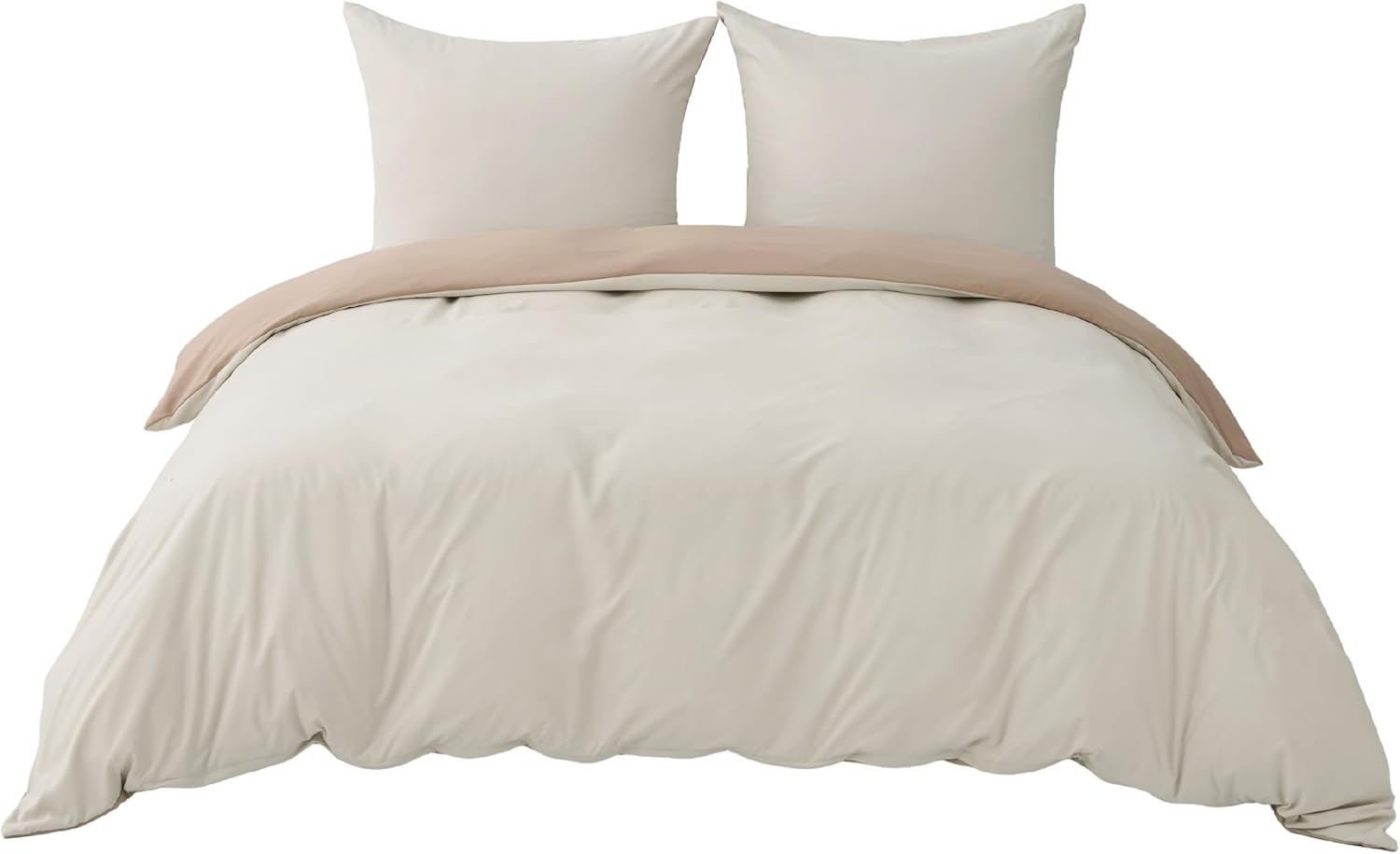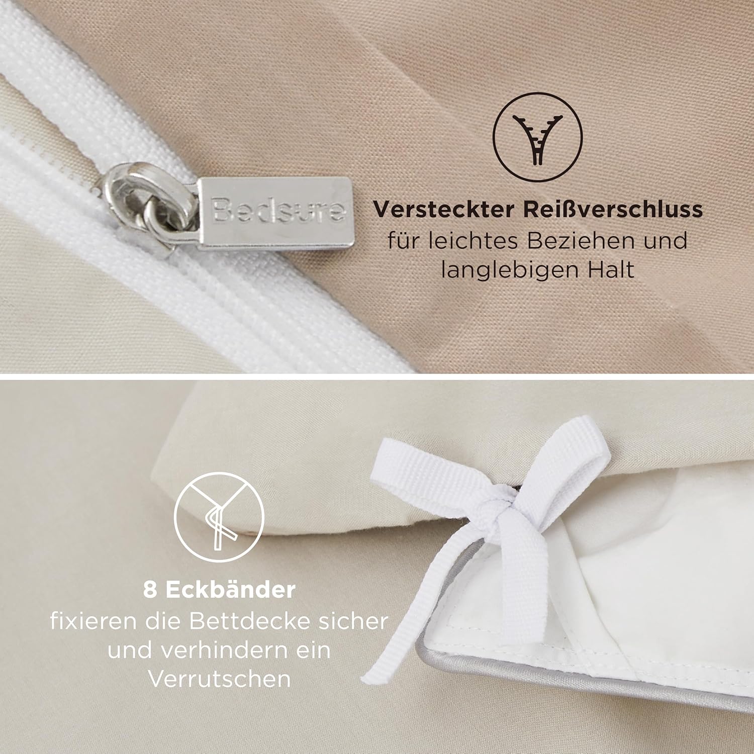 Спално бельо BEDSURE 200 x 200 см, 3 части, каки/бежово - Комплекти спално бельо, калъф за завивка 200 x 200 см с 2 калъфки за възглавници 80 x 80 см, Oeko-Tex двулицево спално бельо с цип