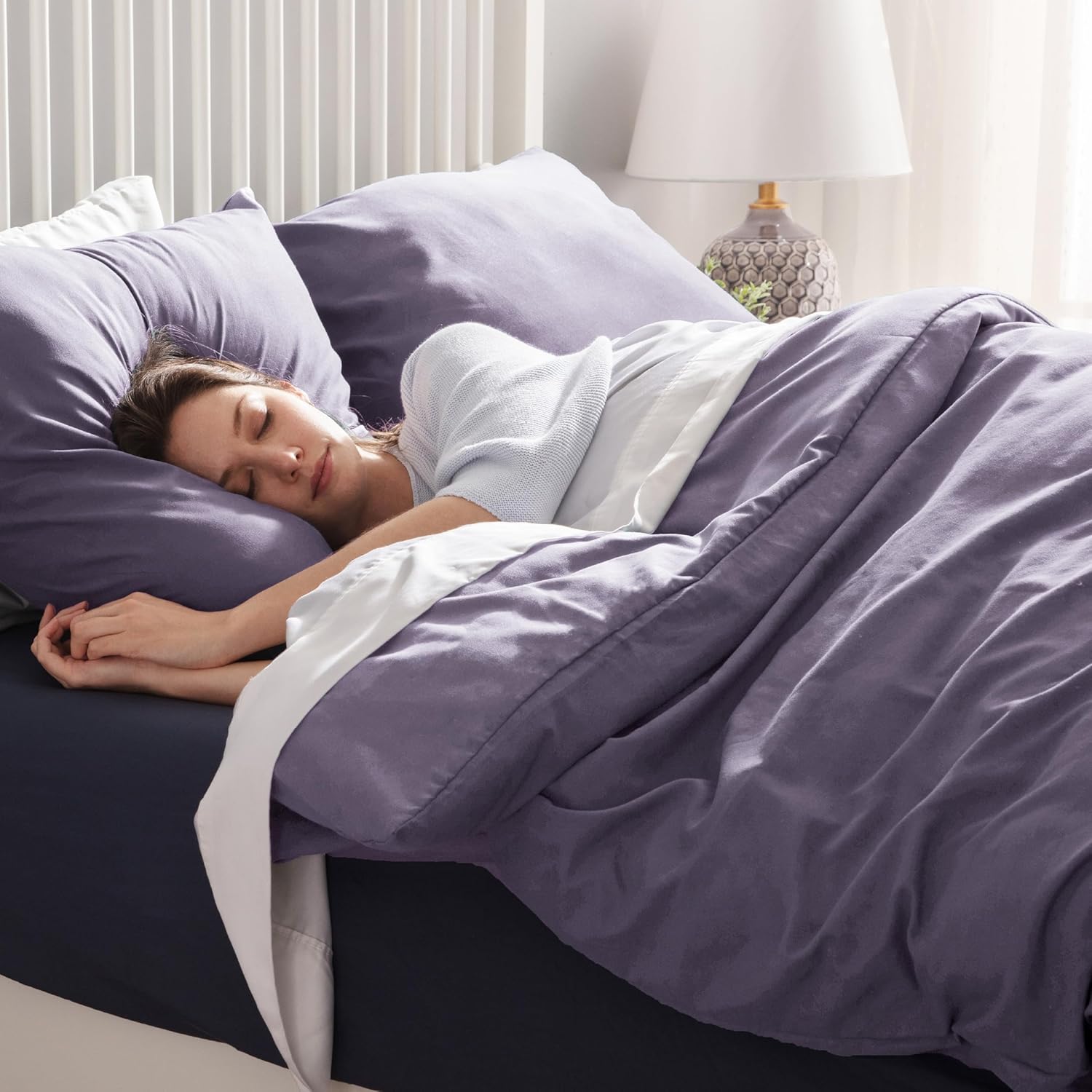Спално бельо BEDSURE 200 x 200 см, 3 части, сиво-лилаво - 1 калъф за завивка 200 x 200 см + 2 калъфки за възглавници 80 x 80 см, Oeko-Tex комплекти спално бельо, лилаво, полиестерен микрофибър с цип