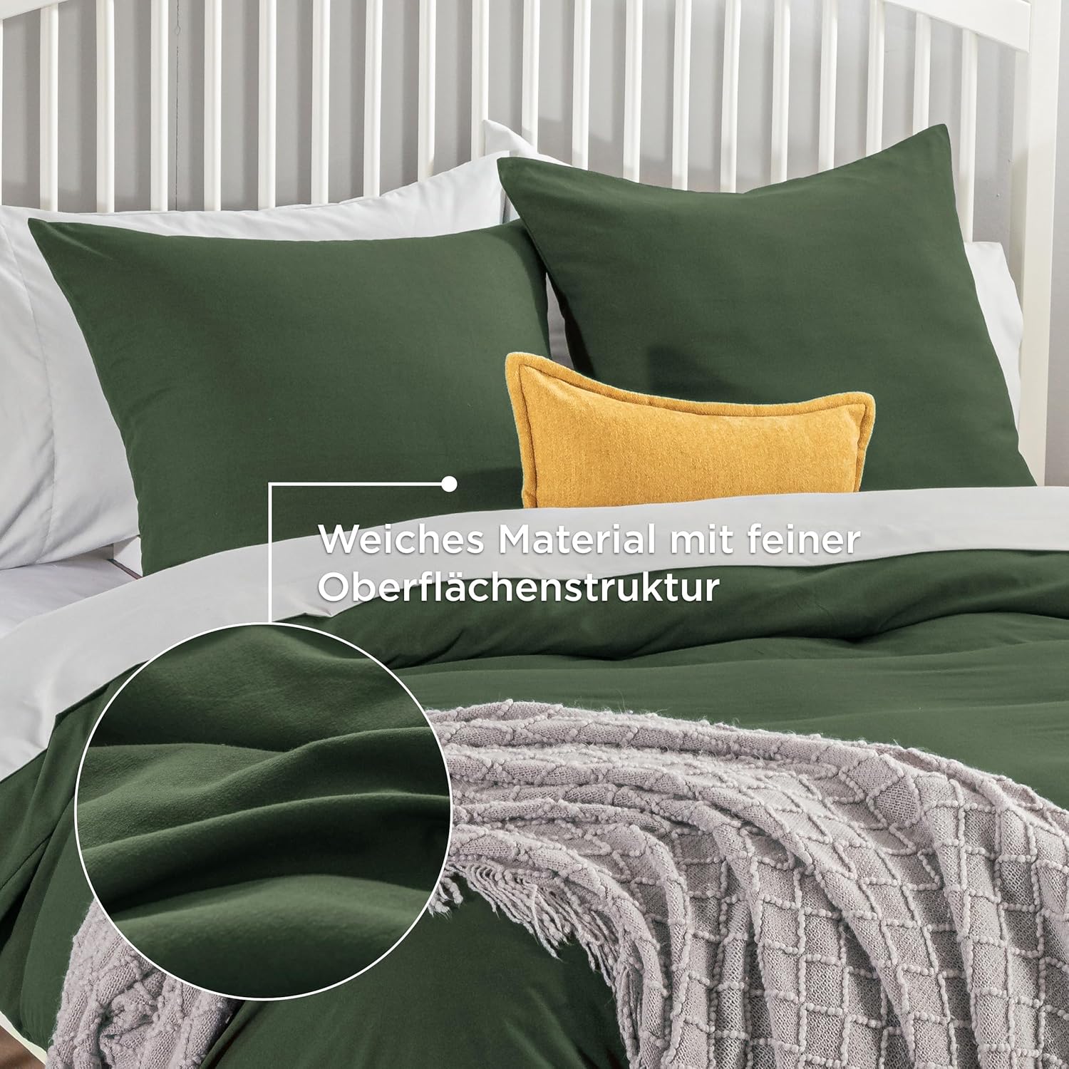 Спално бельо BEDSURE 200 x 200 см, 3 части, сиво-маслинено зелено - 1 калъф за завивка 200 x 200 см + 2 калъфки за възглавници 80 x 80 см, Oeko-Tex комплекти спално бельо, зелено, полиестерен микрофибър с цип