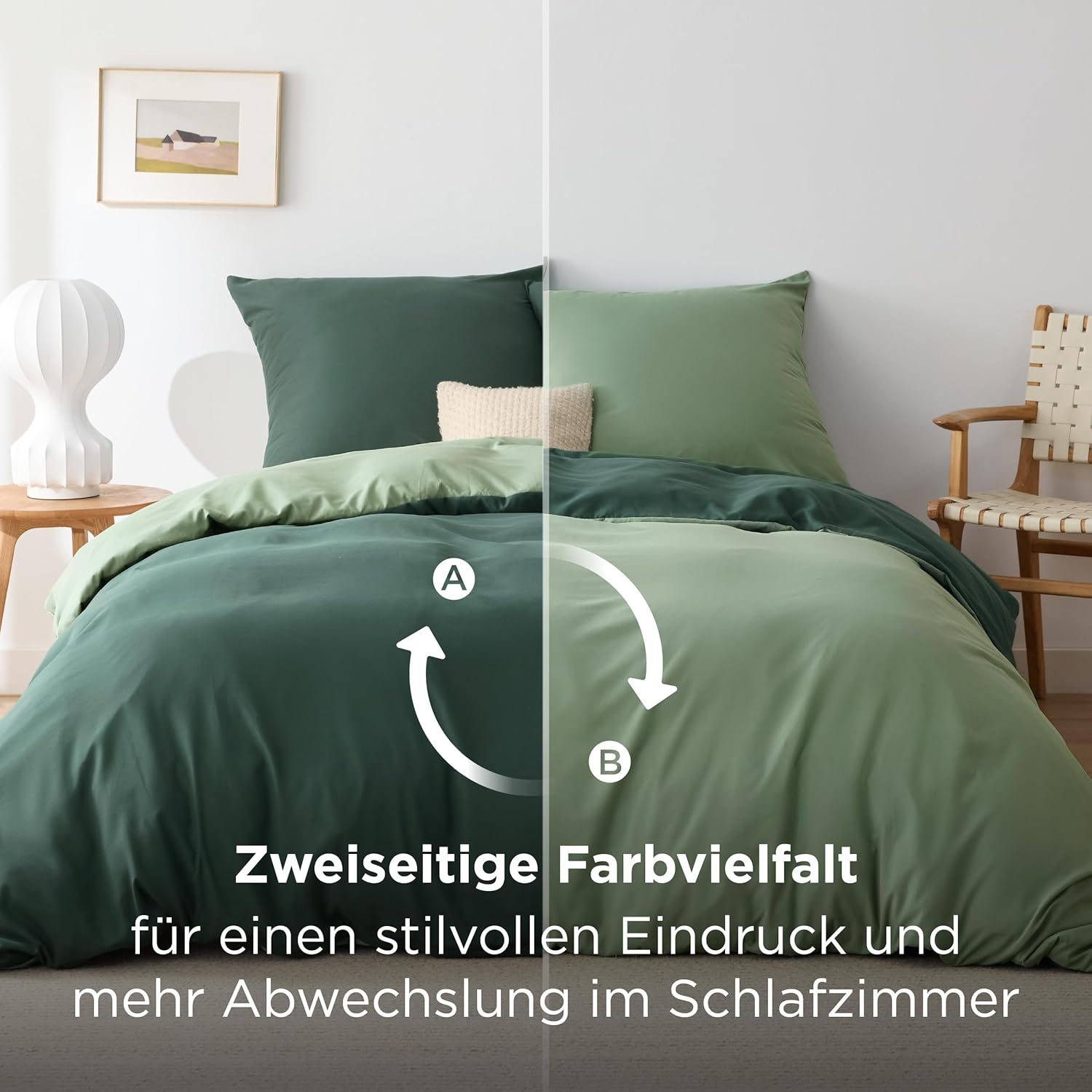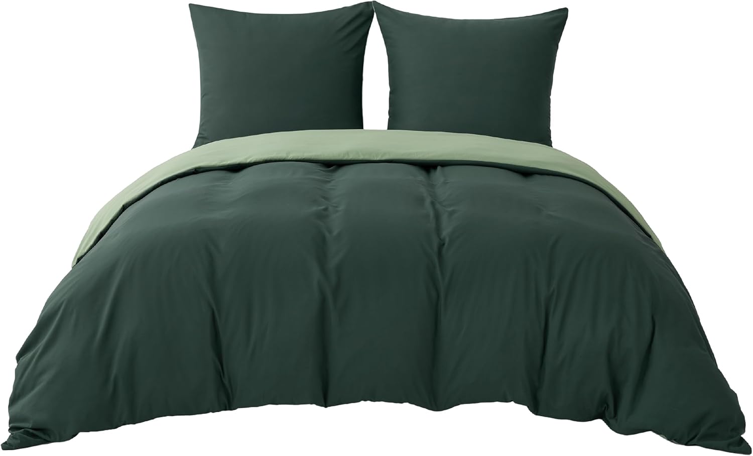 Спално бельо BEDSURE 200 x 200 см, 3 части, тъмнозелено / градински чай - Комплекти спално бельо, калъф за завивка 200 x 200 см с 2 калъфки за възглавници 80 x 80 см, Oeko-Tex двулицево спално бельо с цип