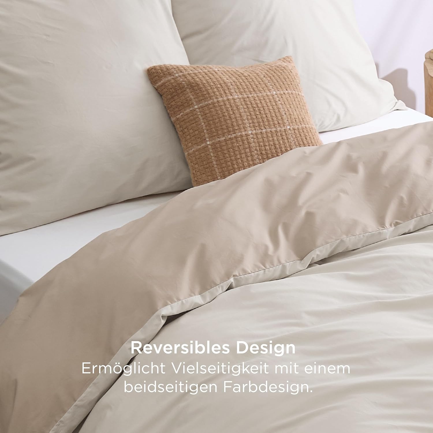 Спално бельо BEDSURE 200 x 200 см, памучно, бежово - Комплекти спално бельо 200 x 200 см, двулицево спално бельо от 3 части с 2 калъфки за възглавници 80 x 80 см, Oeko-Tex двуцветен калъф за завивка с цип, каки тауп